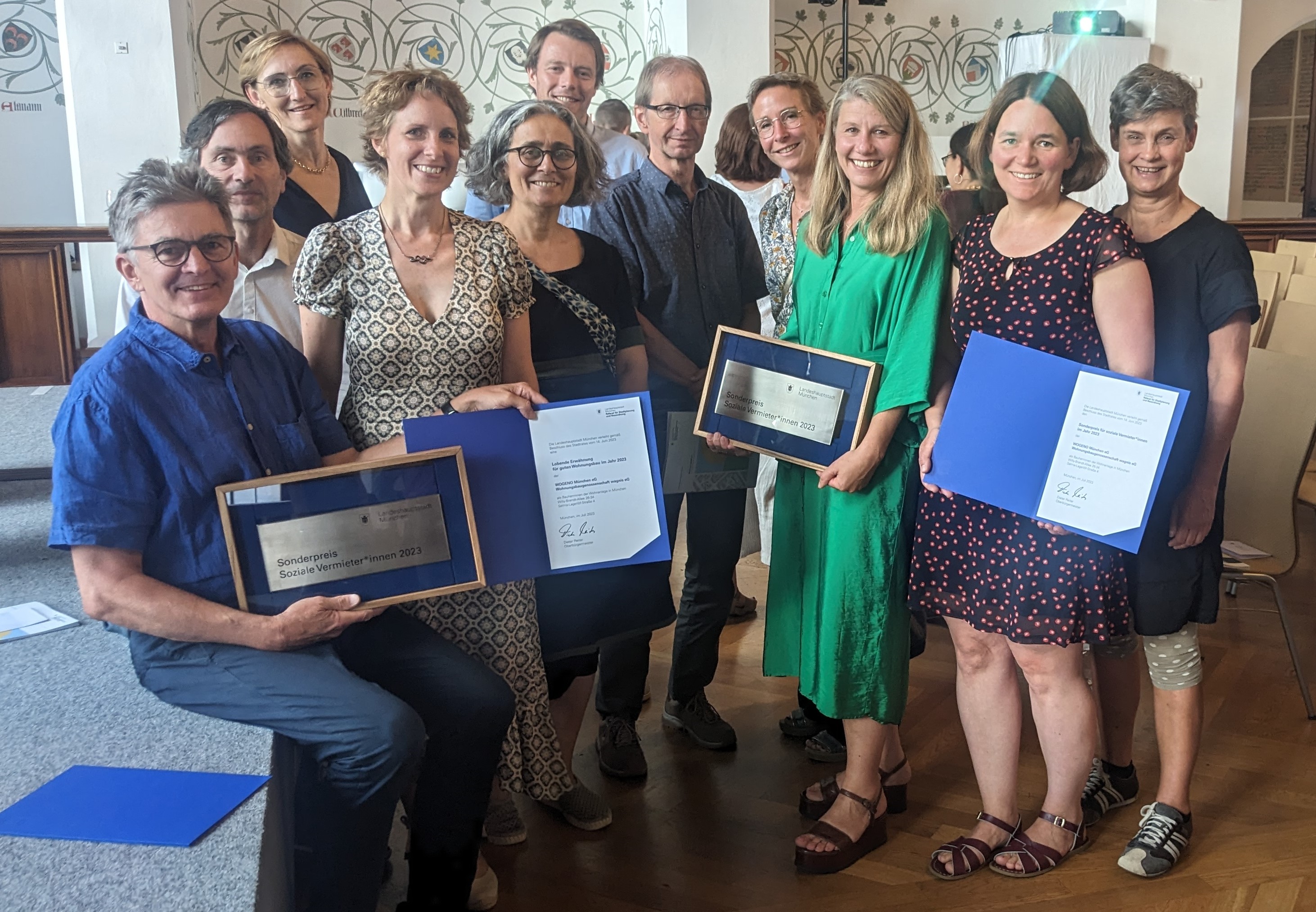 Am Donnerstag, den 20.07.23 wurden im alten Rathaus feierlich die Auszeichnungen zum Ehrenpreis für guten Wohnungsbau im Jahr 2023 der Landeshauptstadt München verliehen.
