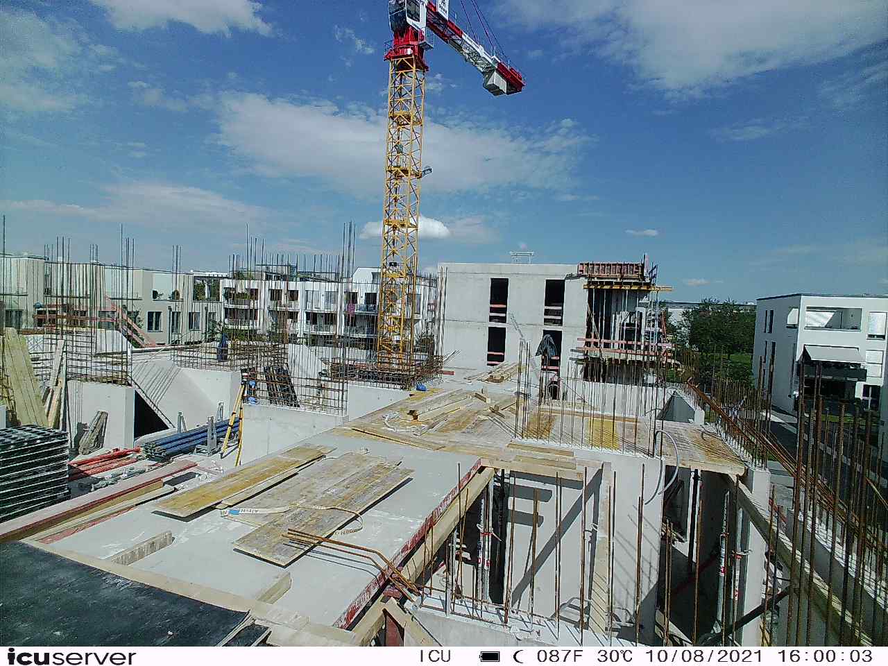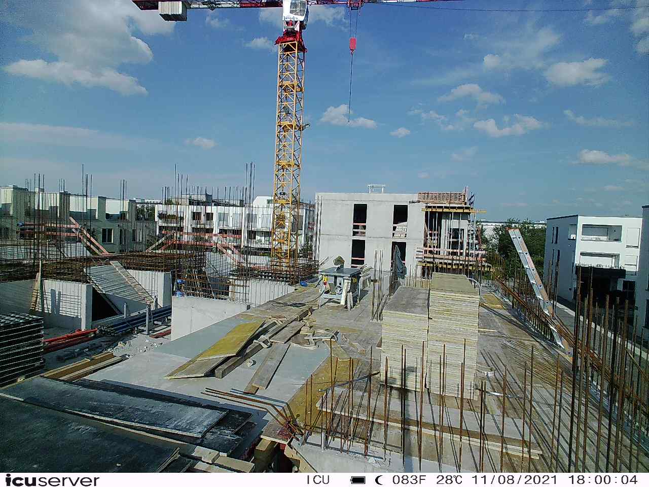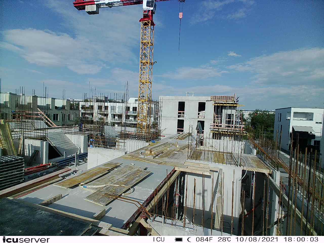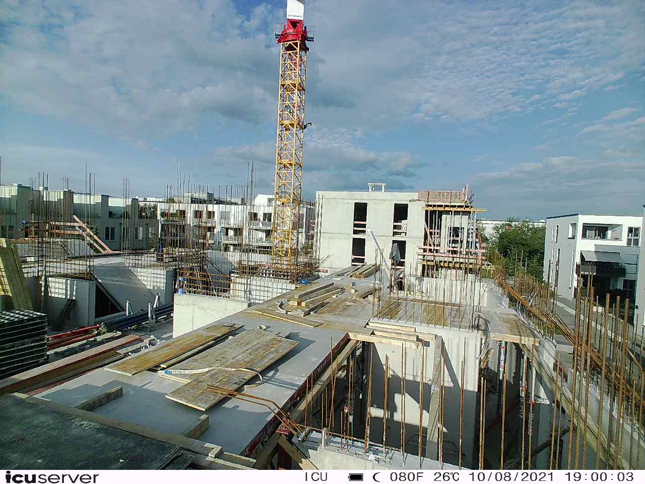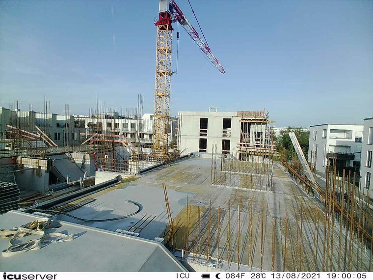 Die Kamera steht am westlichen Ende der Baustelle. Sie blickt nach Osten. Bilder: 26. Februar - 13. August 2021.