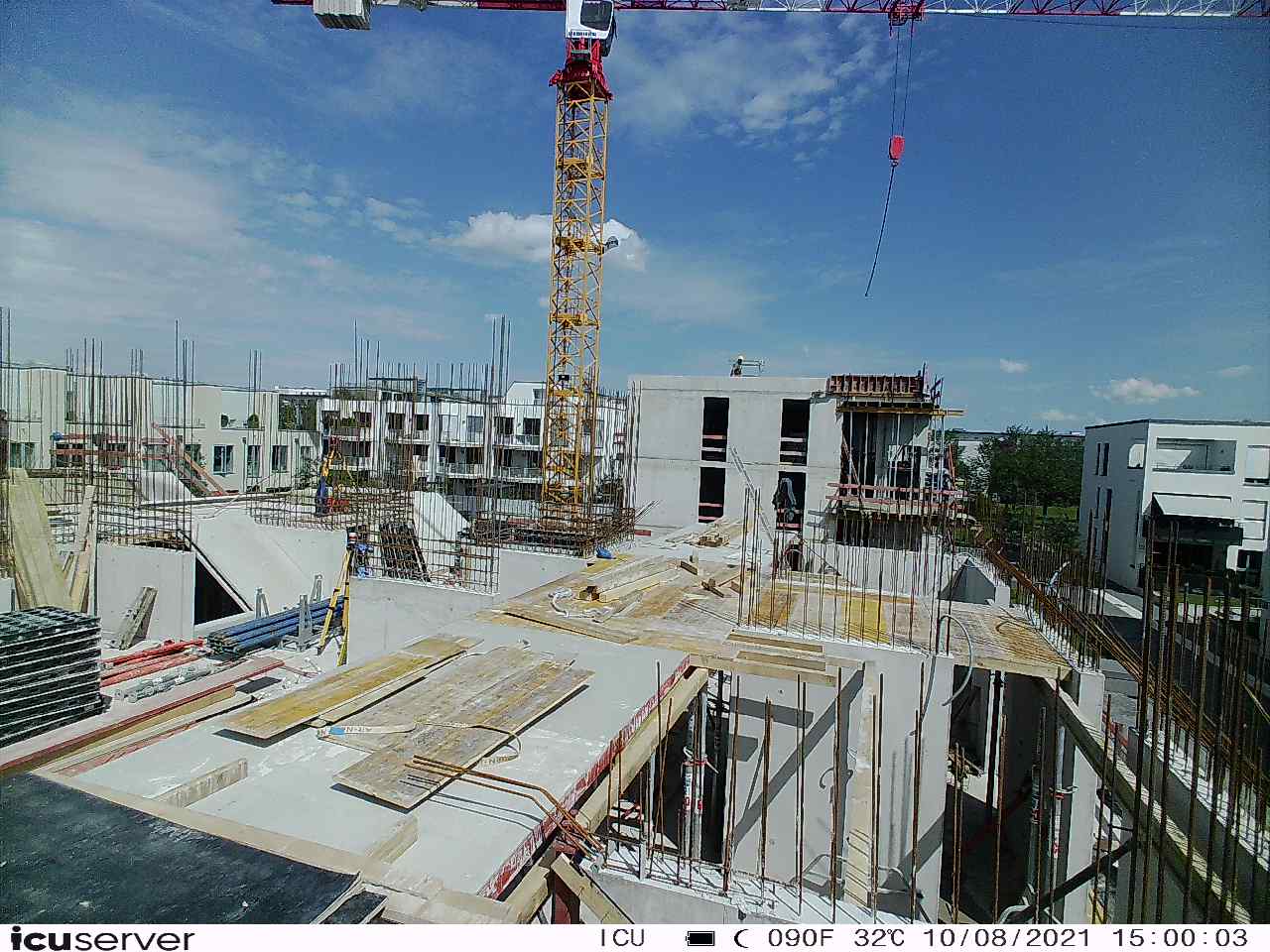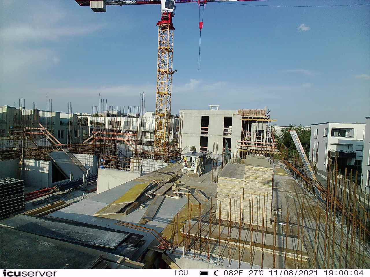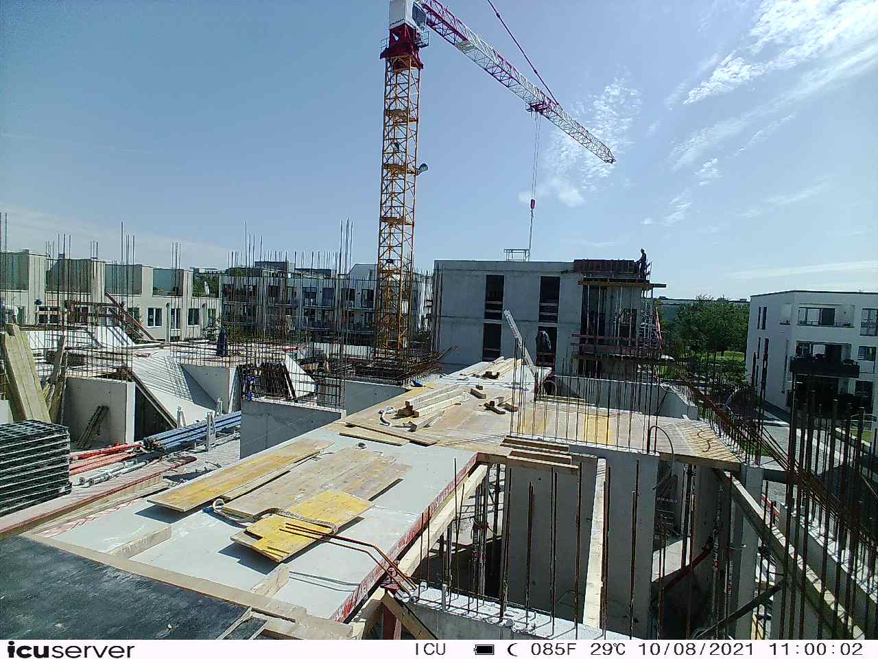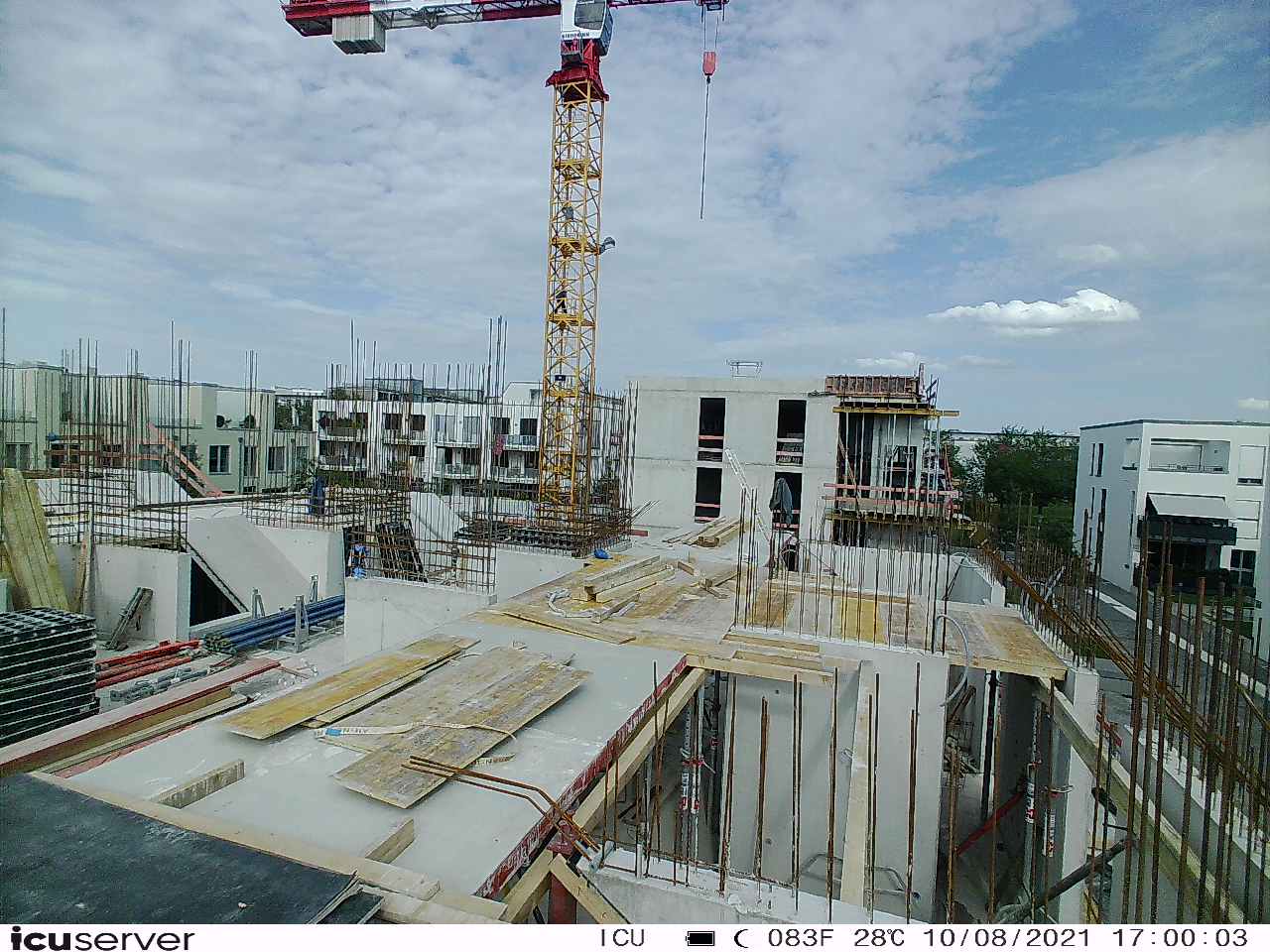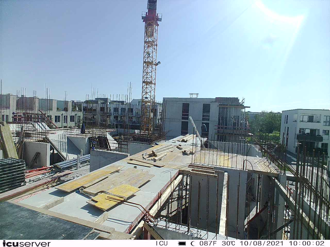 Die Kamera steht am westlichen Ende der Baustelle. Sie blickt nach Osten. Bilder: 26. Februar - 13. August 2021.