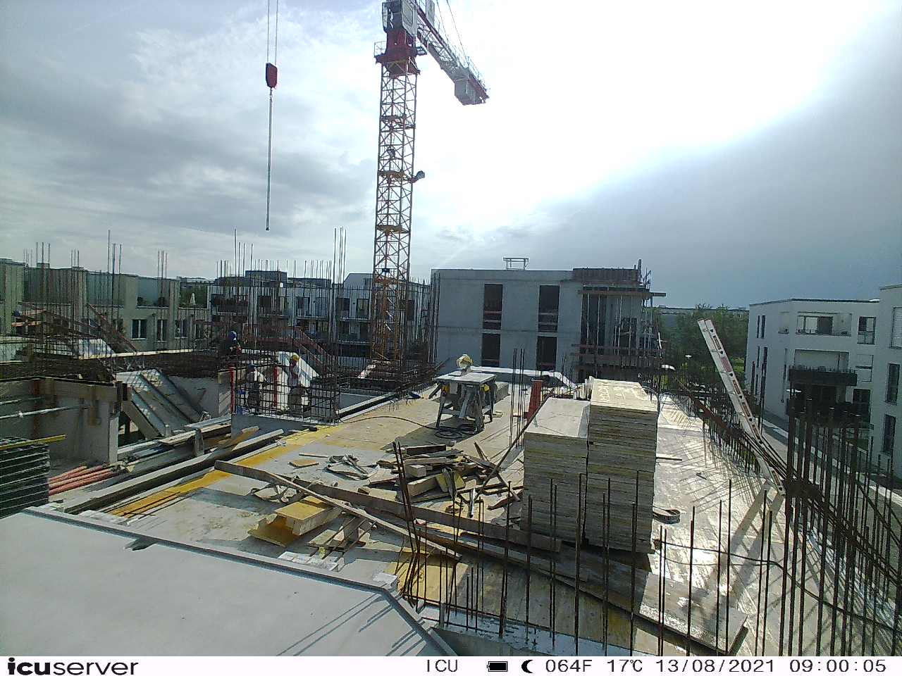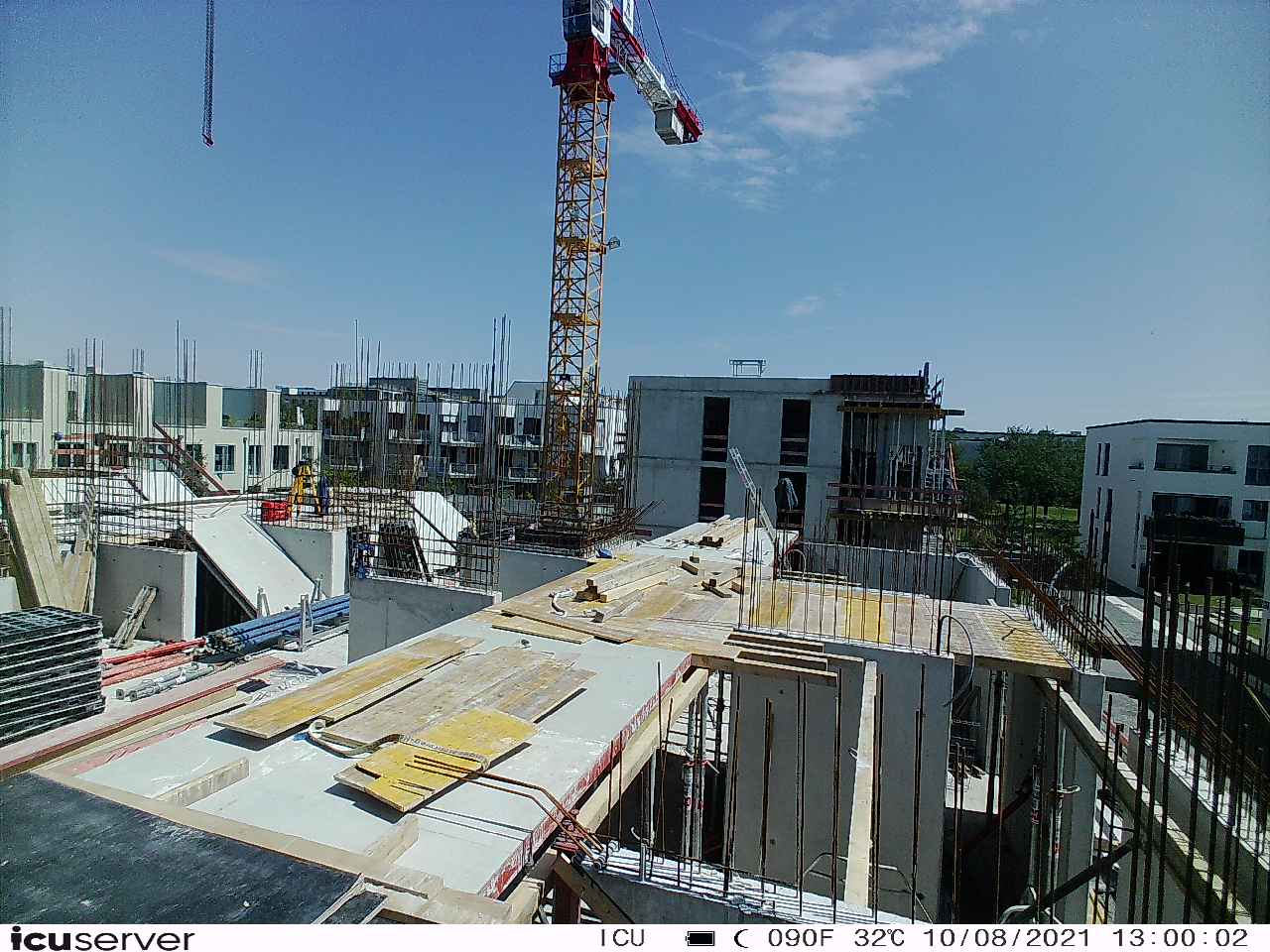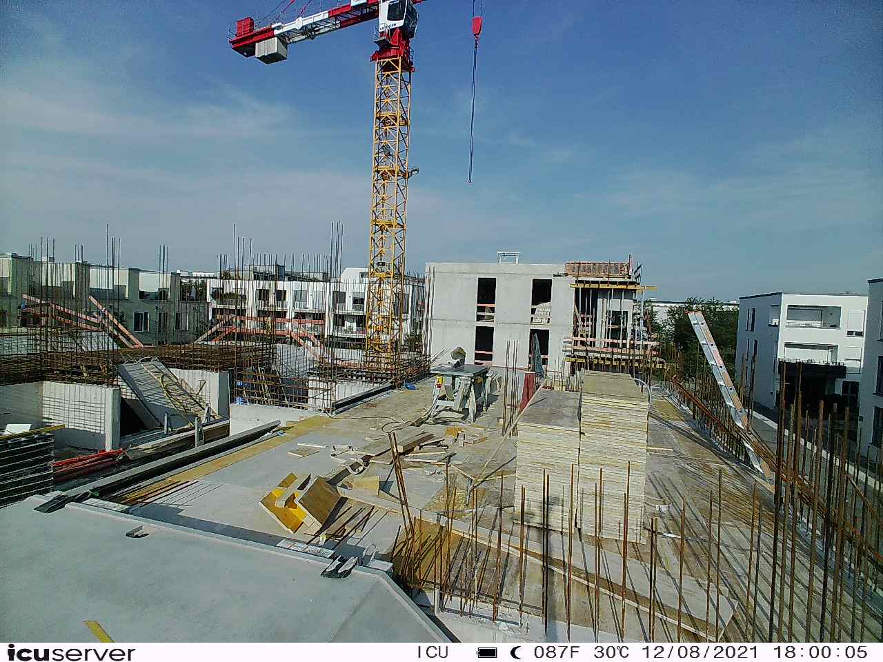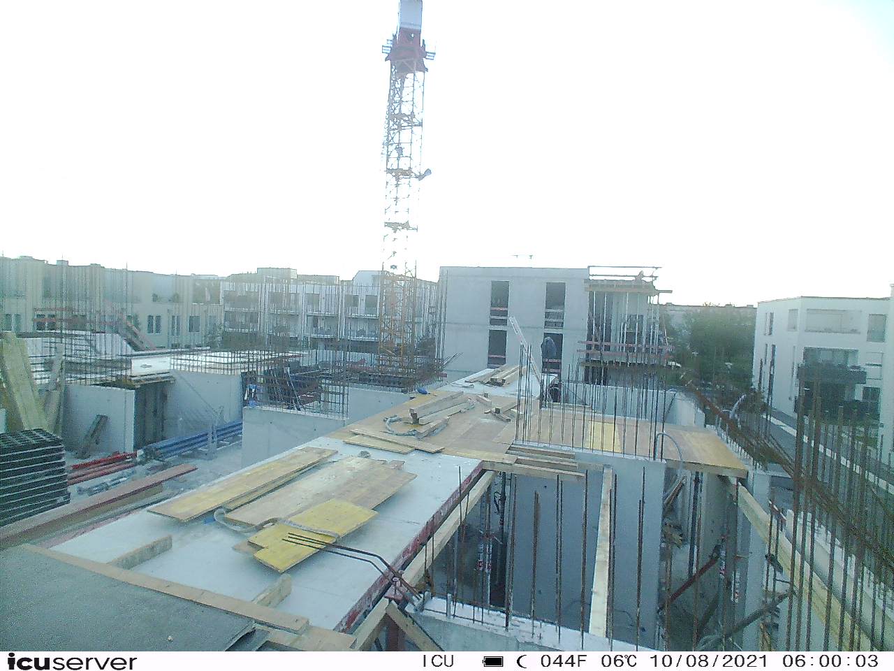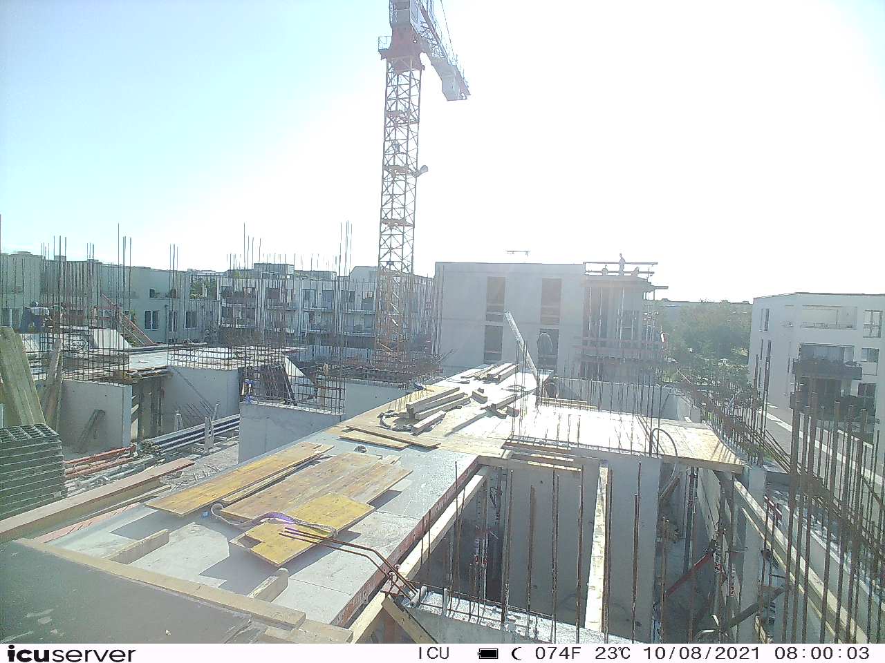 Die Kamera steht am westlichen Ende der Baustelle. Sie blickt nach Osten. Bilder: 26. Februar - 13. August 2021.