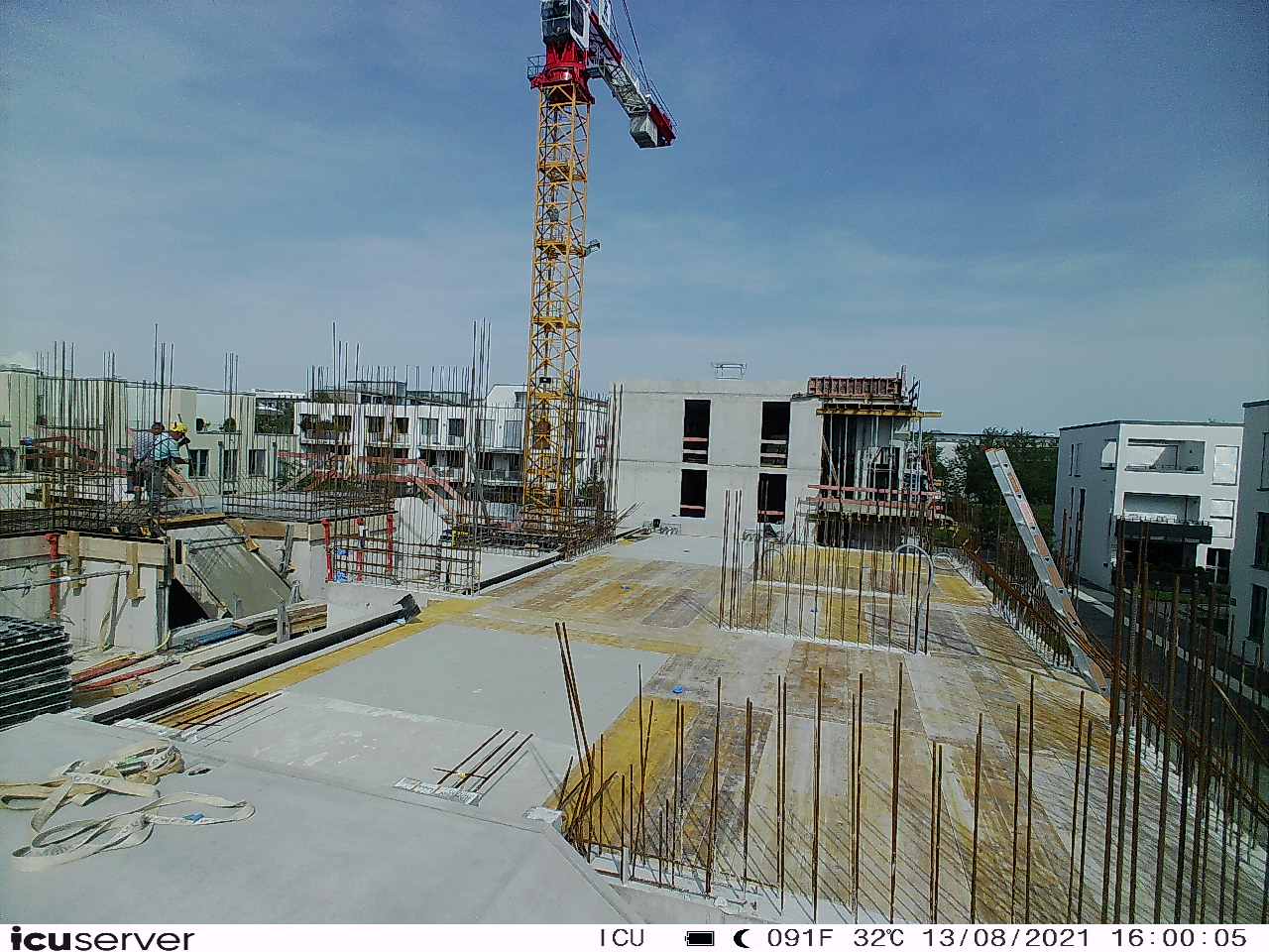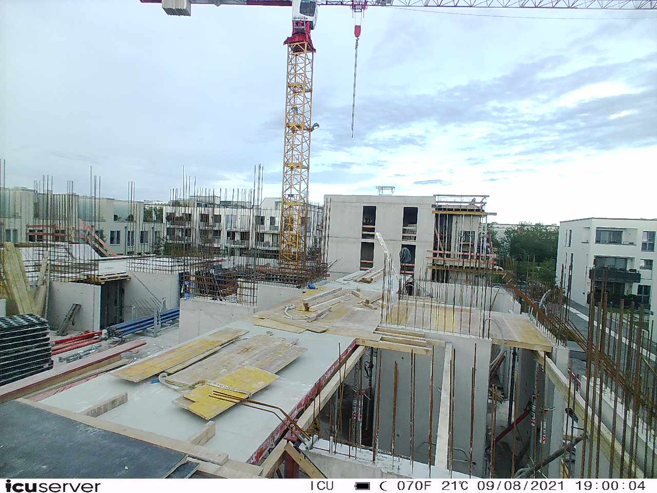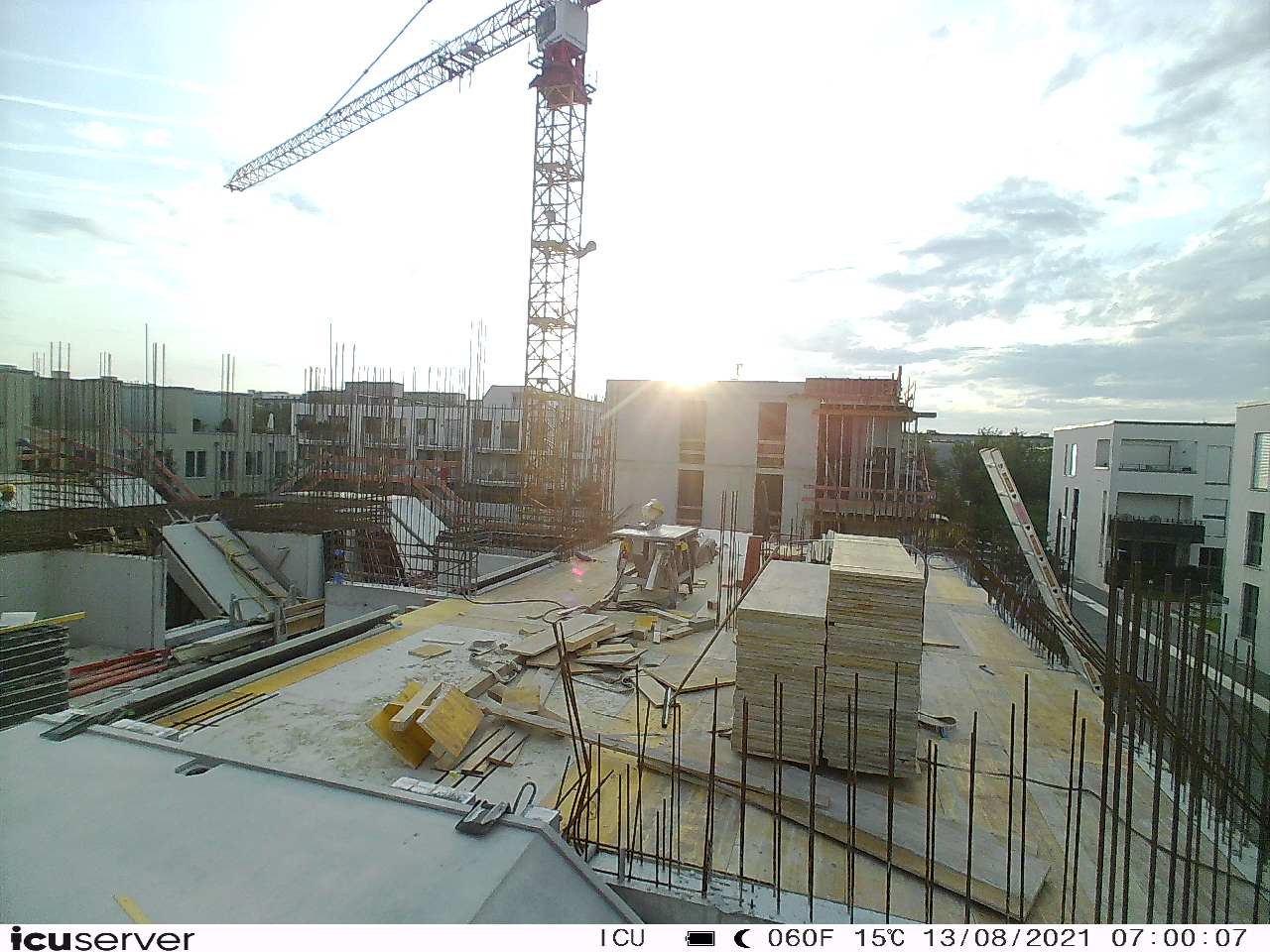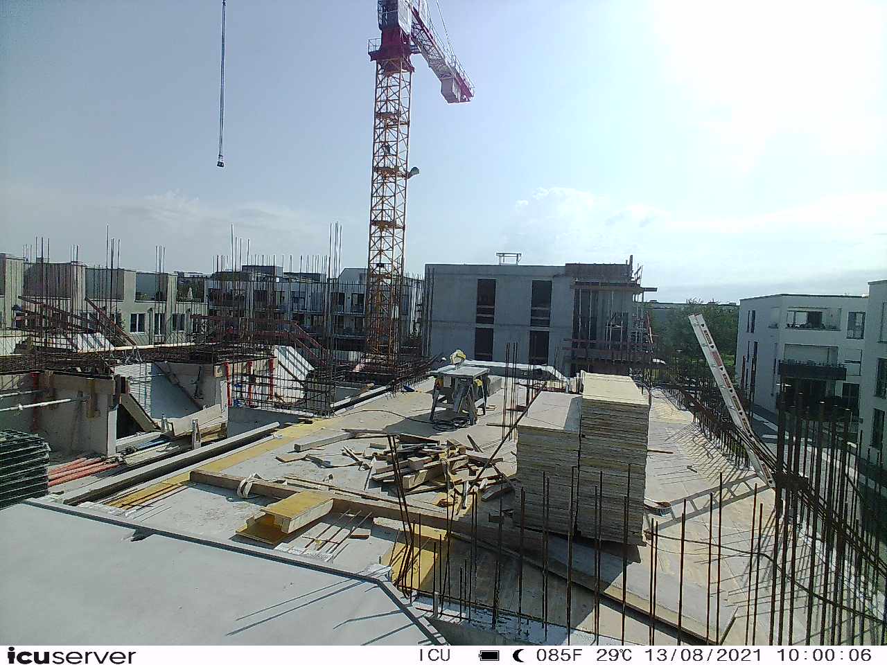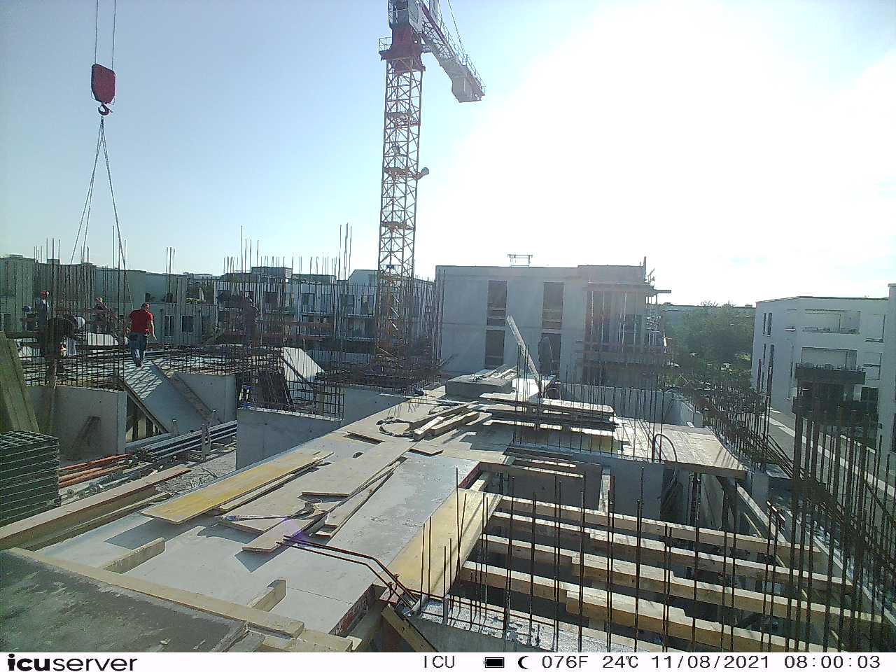 Die Kamera steht am westlichen Ende der Baustelle. Sie blickt nach Osten. Bilder: 26. Februar - 13. August 2021.