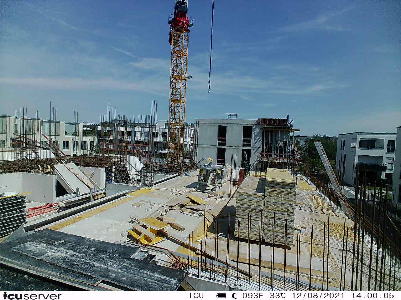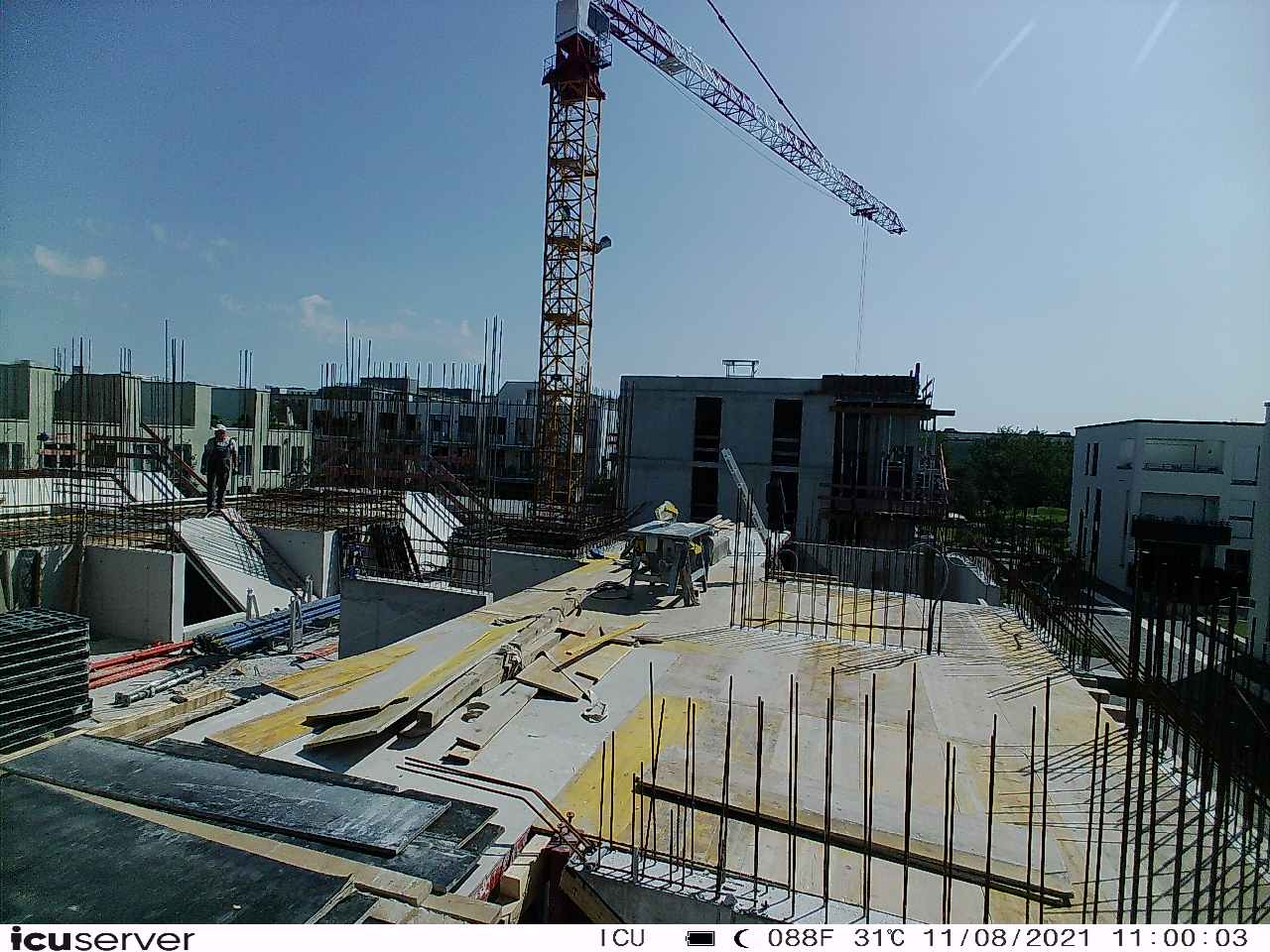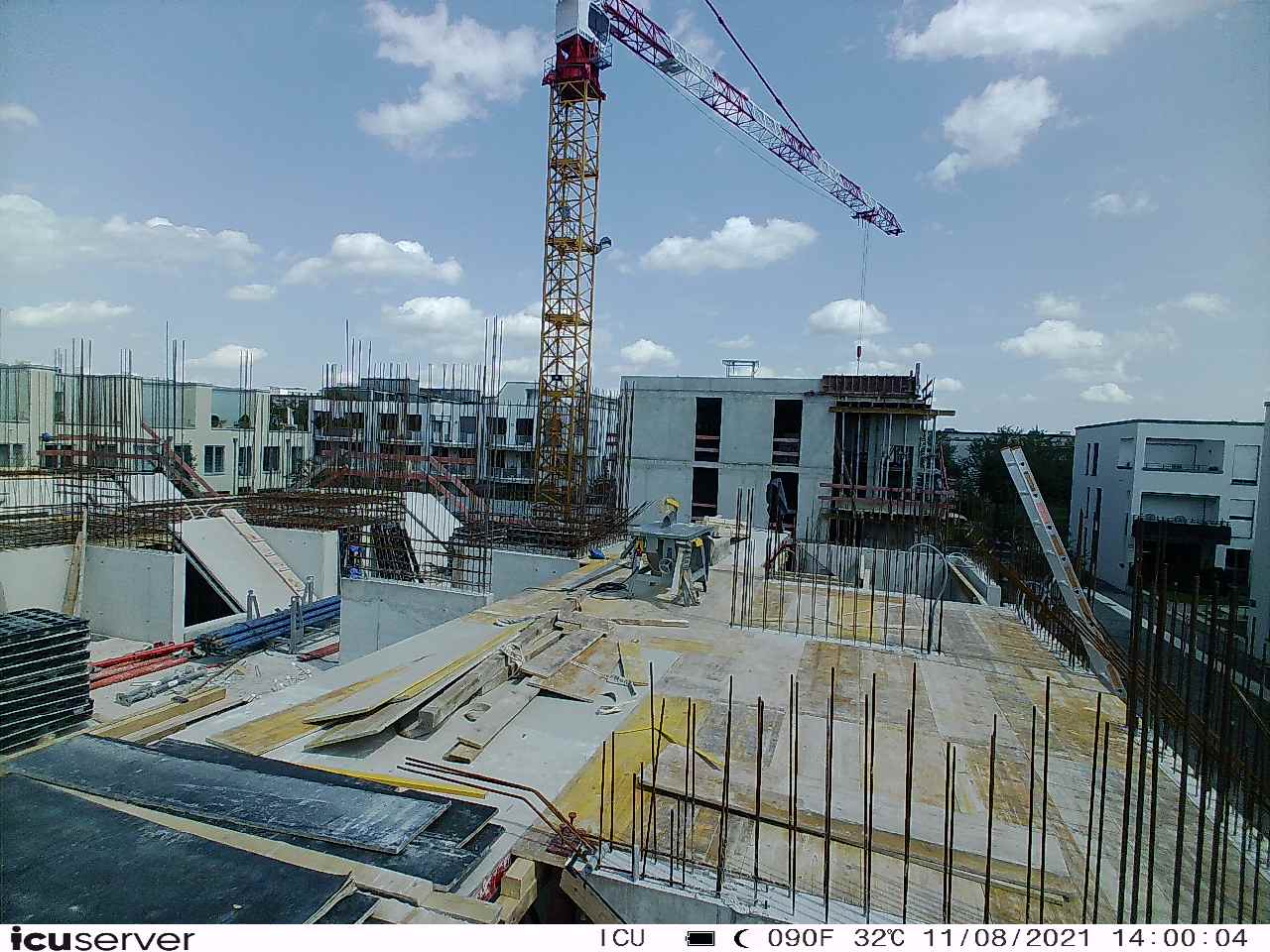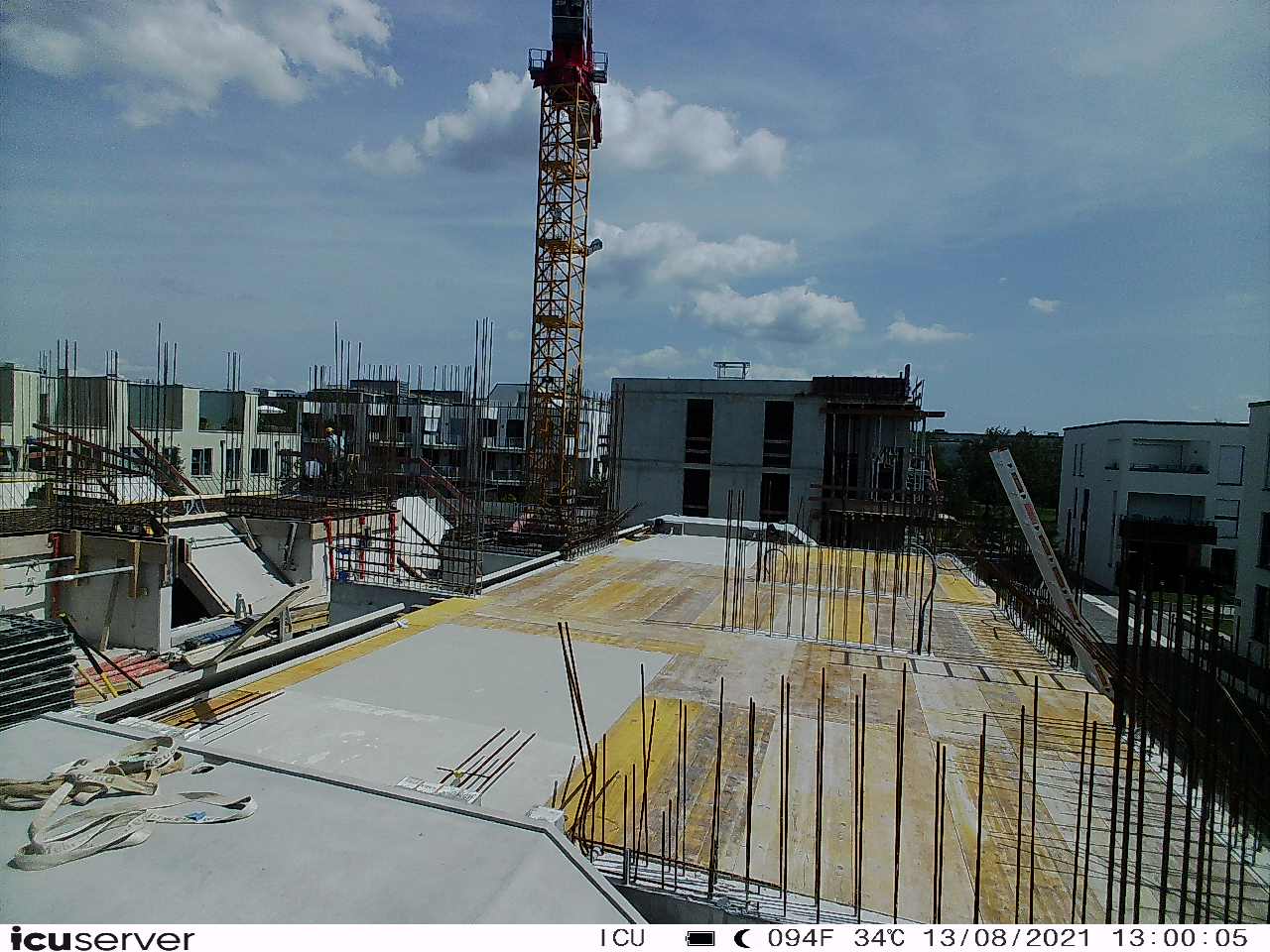 Die Kamera steht am westlichen Ende der Baustelle. Sie blickt nach Osten. Bilder: 26. Februar - 13. August 2021.
