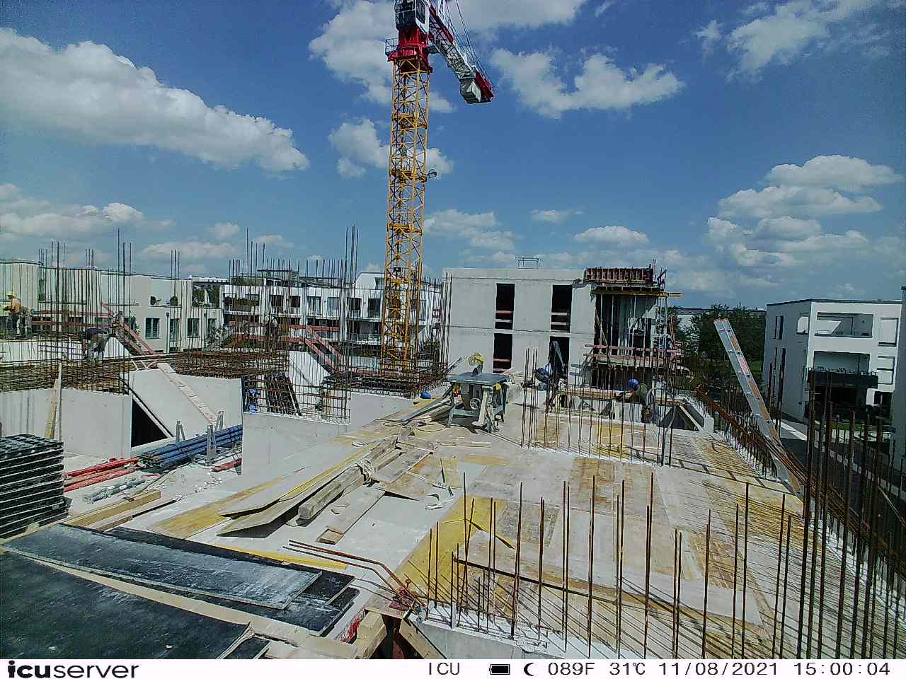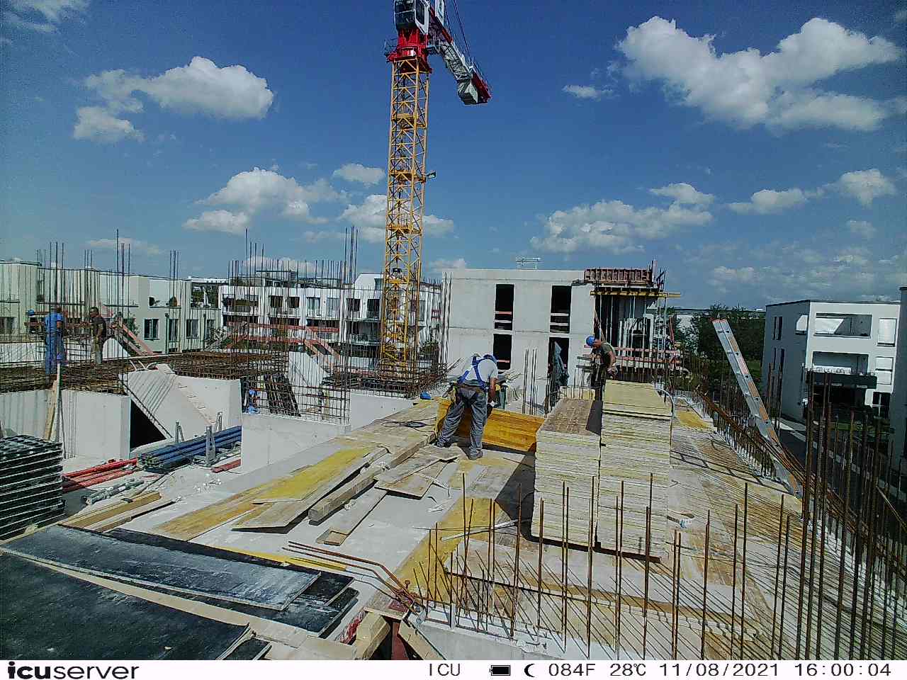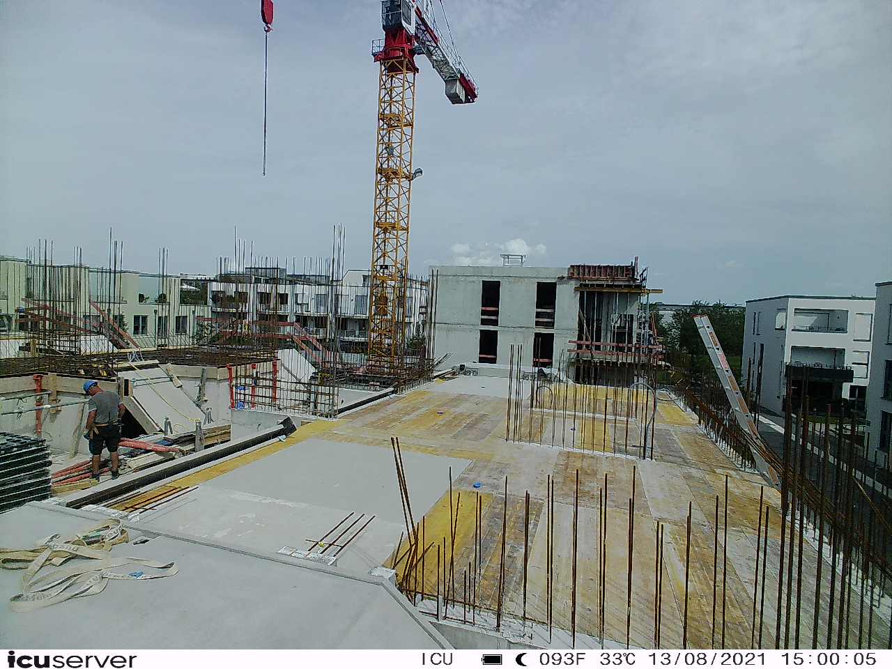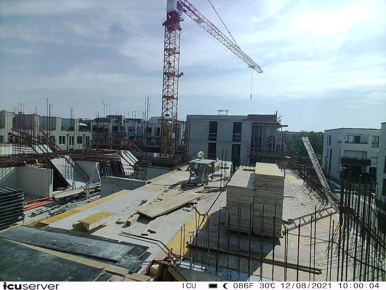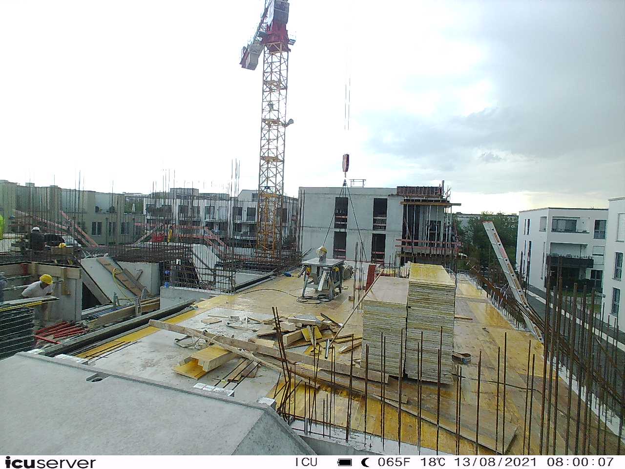 Die Kamera steht am westlichen Ende der Baustelle. Sie blickt nach Osten. Bilder: 26. Februar - 13. August 2021.