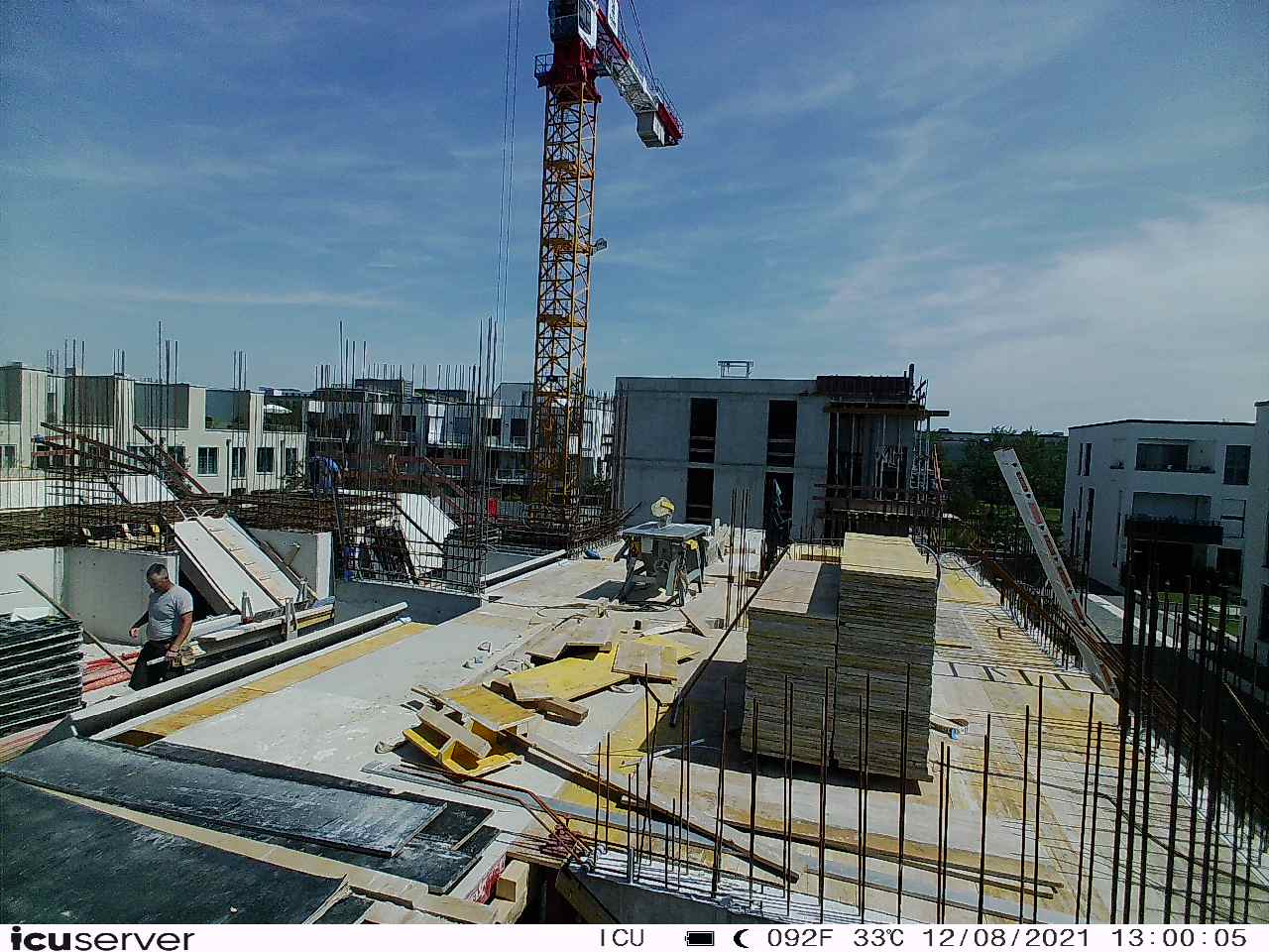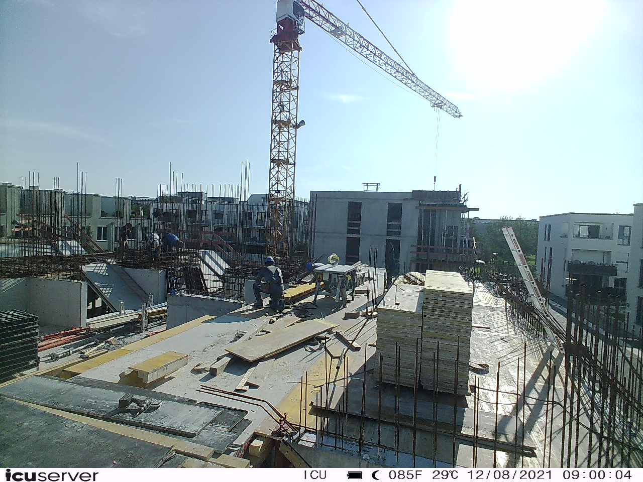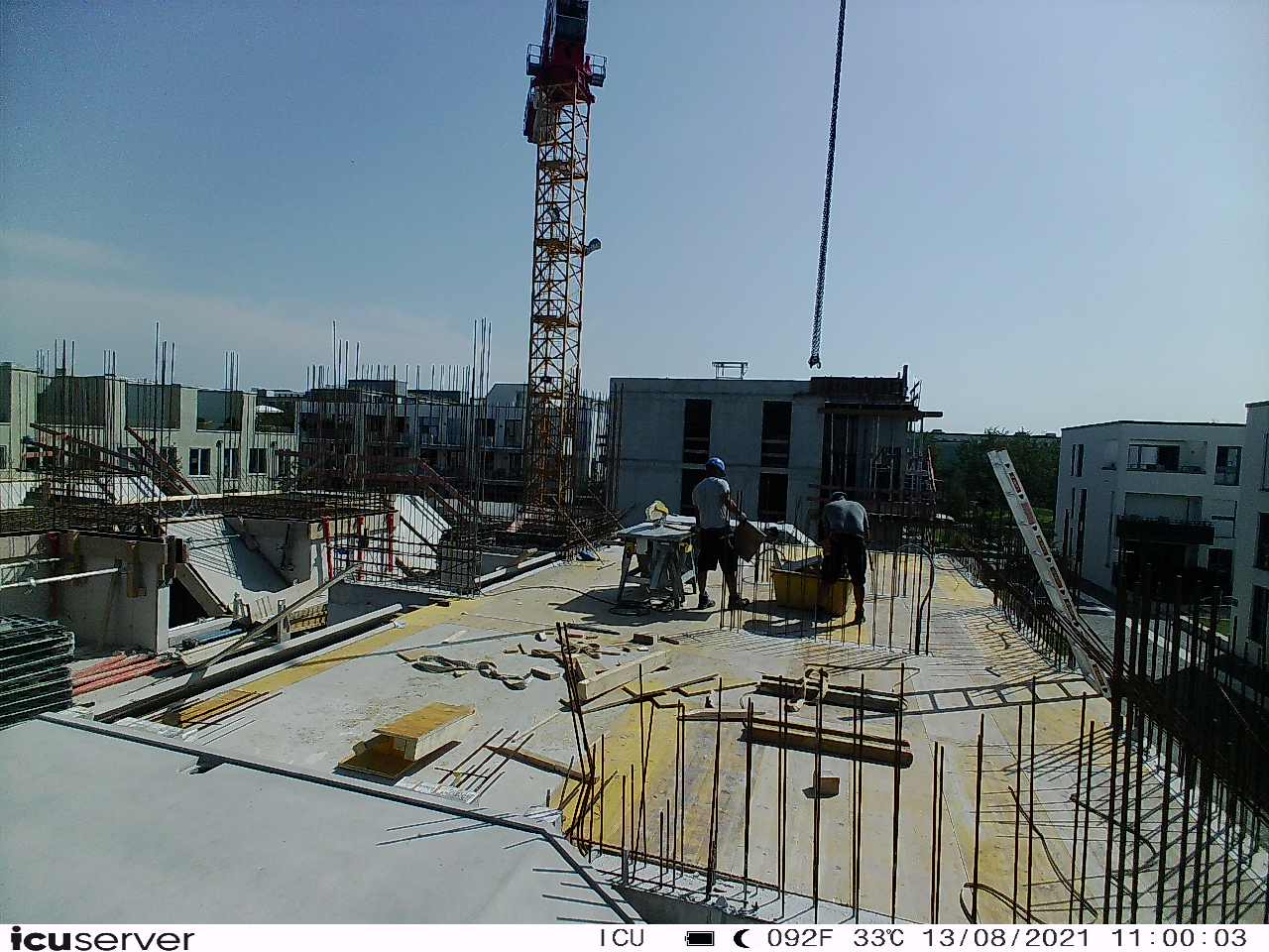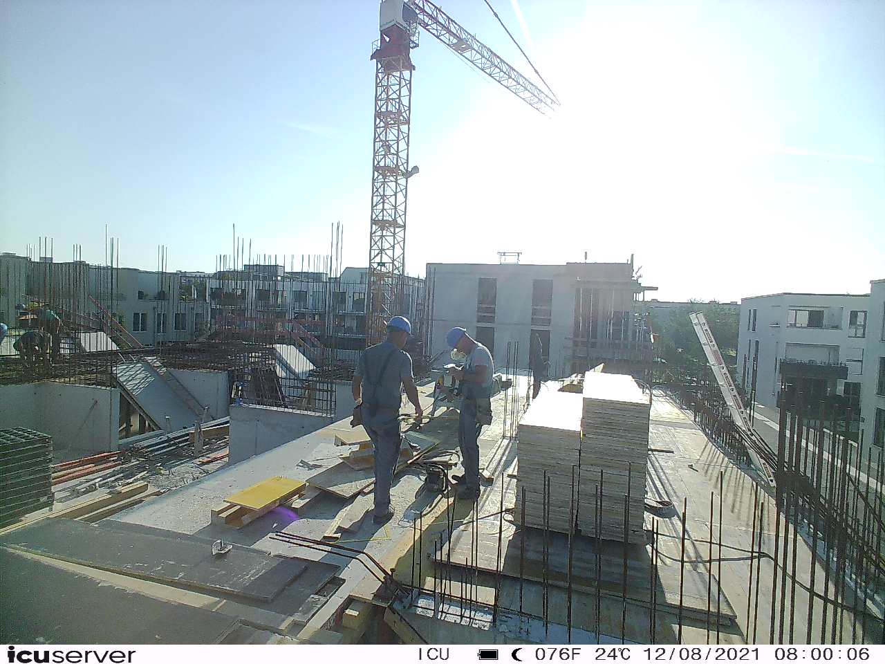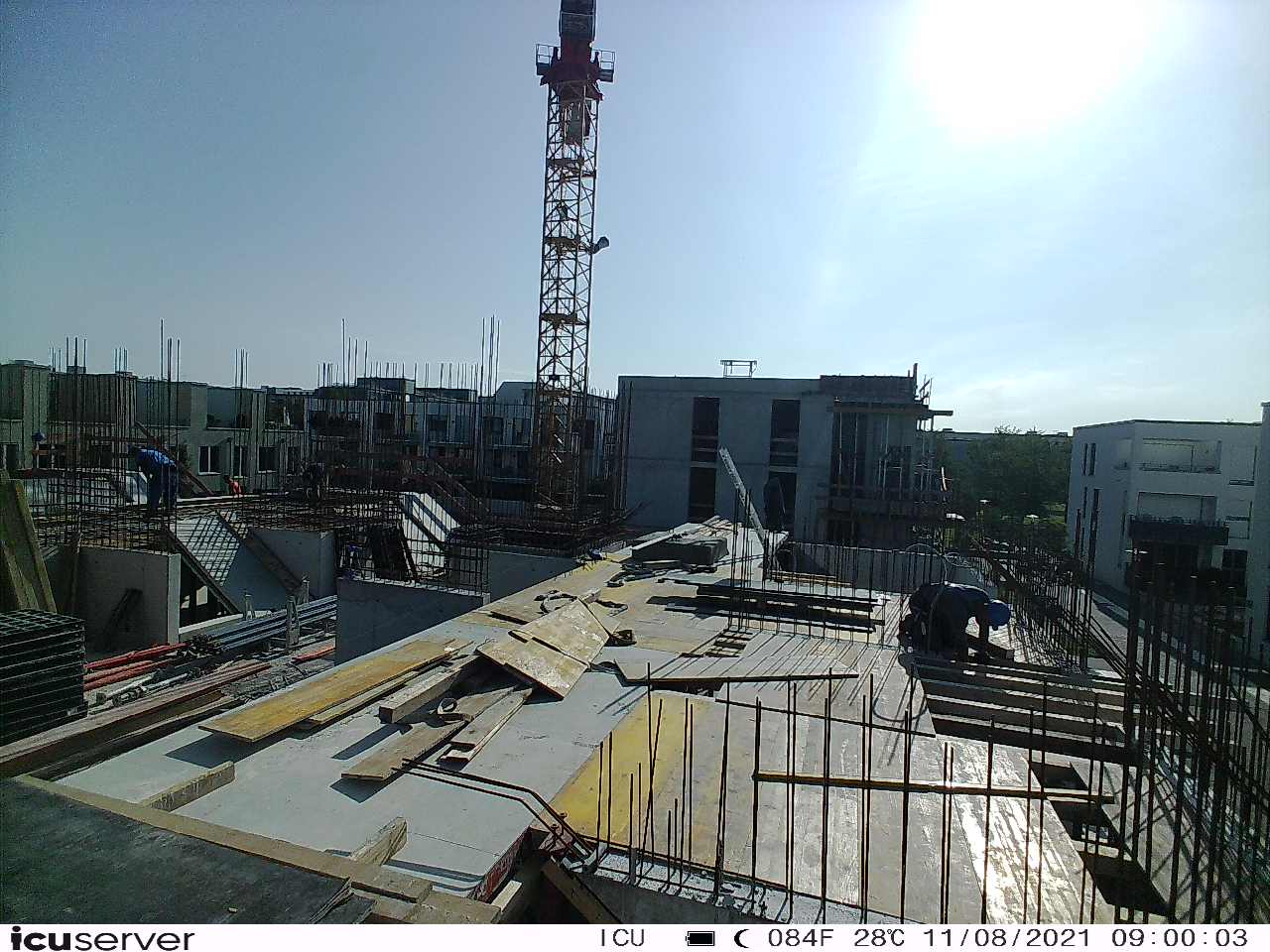 Die Kamera steht am westlichen Ende der Baustelle. Sie blickt nach Osten. Bilder: 26. Februar - 13. August 2021.