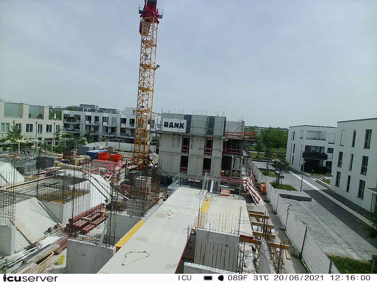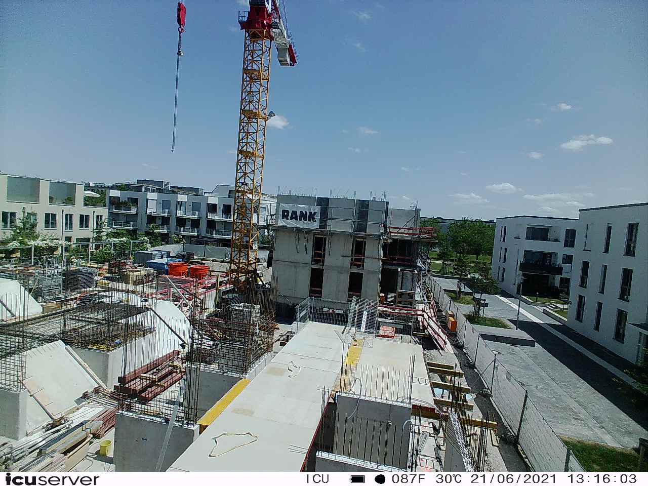 Die Kamera steht am westlichen Ende der Baustelle. Sie blickt nach Osten. Bilder: 26. Februar - 13. August 2021.