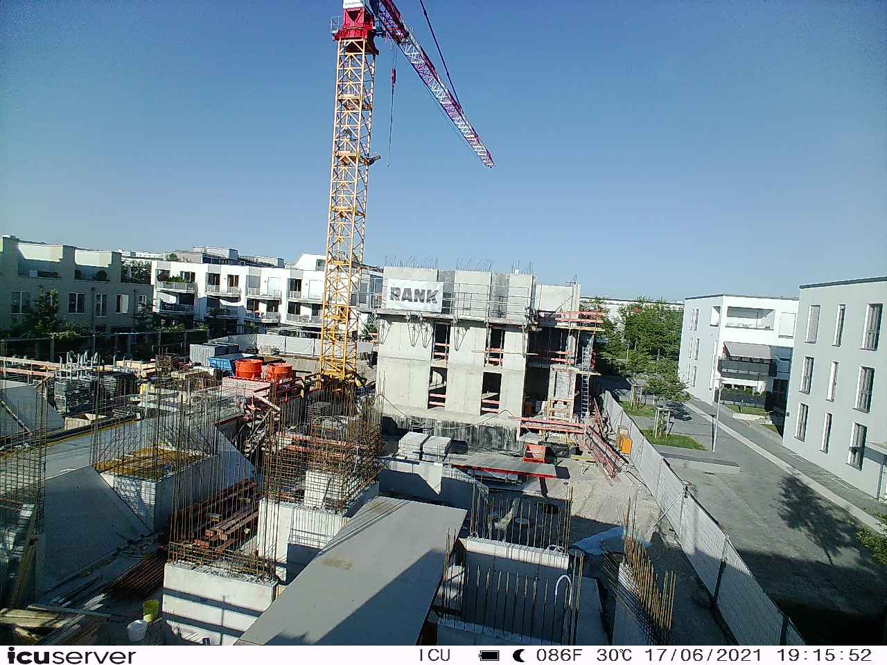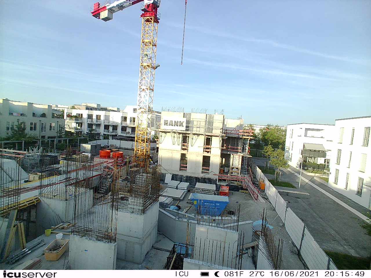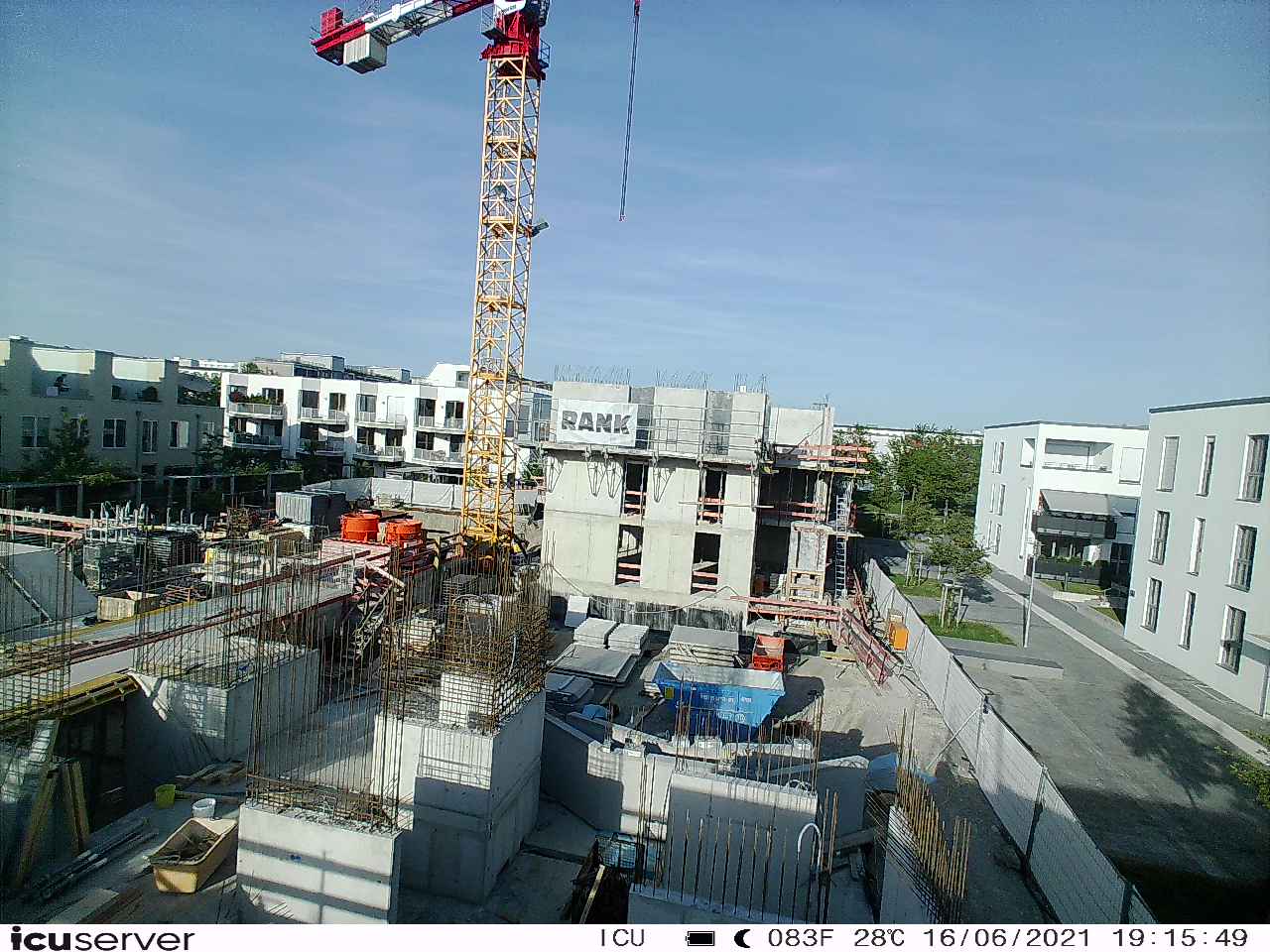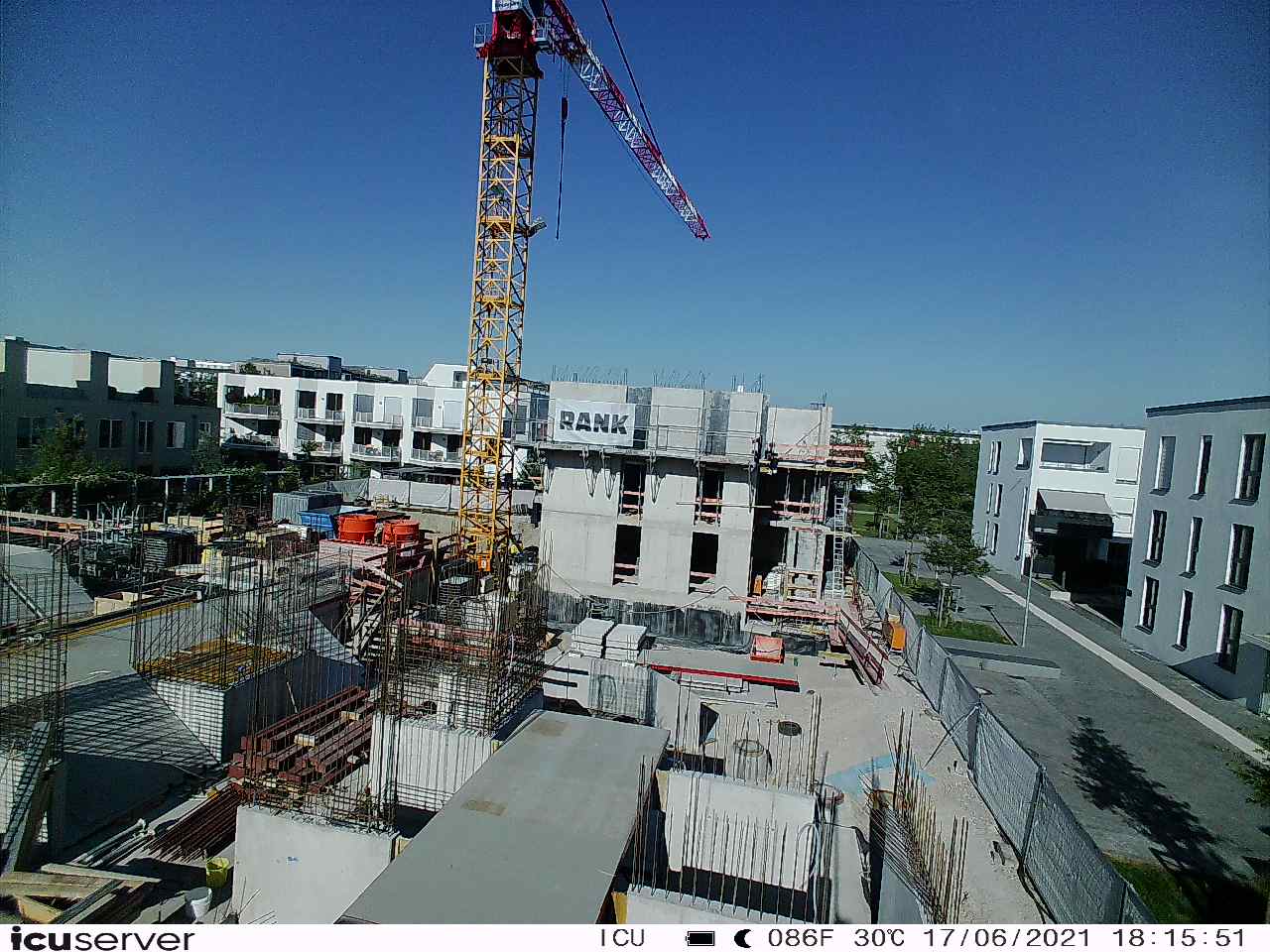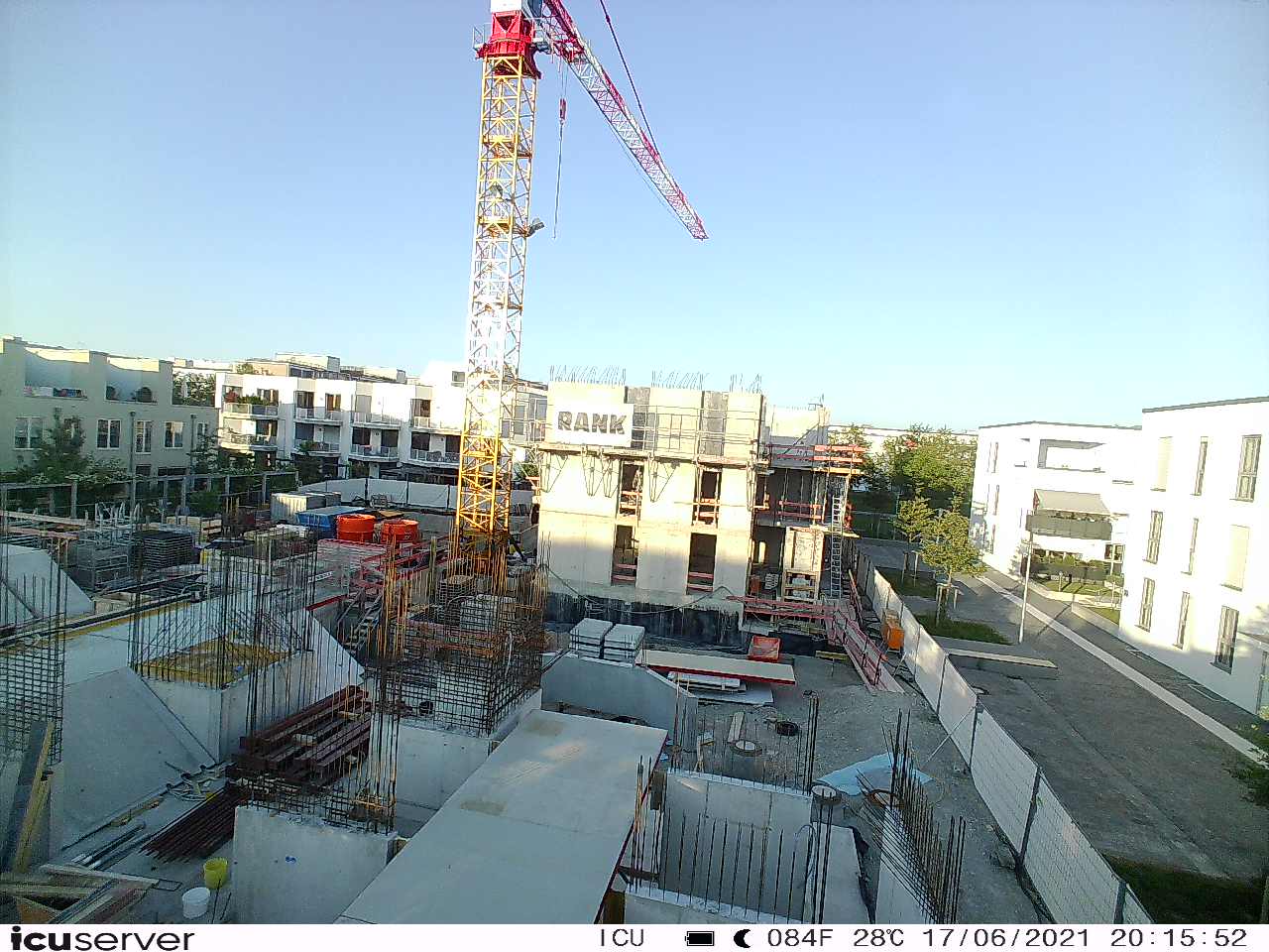 Die Kamera steht am westlichen Ende der Baustelle. Sie blickt nach Osten. Bilder: 26. Februar - 13. August 2021.
