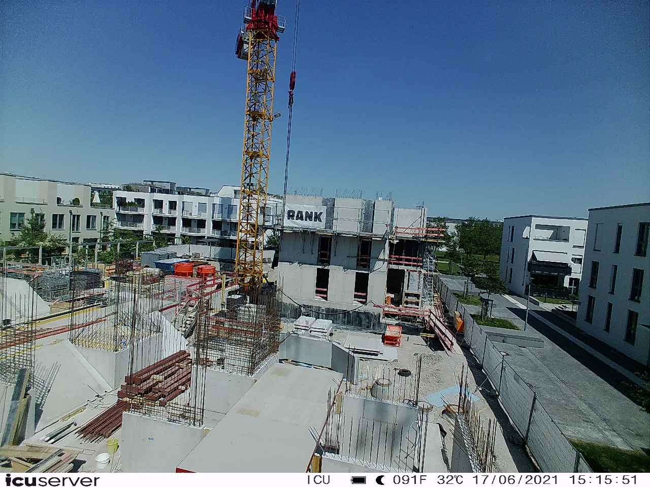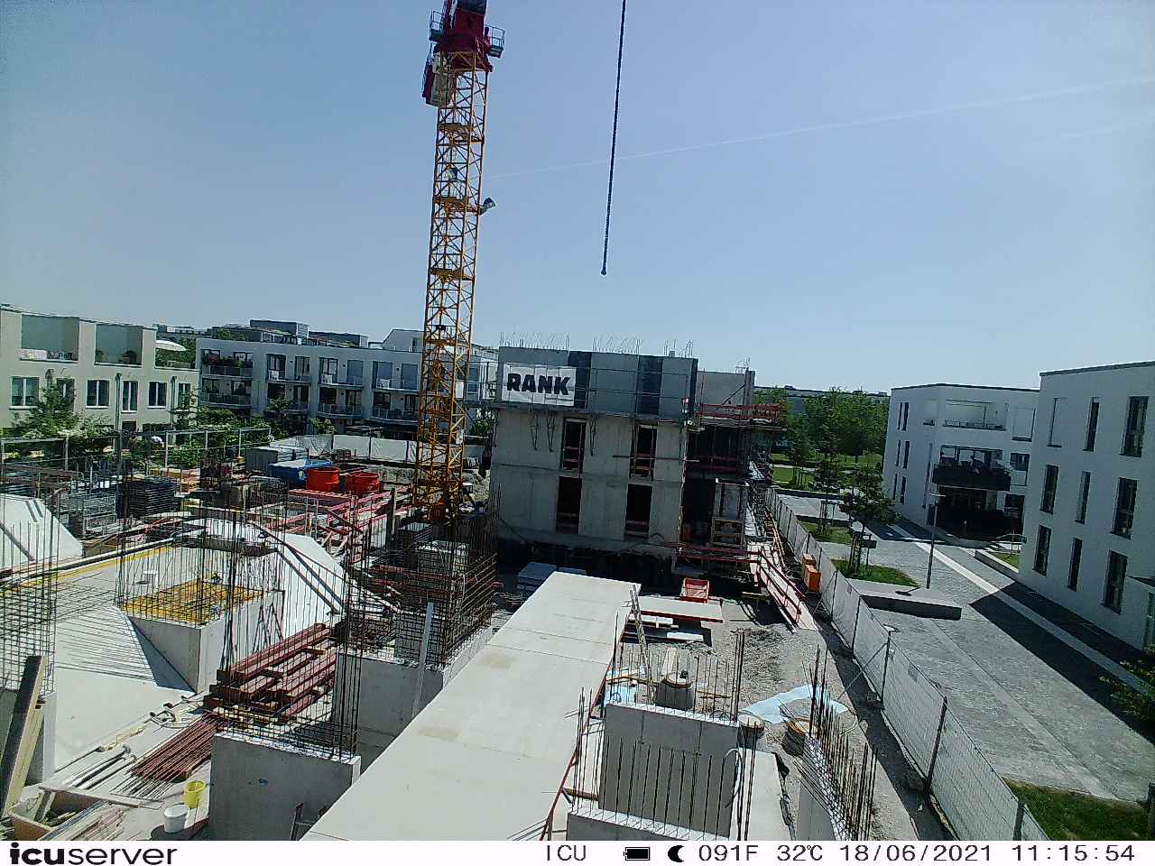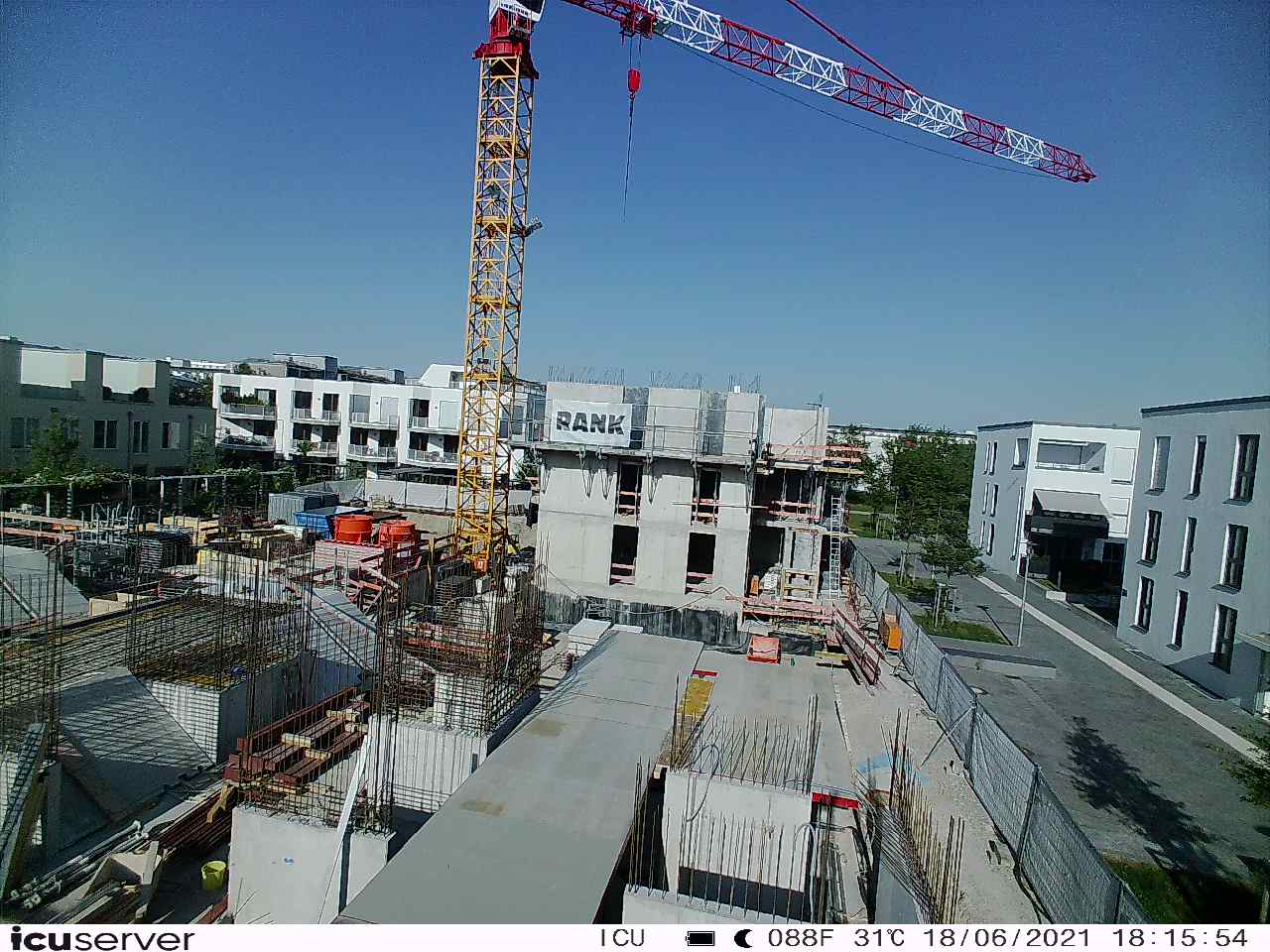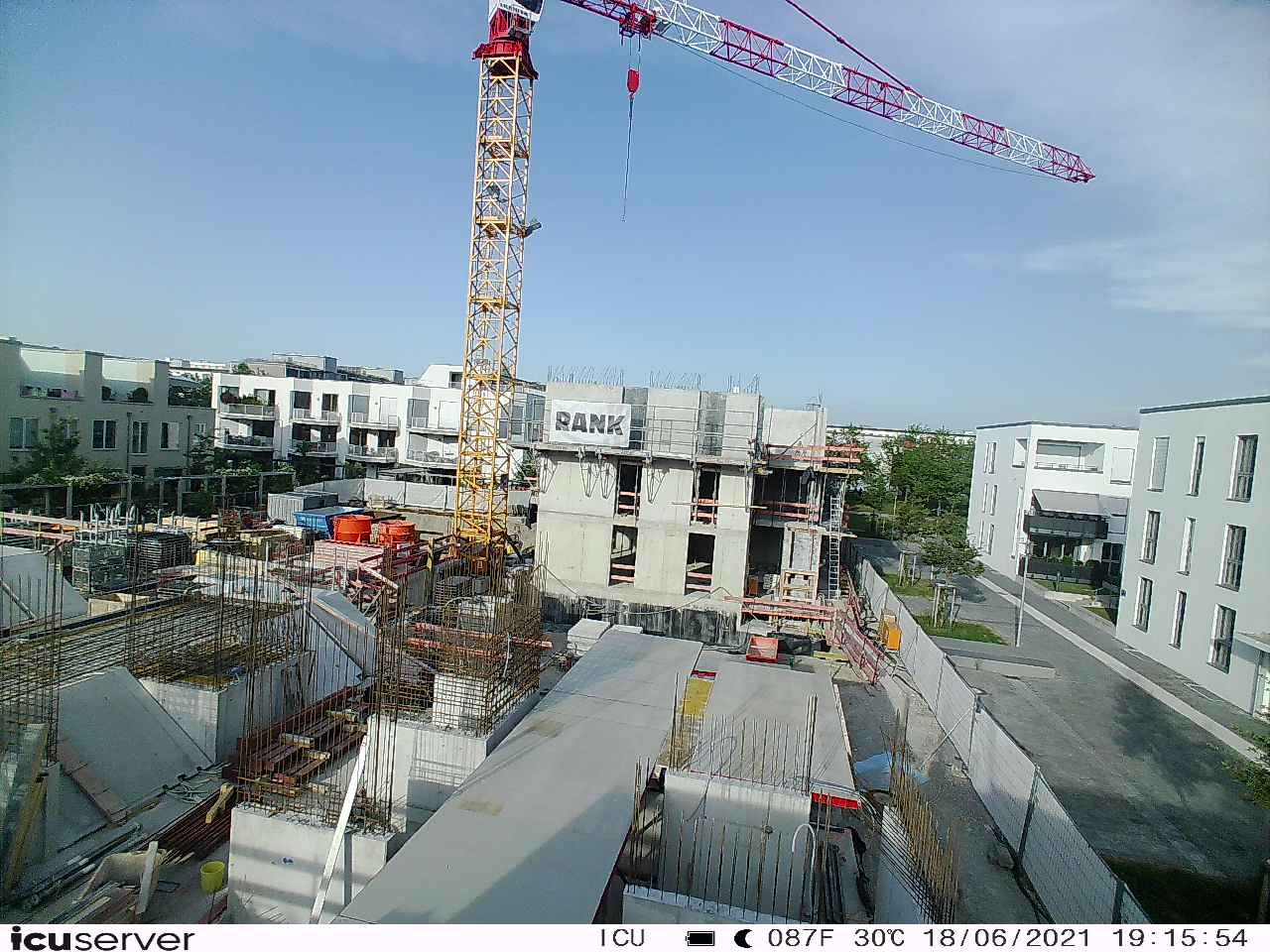 Die Kamera steht am westlichen Ende der Baustelle. Sie blickt nach Osten. Bilder: 26. Februar - 13. August 2021.
