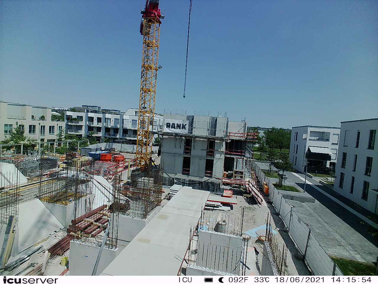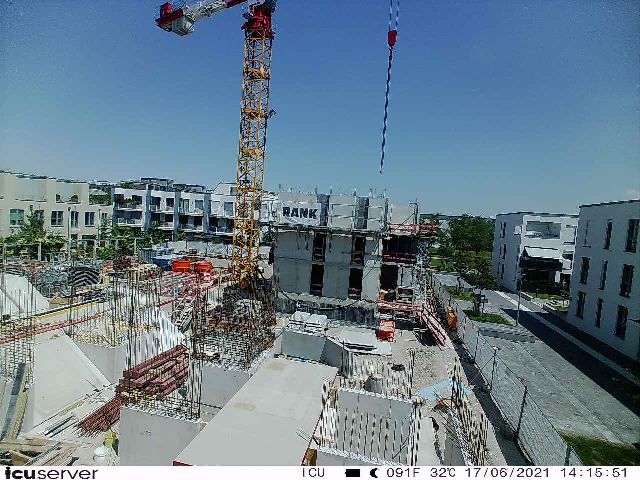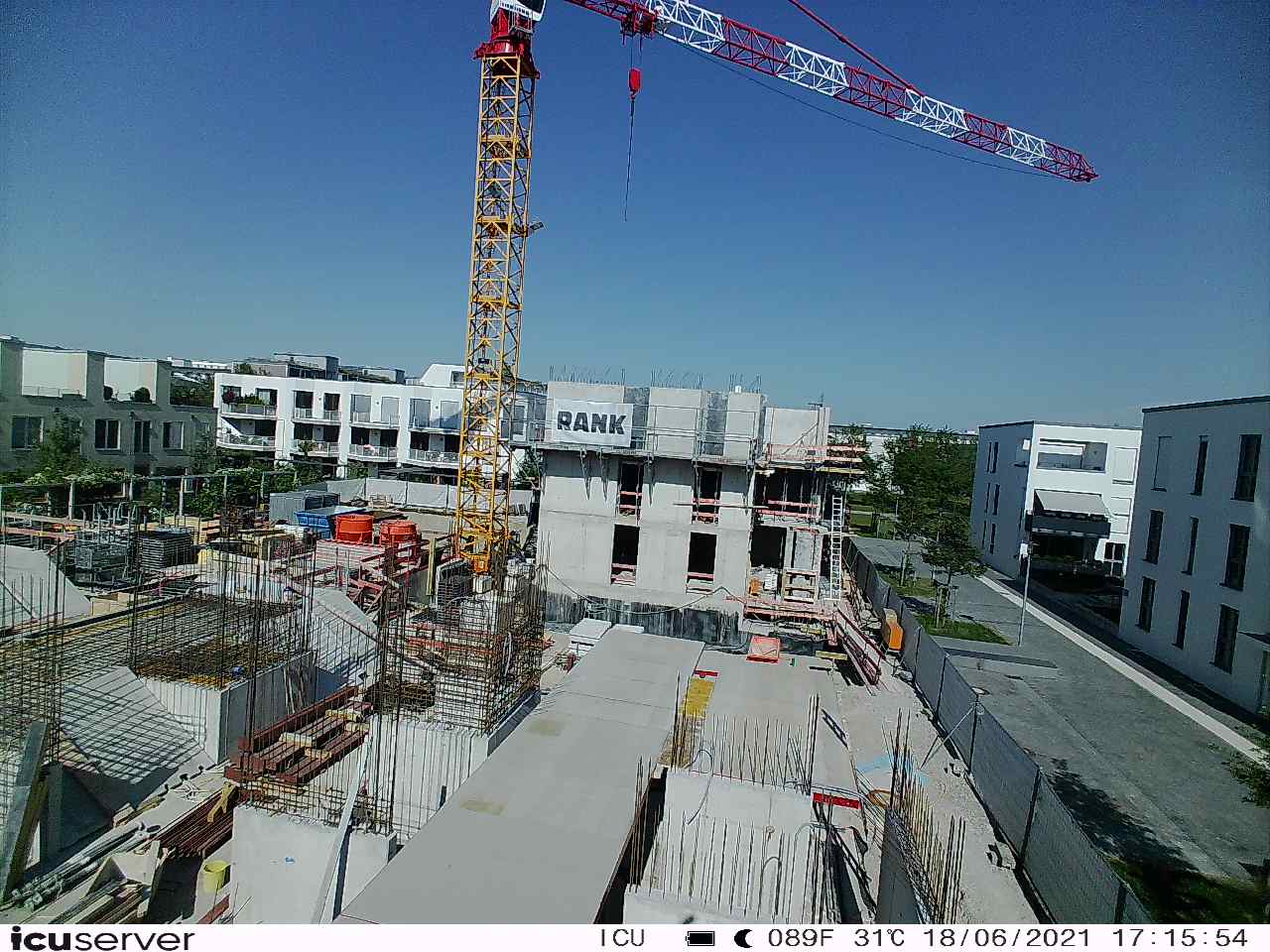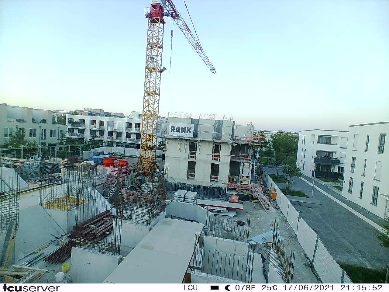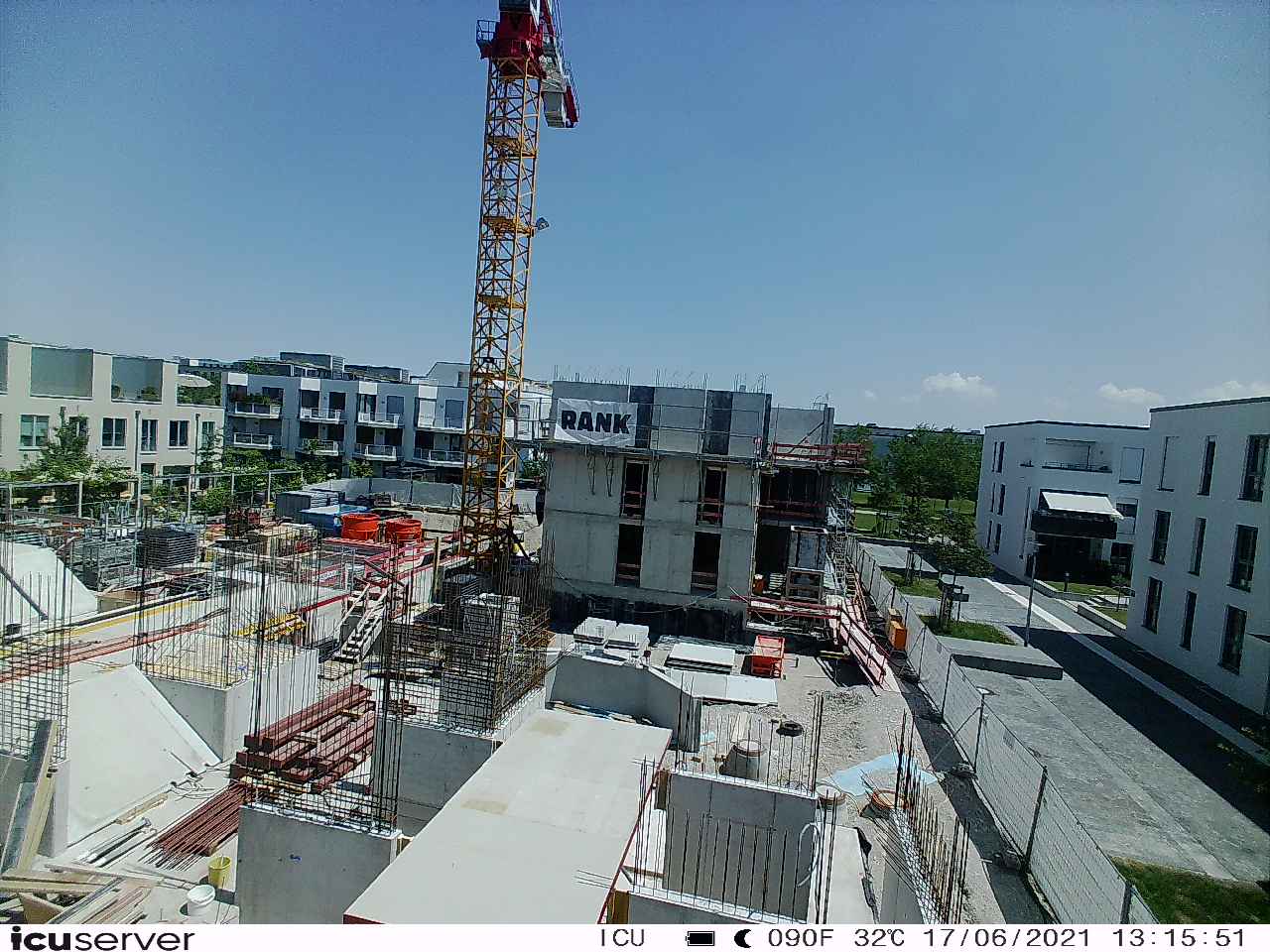 Die Kamera steht am westlichen Ende der Baustelle. Sie blickt nach Osten. Bilder: 26. Februar - 13. August 2021.