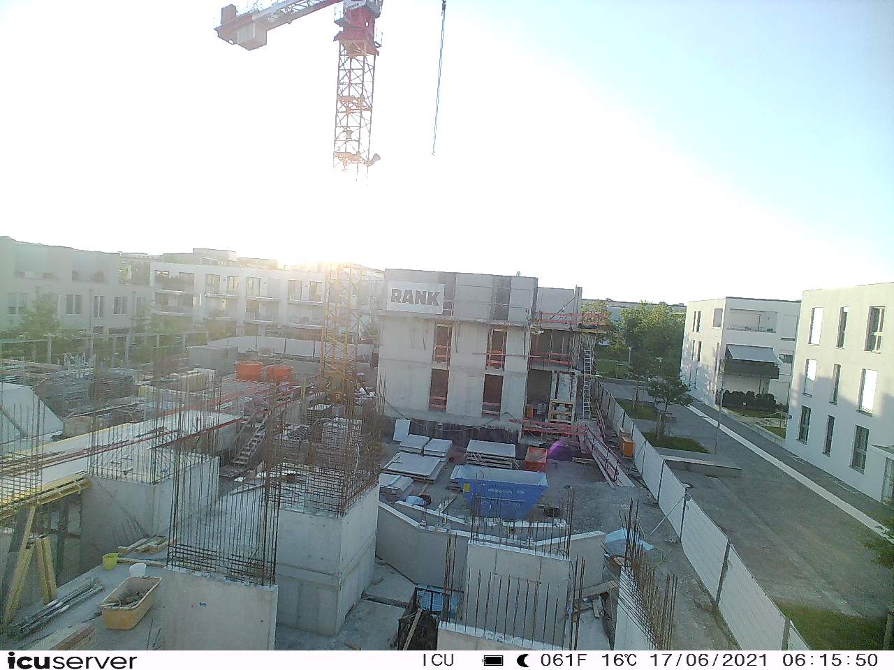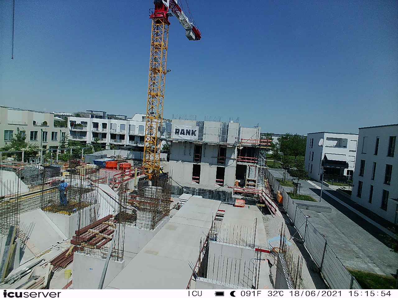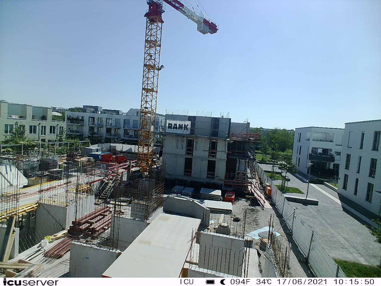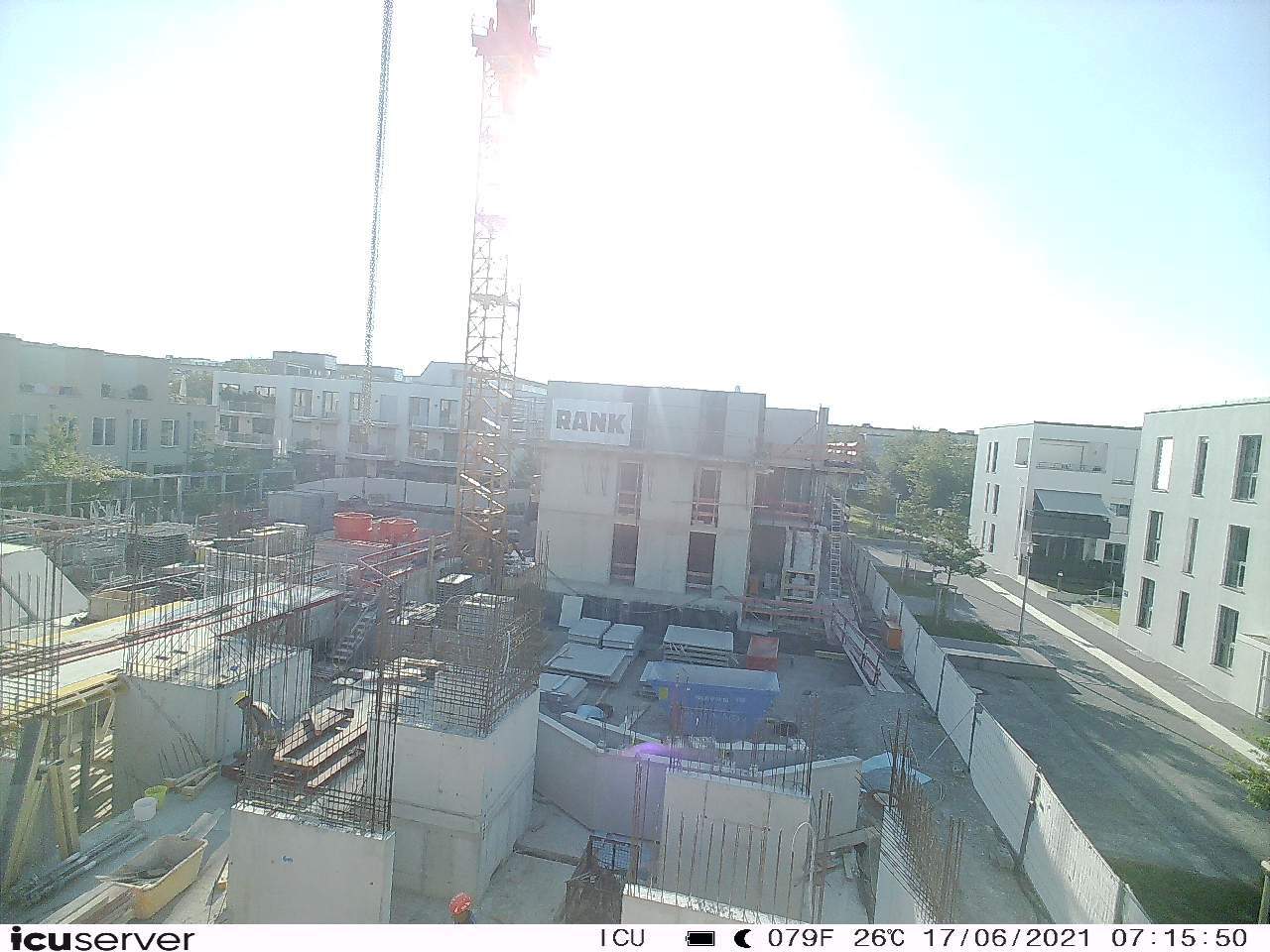 Die Kamera steht am westlichen Ende der Baustelle. Sie blickt nach Osten. Bilder: 26. Februar - 13. August 2021.