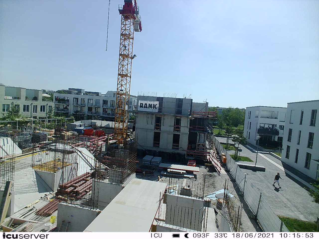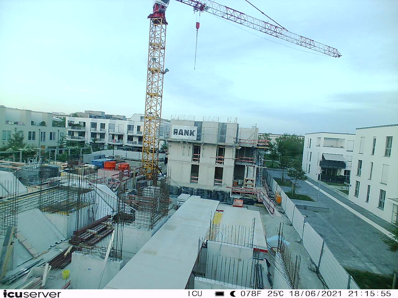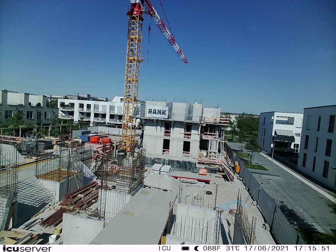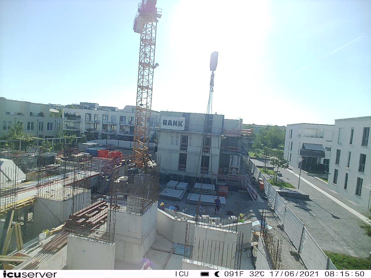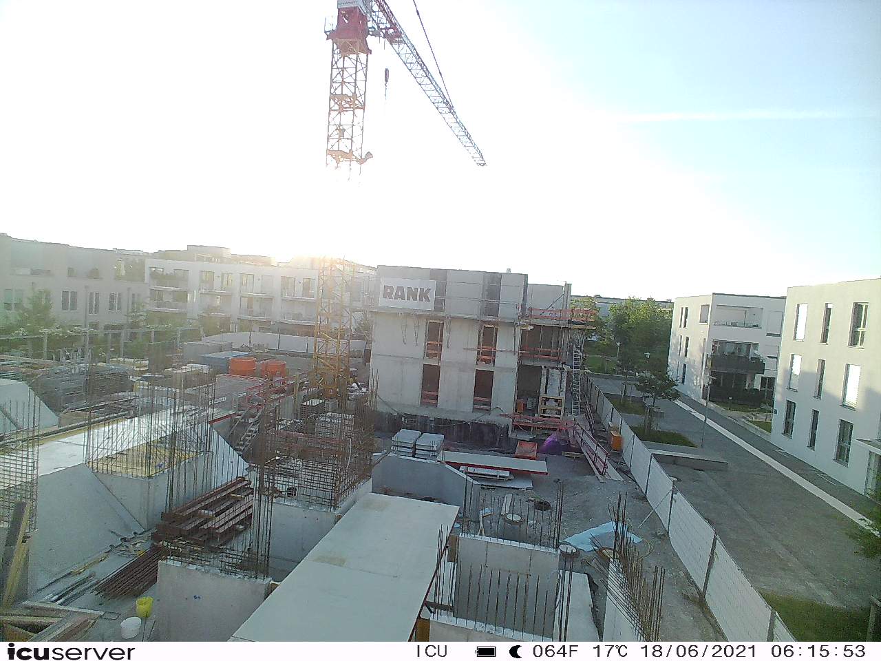 Die Kamera steht am westlichen Ende der Baustelle. Sie blickt nach Osten. Bilder: 26. Februar - 13. August 2021.