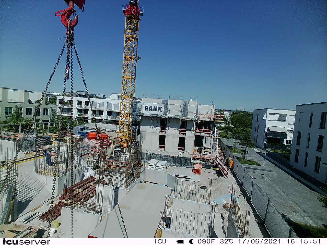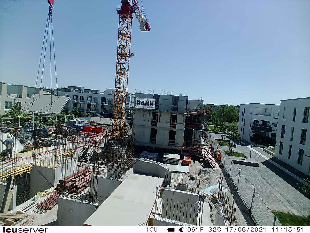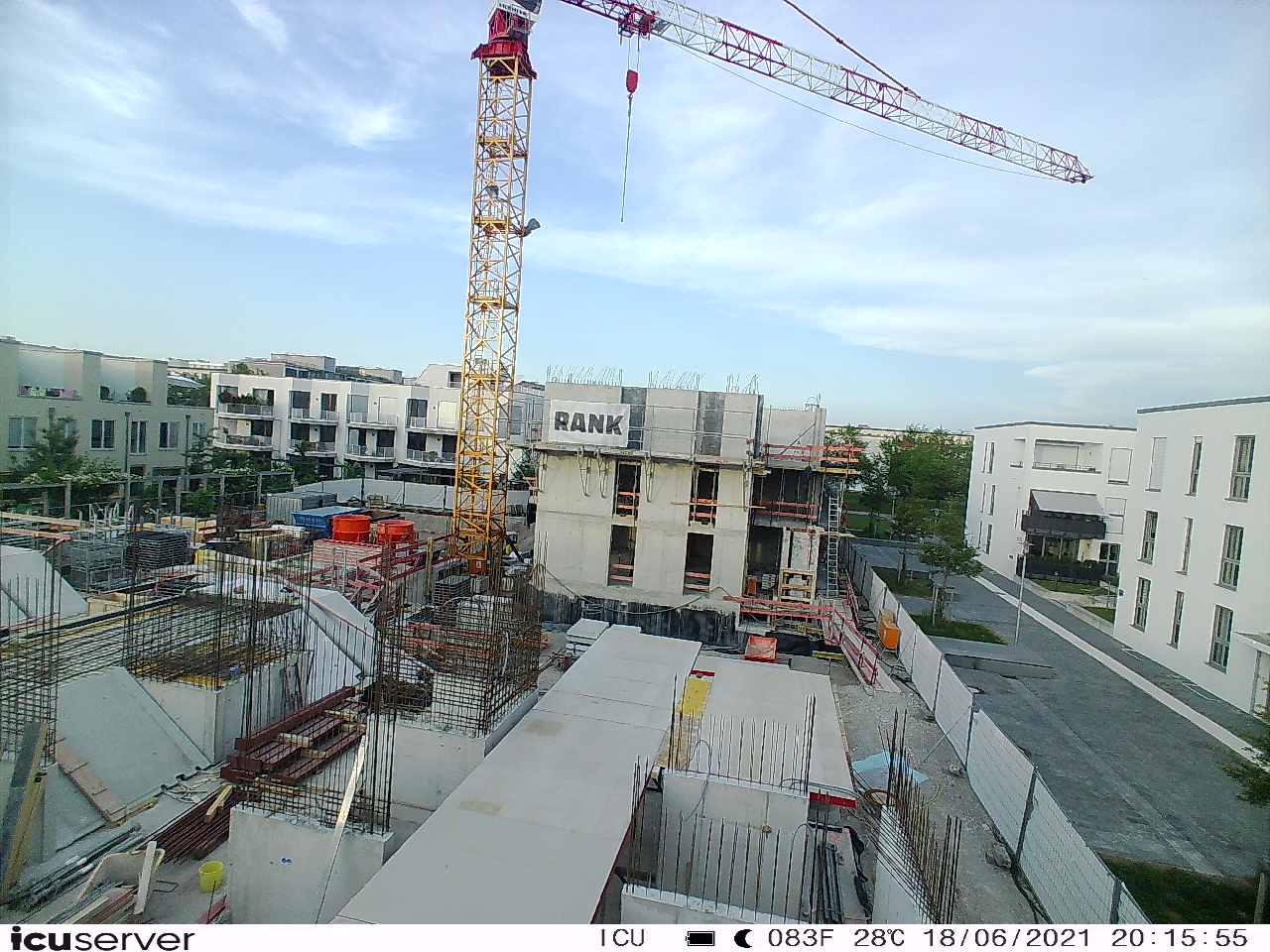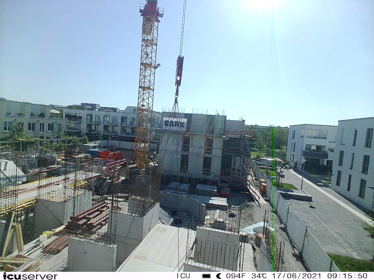 Die Kamera steht am westlichen Ende der Baustelle. Sie blickt nach Osten. Bilder: 26. Februar - 13. August 2021.