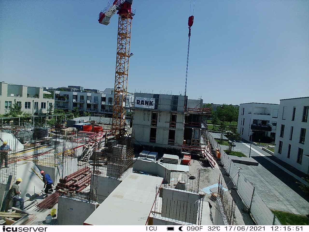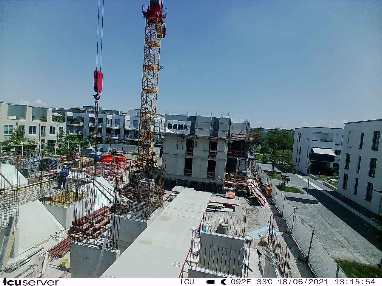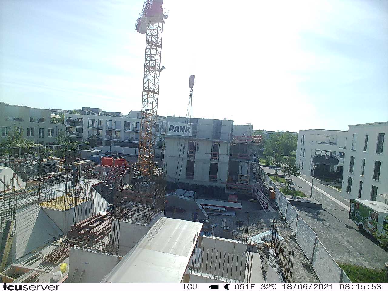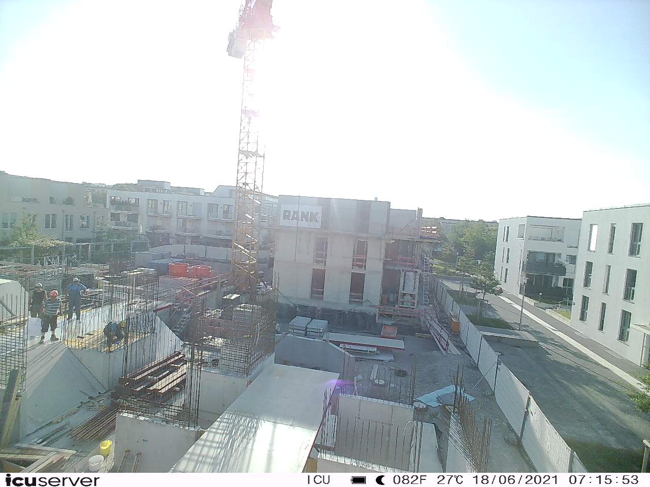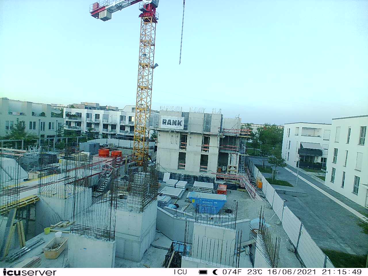 Die Kamera steht am westlichen Ende der Baustelle. Sie blickt nach Osten. Bilder: 26. Februar - 13. August 2021.