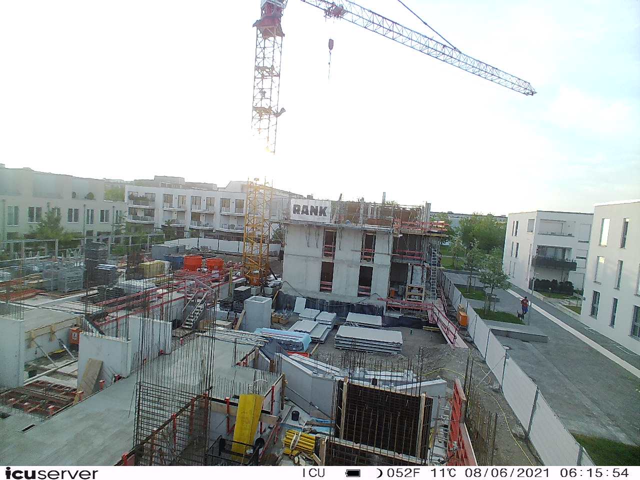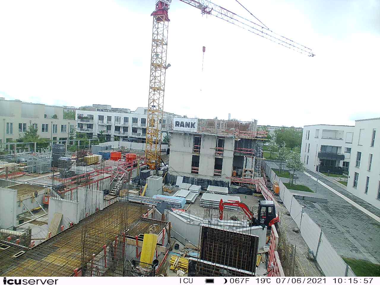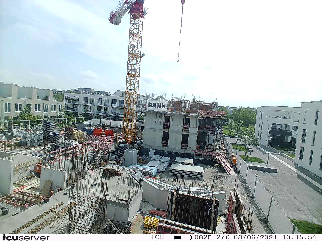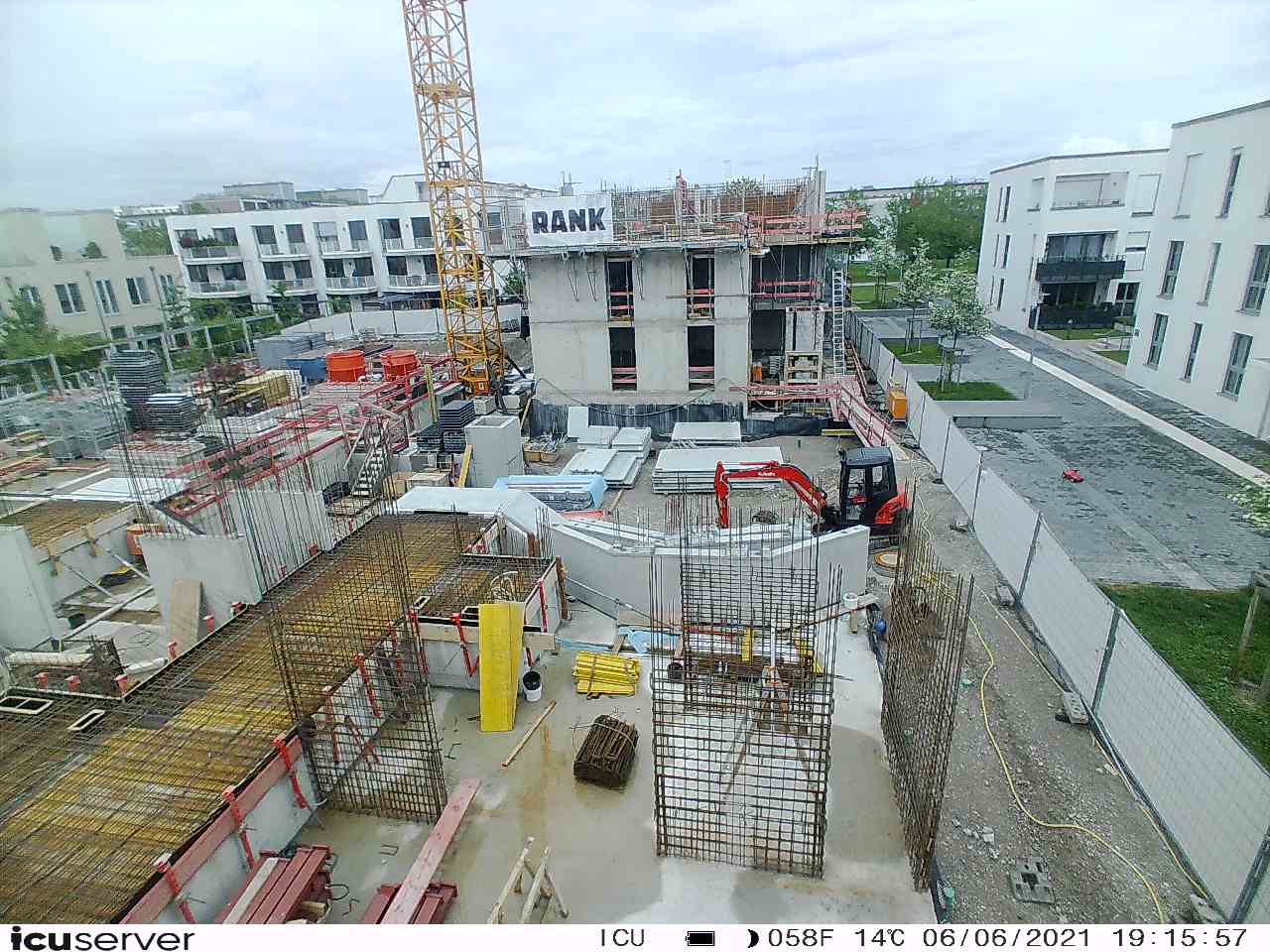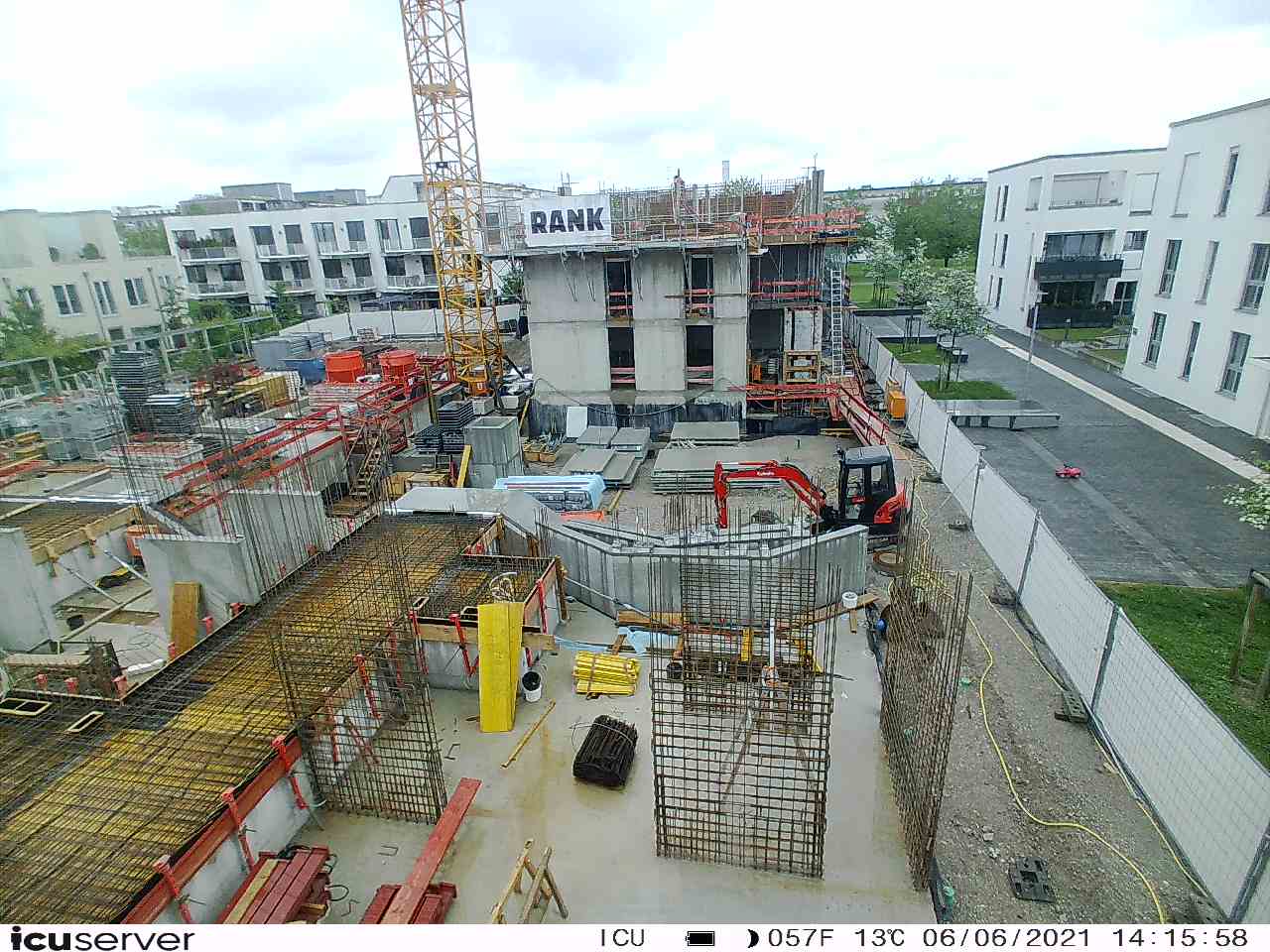 Die Kamera steht am westlichen Ende der Baustelle. Sie blickt nach Osten. Bilder: 26. Februar - 13. August 2021.