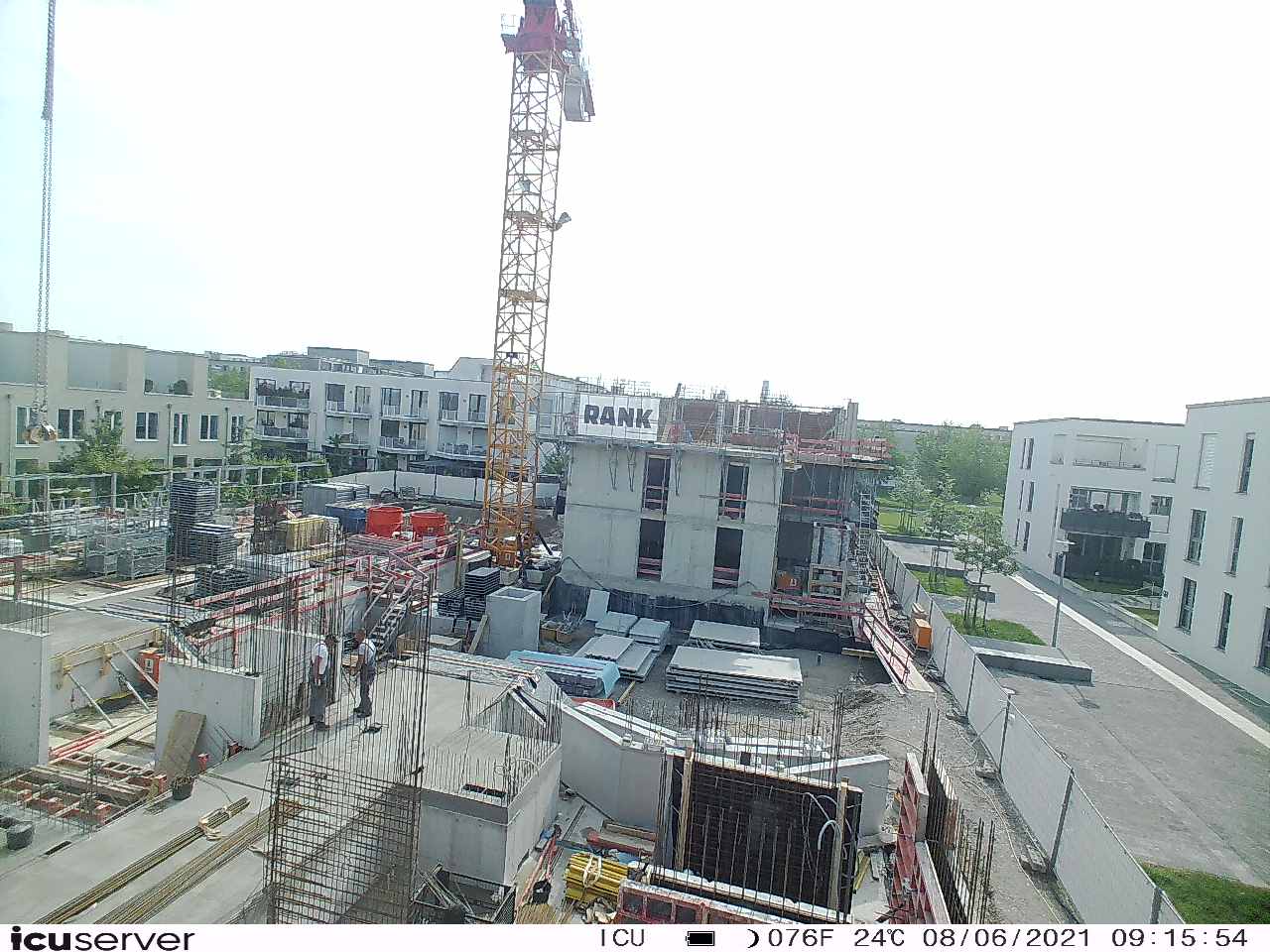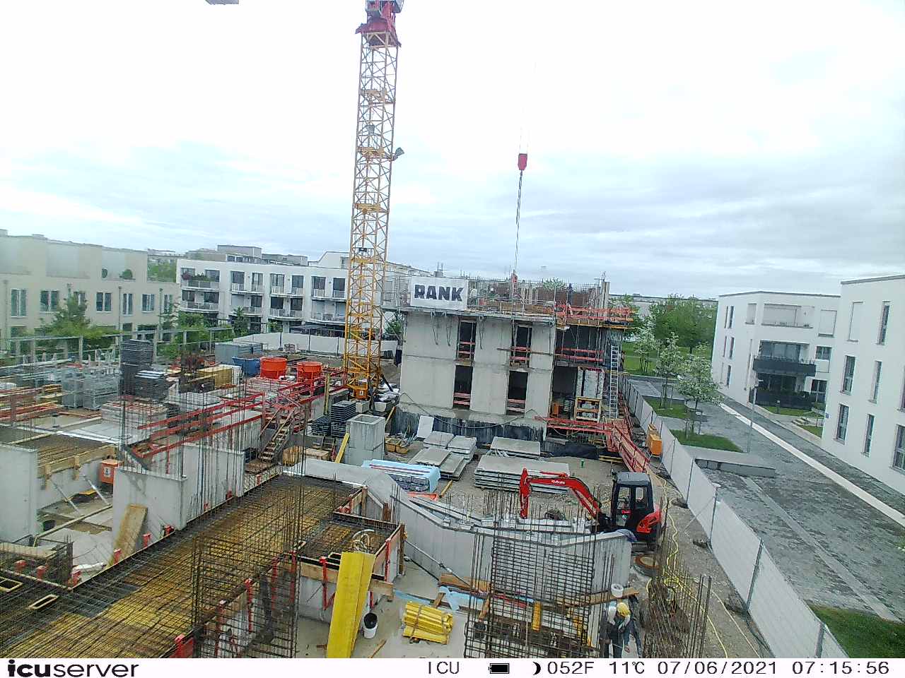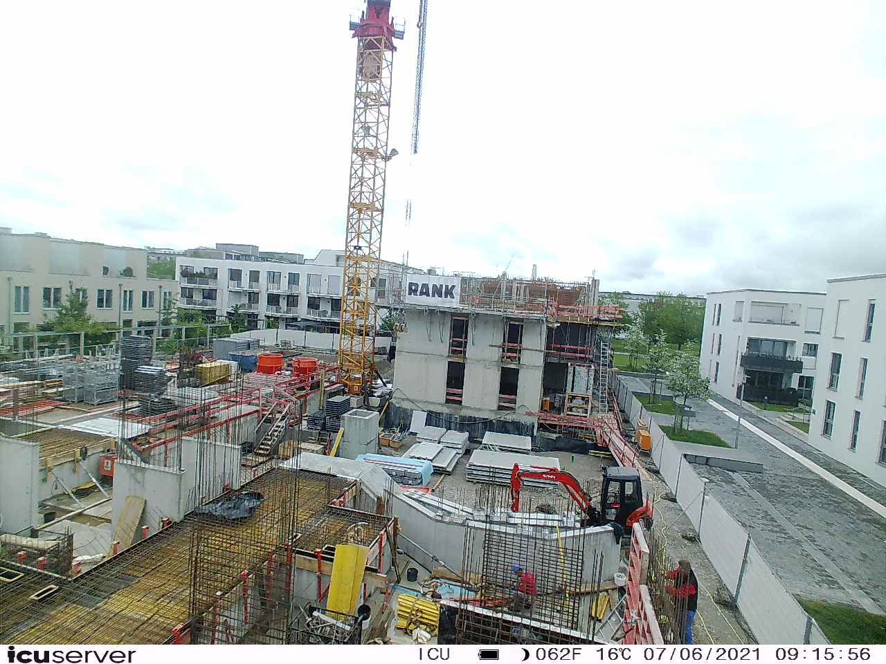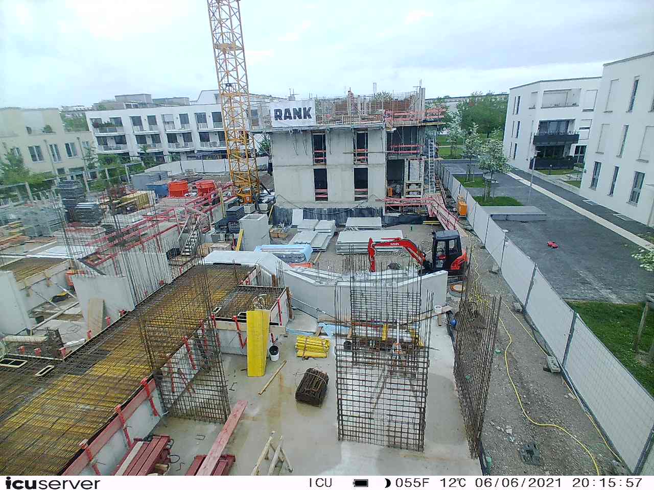 Die Kamera steht am westlichen Ende der Baustelle. Sie blickt nach Osten. Bilder: 26. Februar - 13. August 2021.