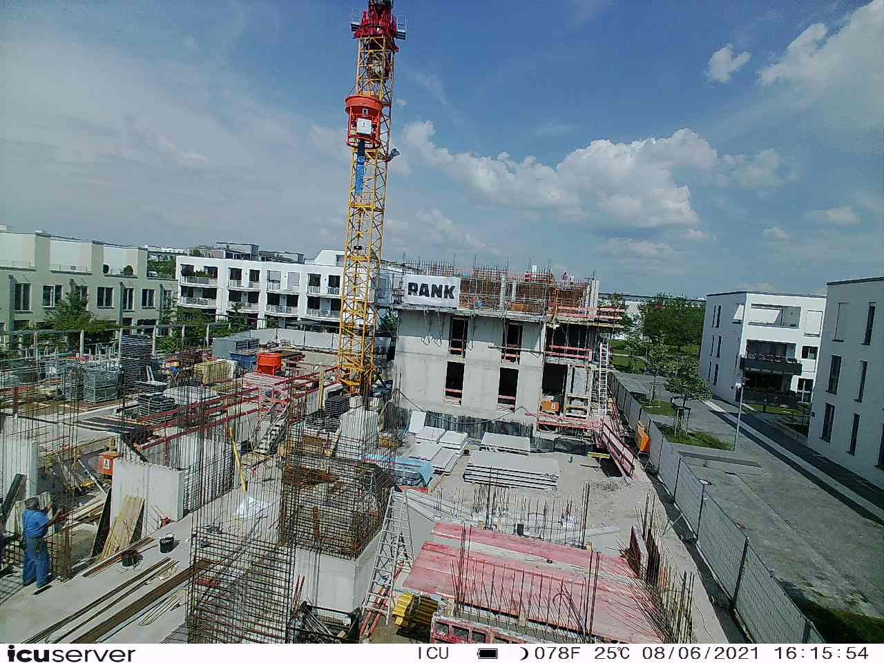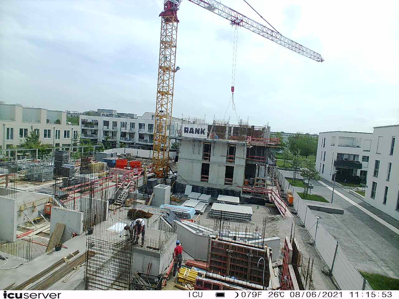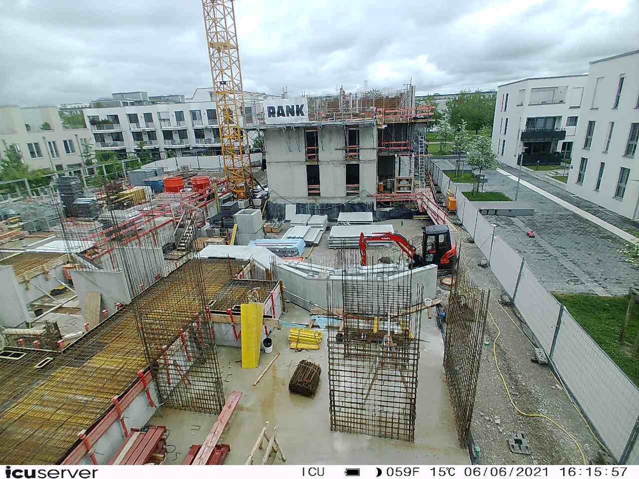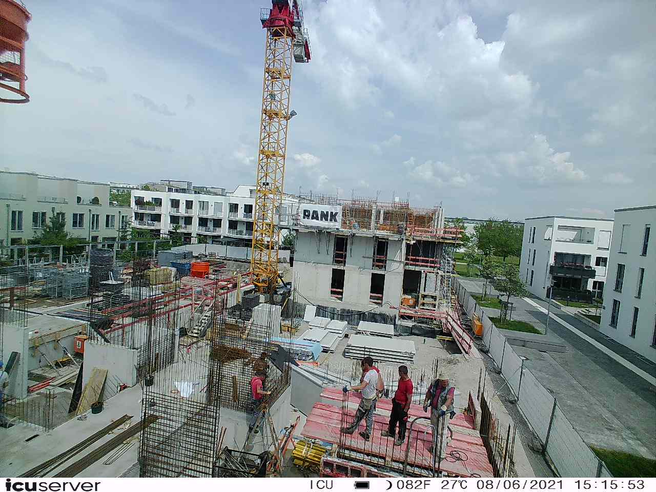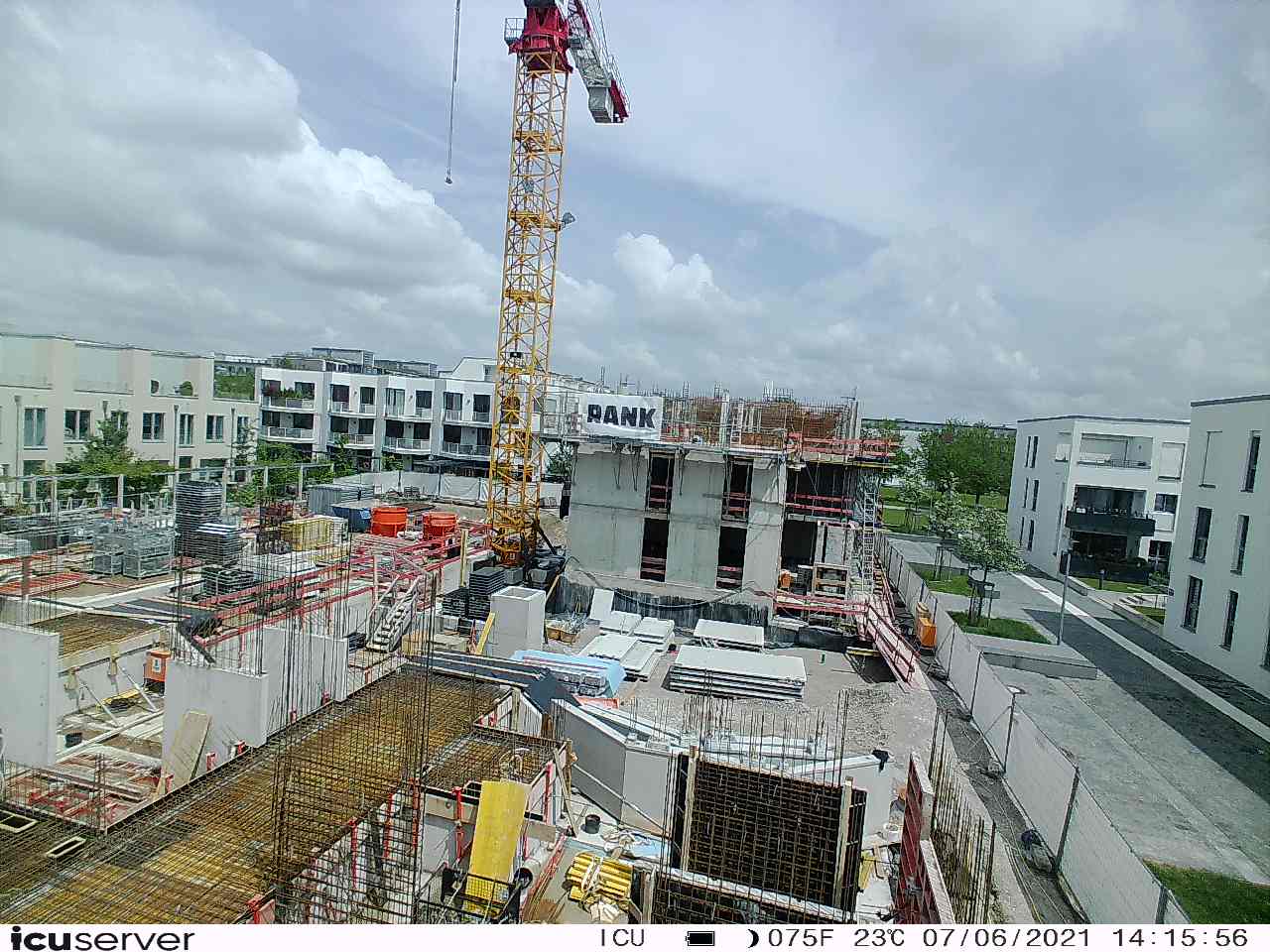Die Kamera steht am westlichen Ende der Baustelle. Sie blickt nach Osten. Bilder: 26. Februar - 13. August 2021.