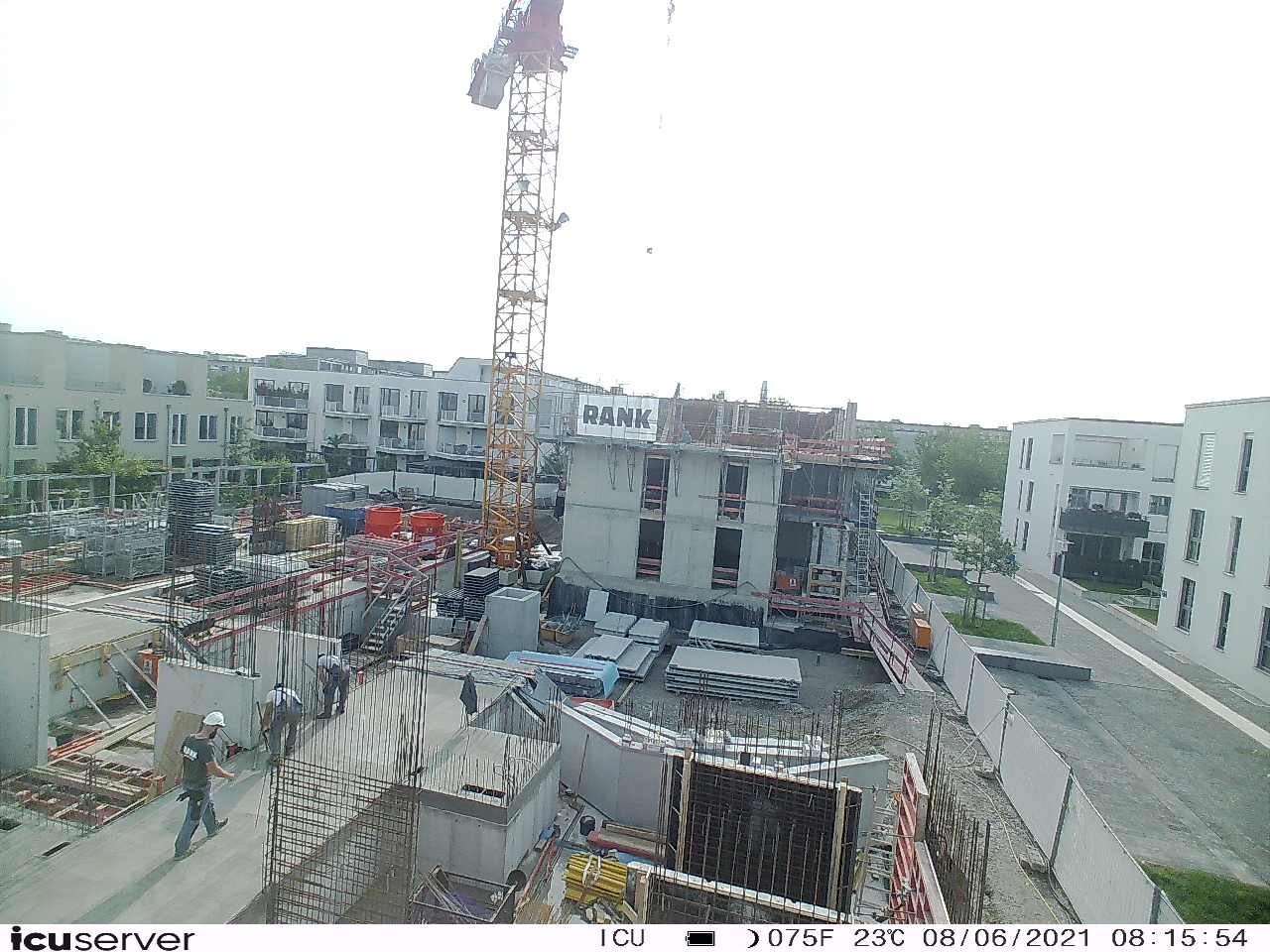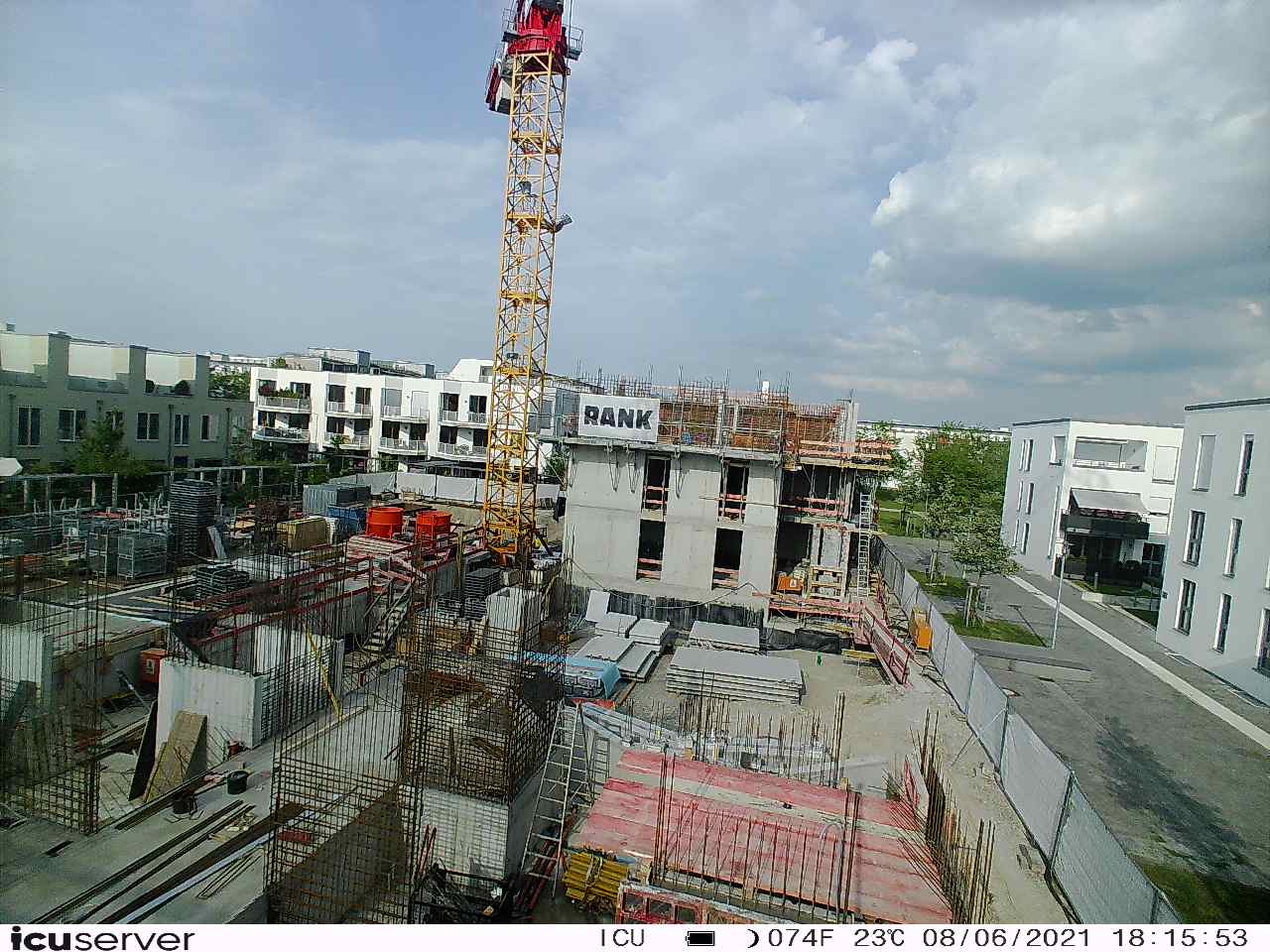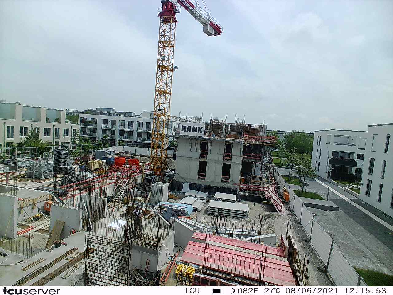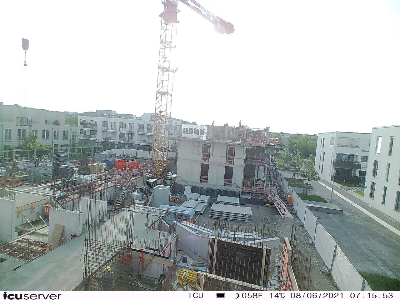 Die Kamera steht am westlichen Ende der Baustelle. Sie blickt nach Osten. Bilder: 26. Februar - 13. August 2021.
