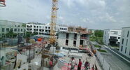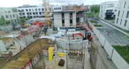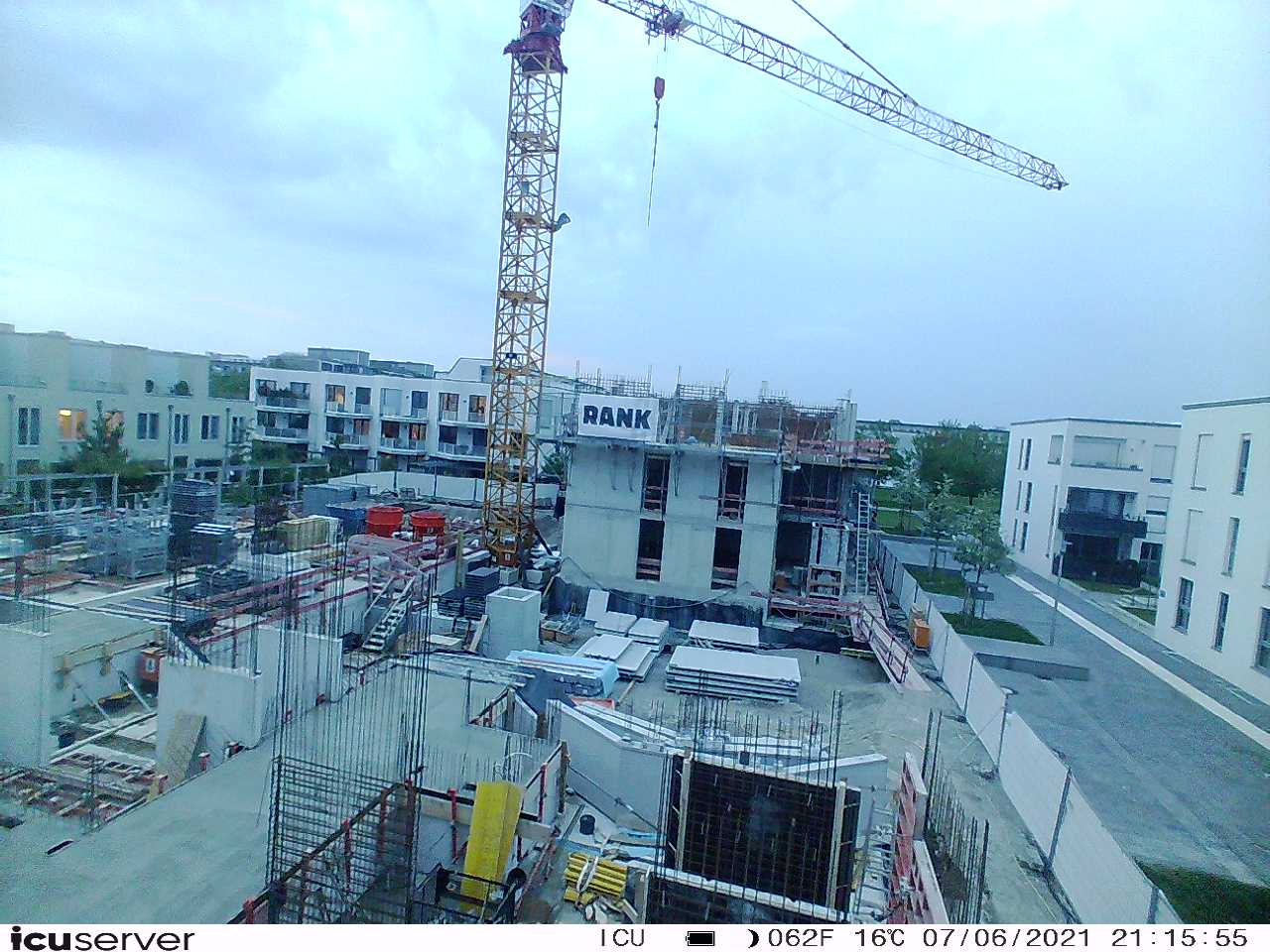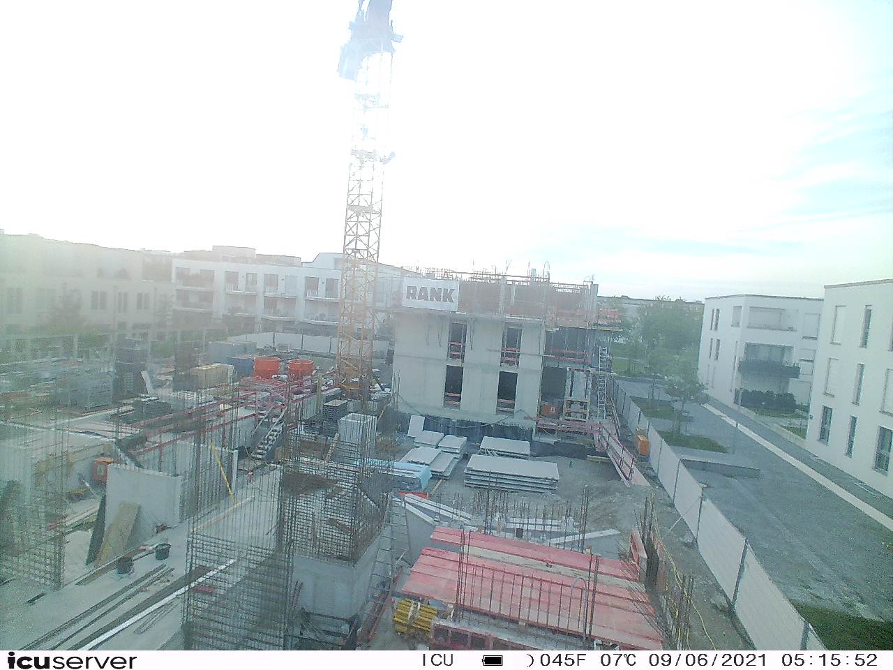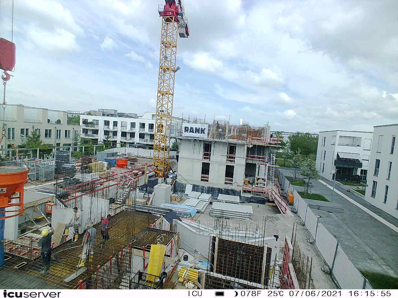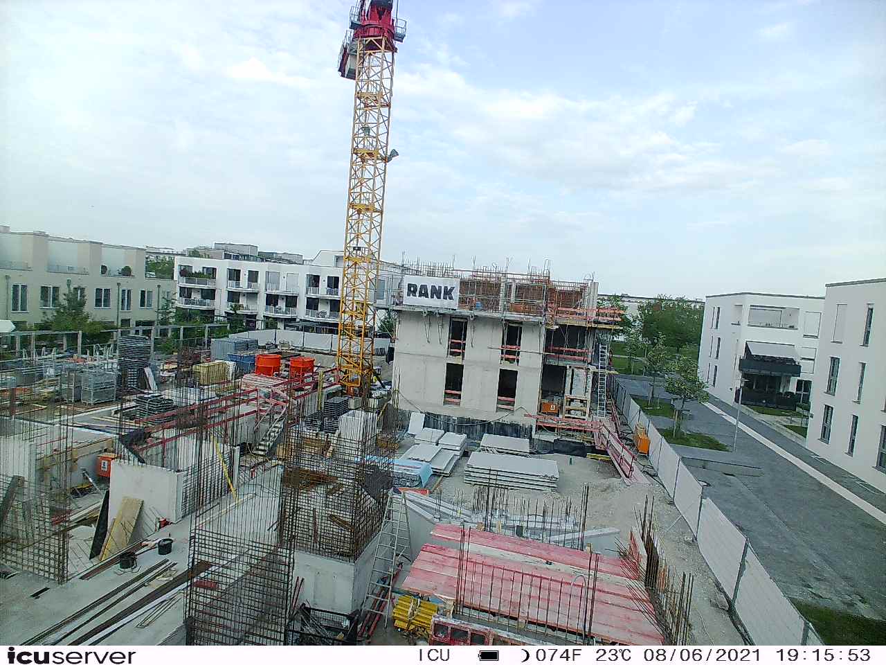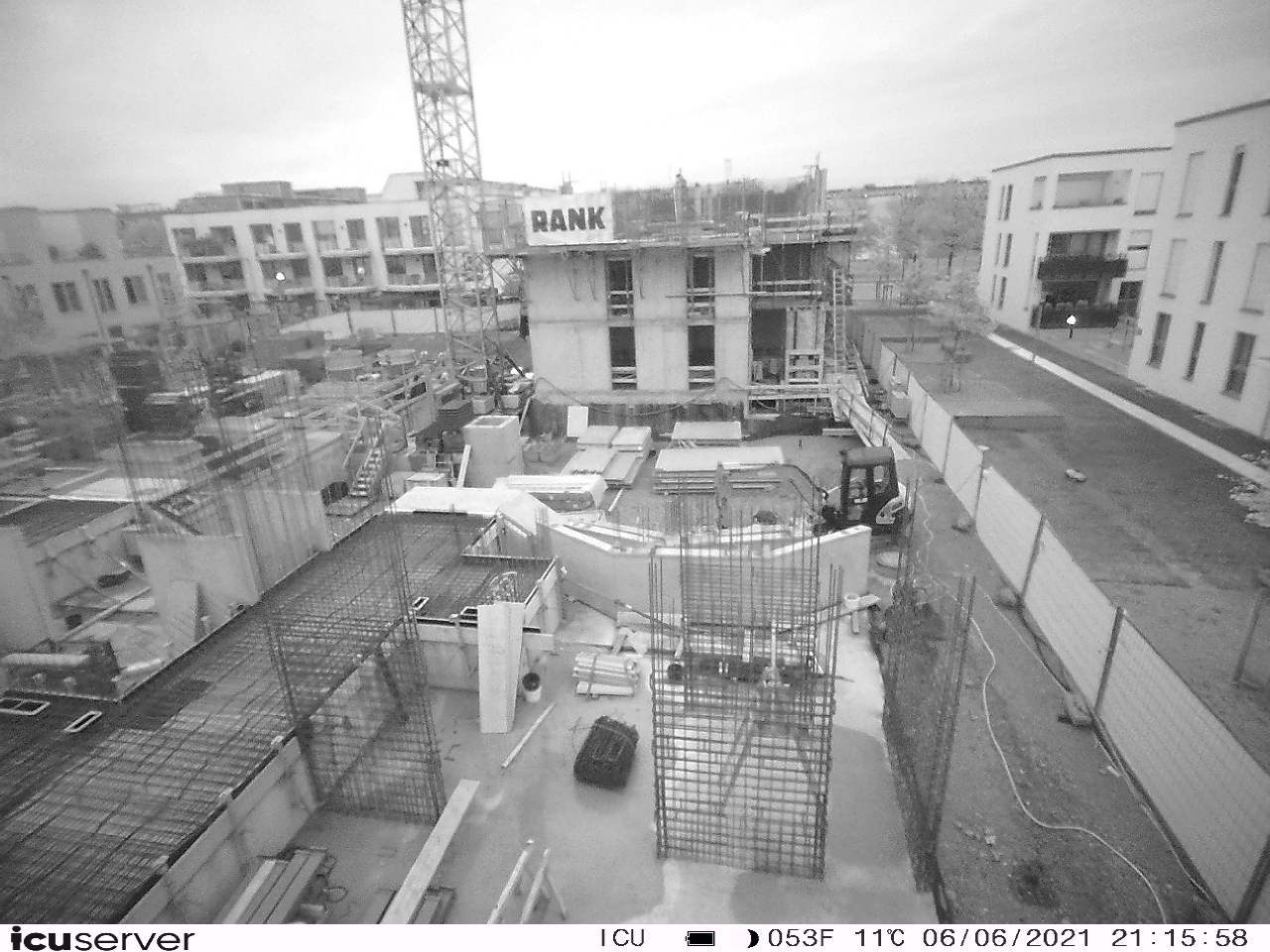 Die Kamera steht am westlichen Ende der Baustelle. Sie blickt nach Osten. Bilder: 26. Februar - 13. August 2021.
