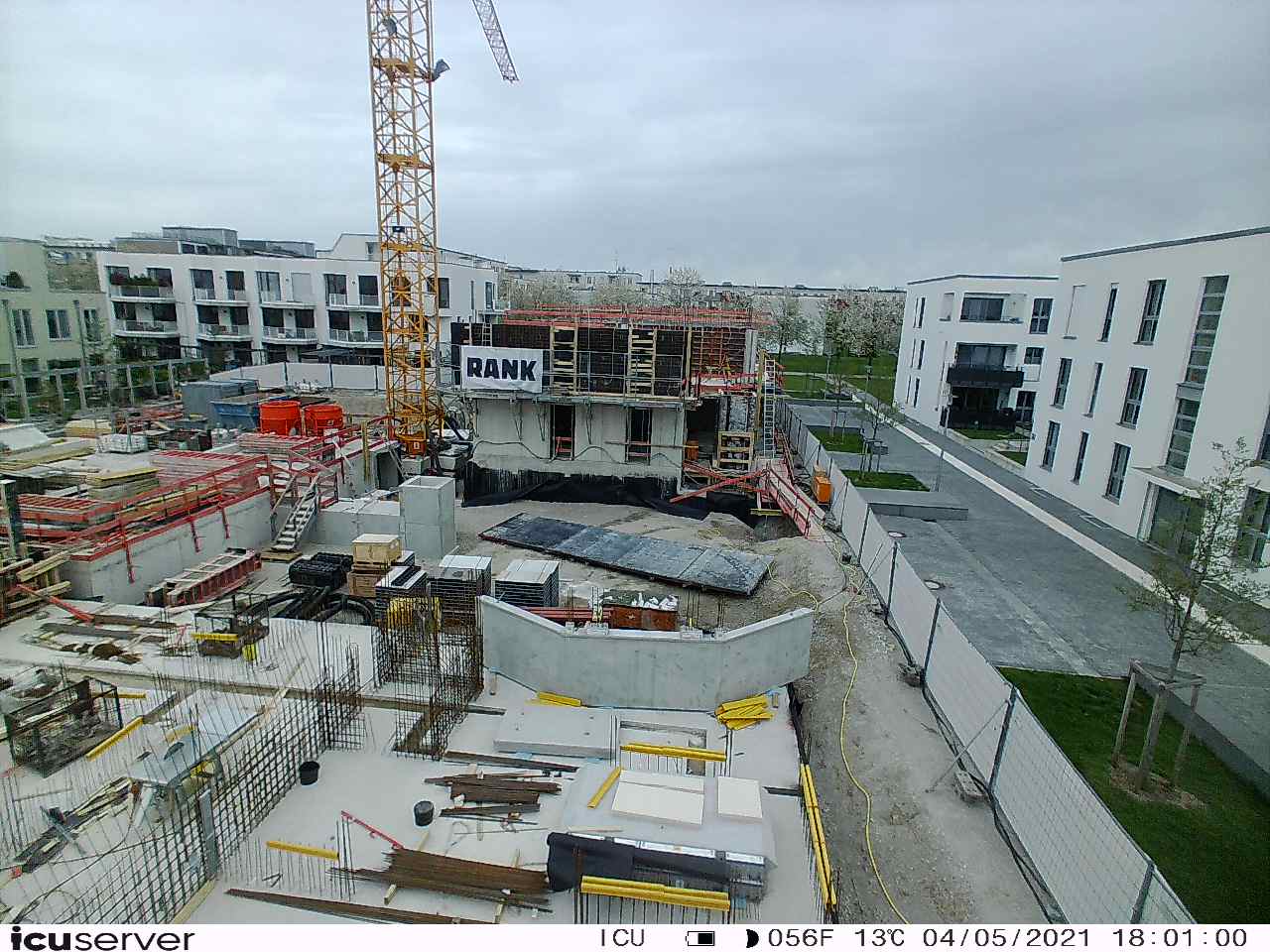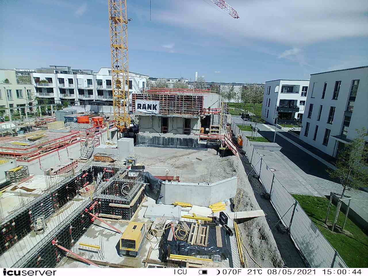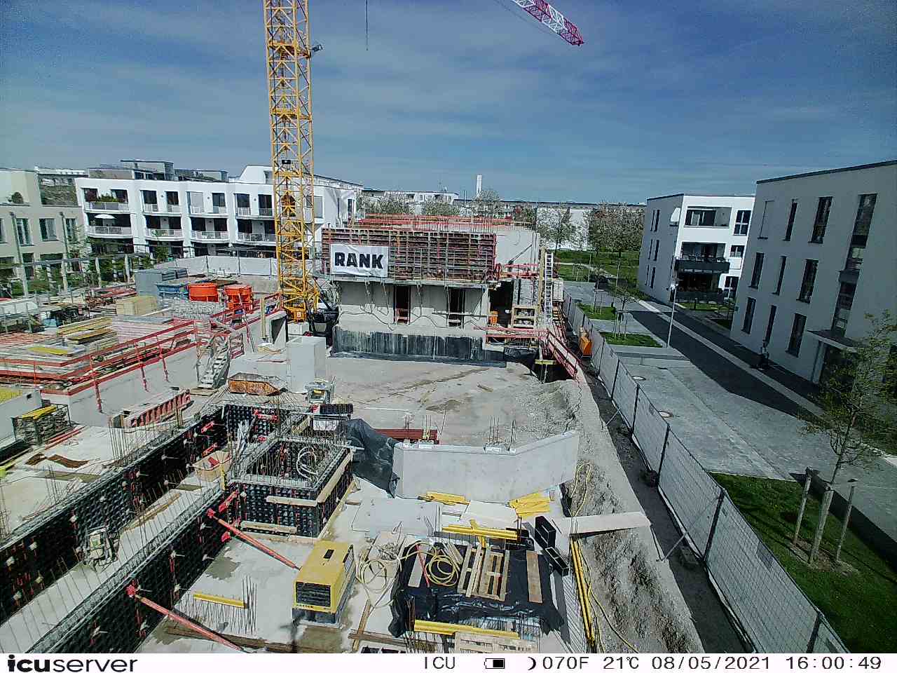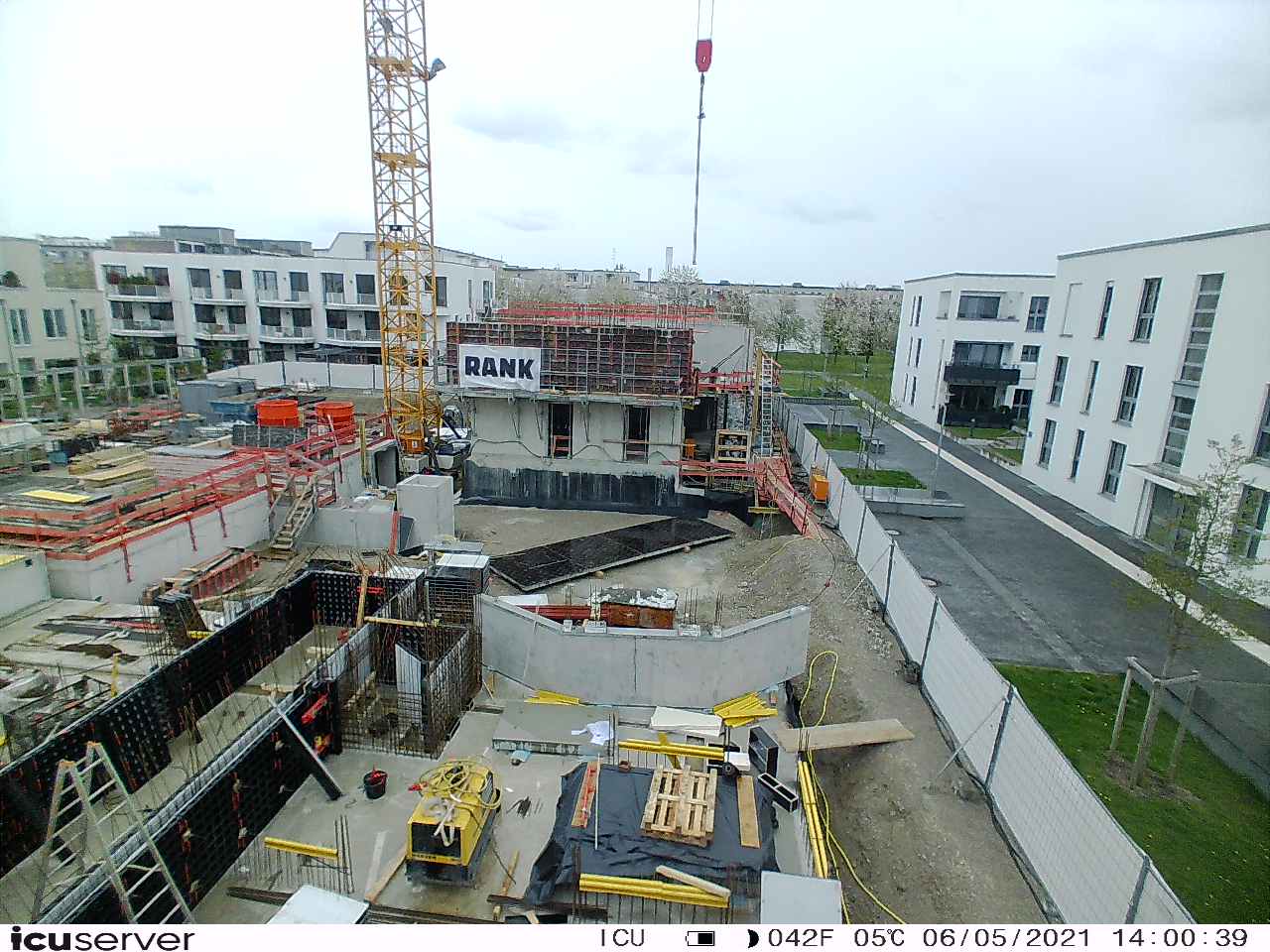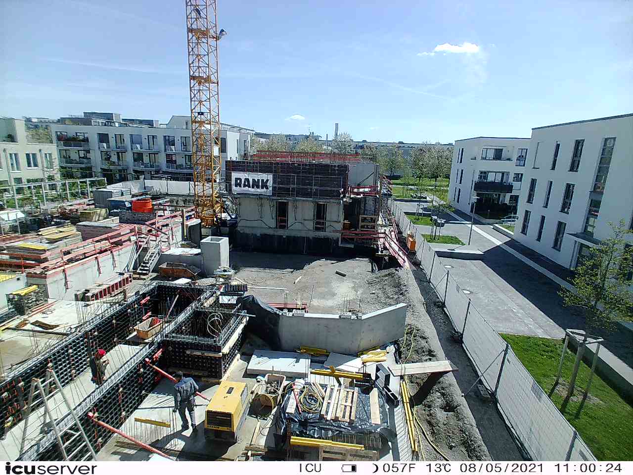 Die Kamera steht am westlichen Ende der Baustelle. Sie blickt nach Osten. Bilder: 26. Februar - 13. August 2021.