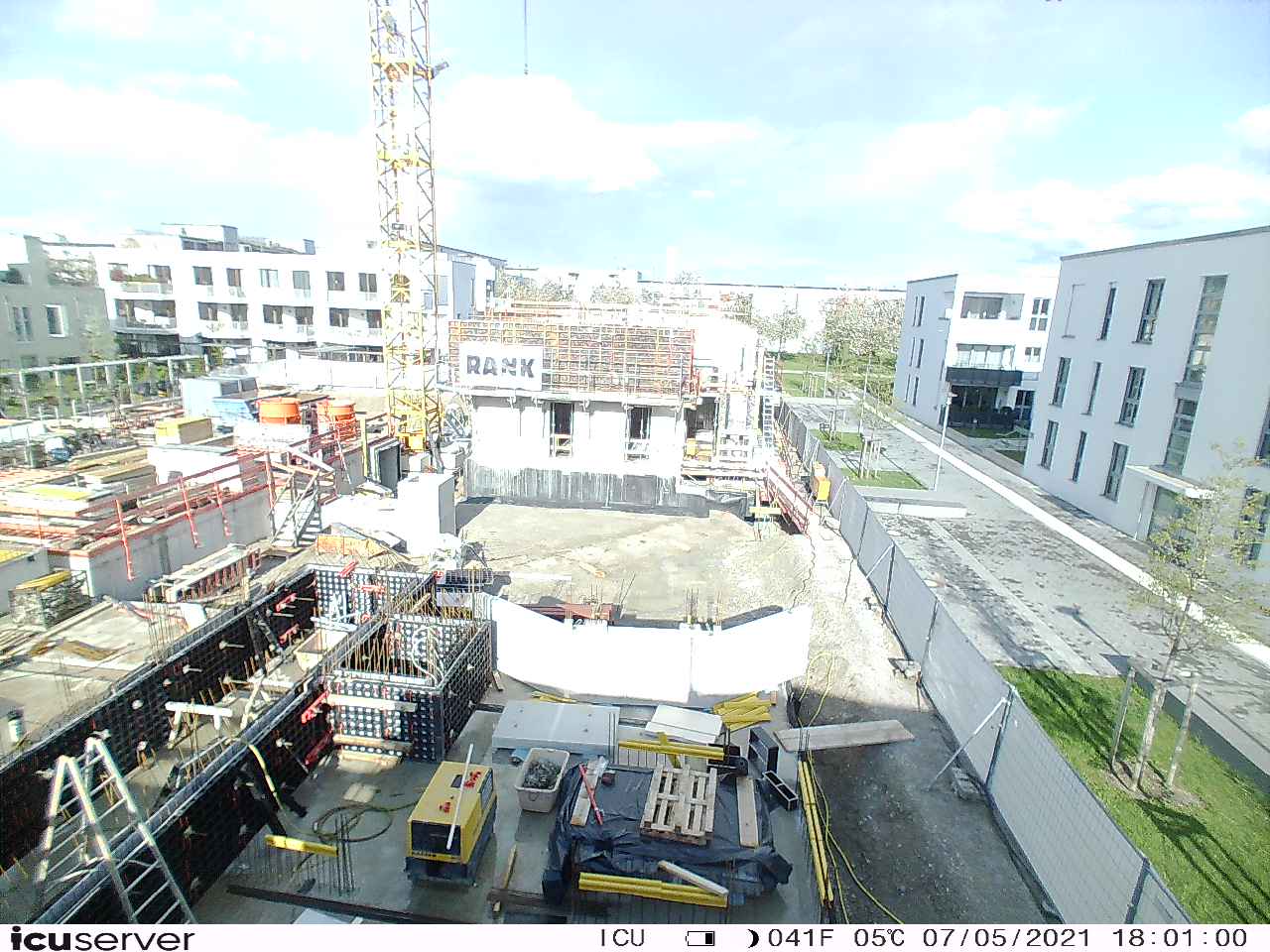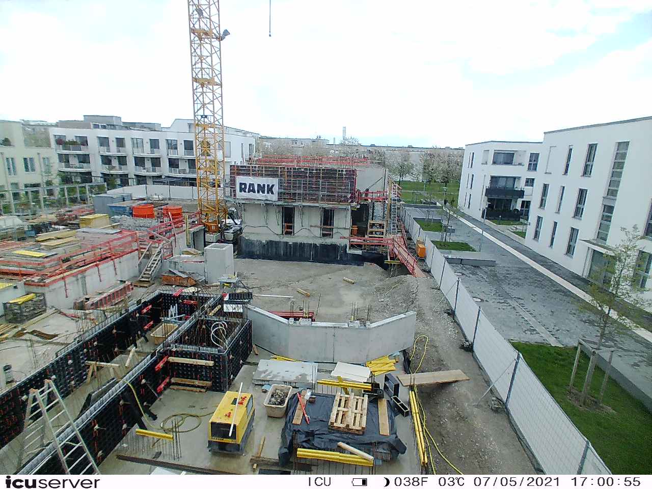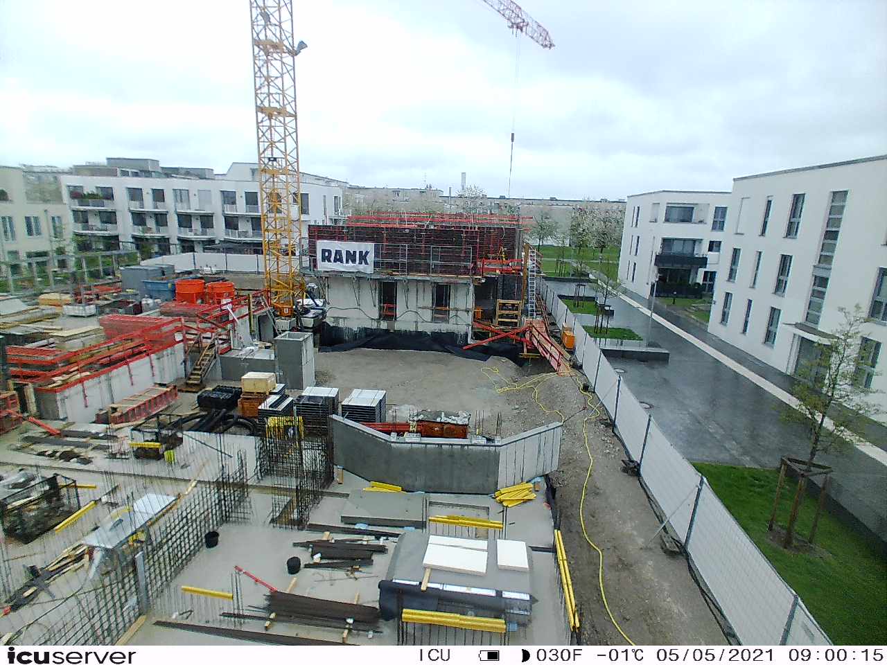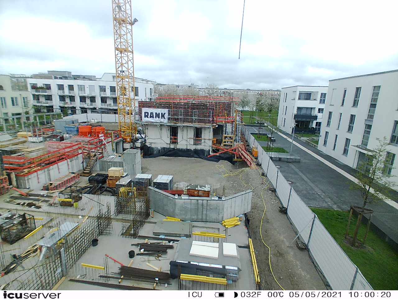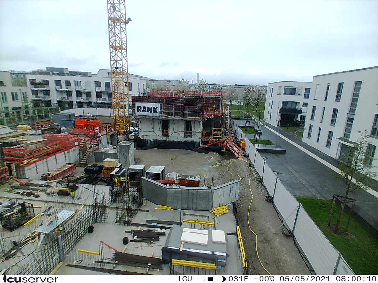 Die Kamera steht am westlichen Ende der Baustelle. Sie blickt nach Osten. Bilder: 26. Februar - 13. August 2021.