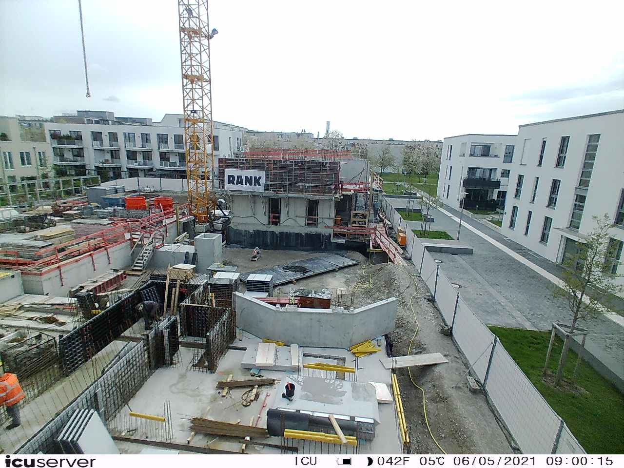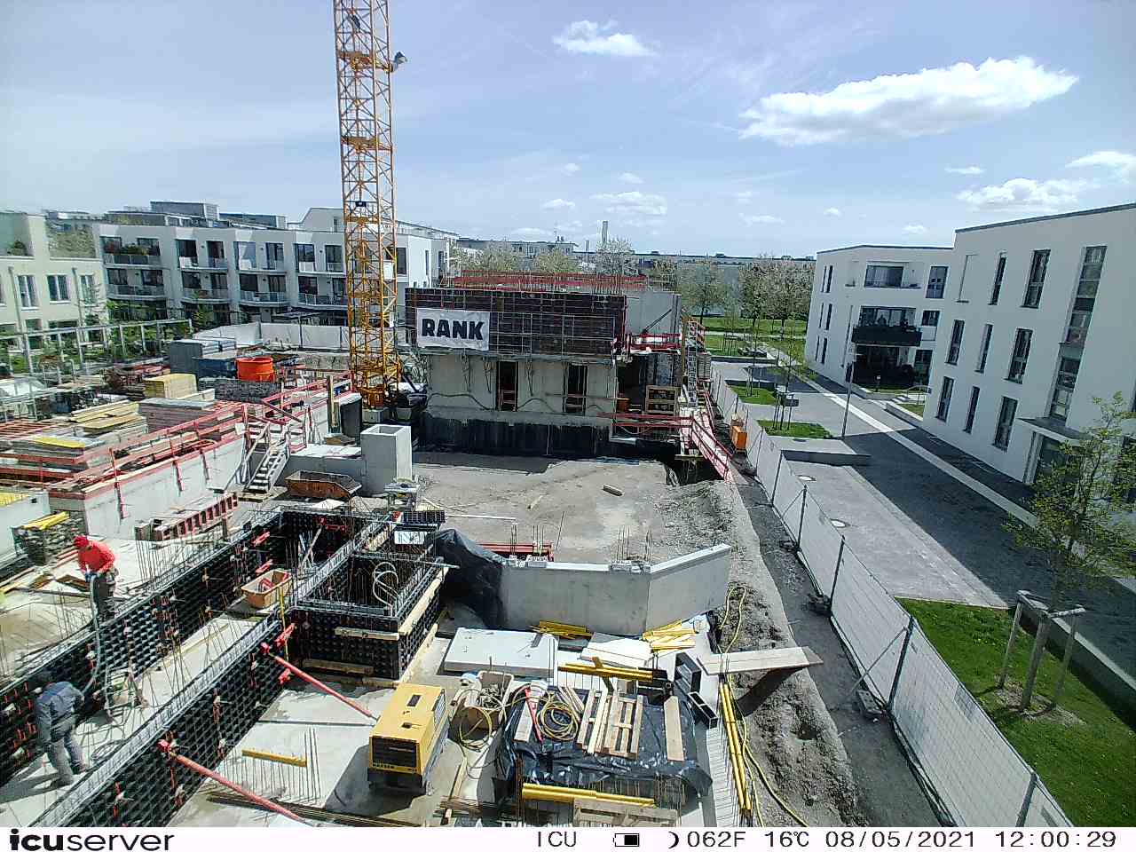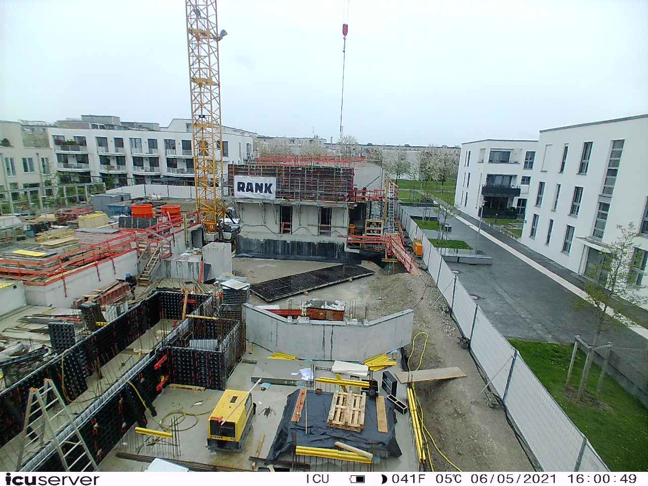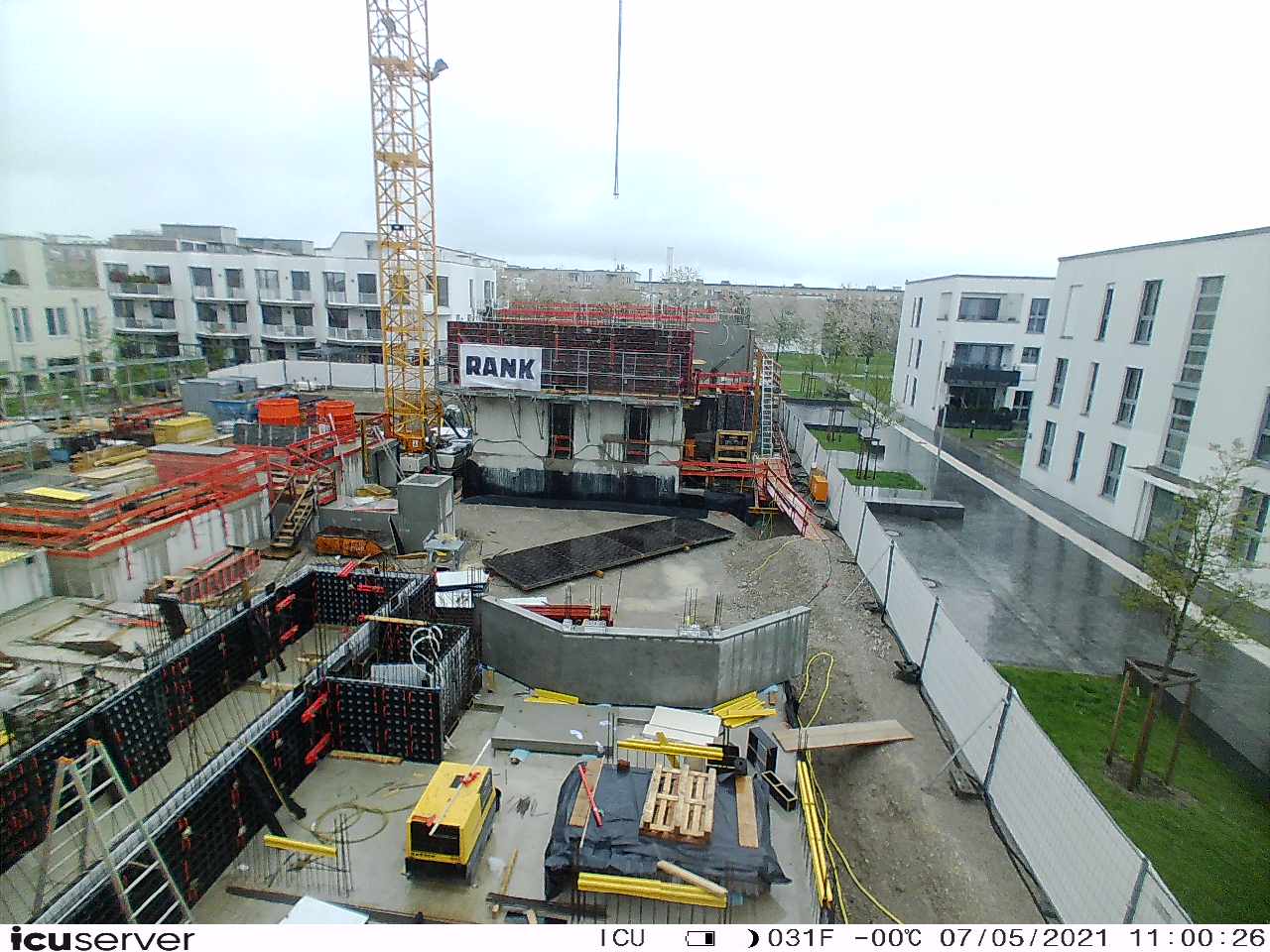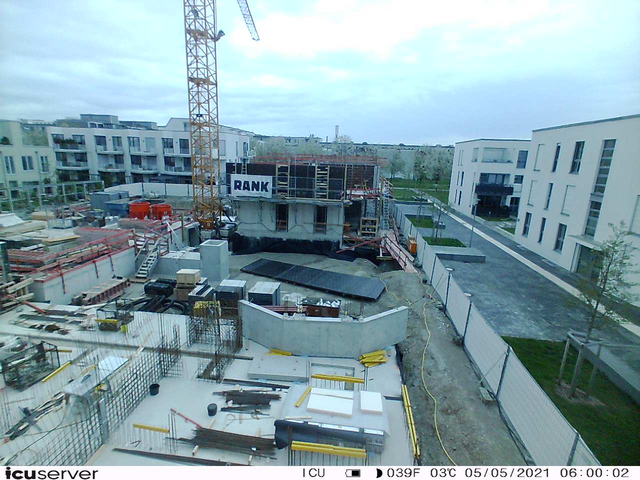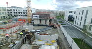 Die Kamera steht am westlichen Ende der Baustelle. Sie blickt nach Osten. Bilder: 26. Februar - 13. August 2021.