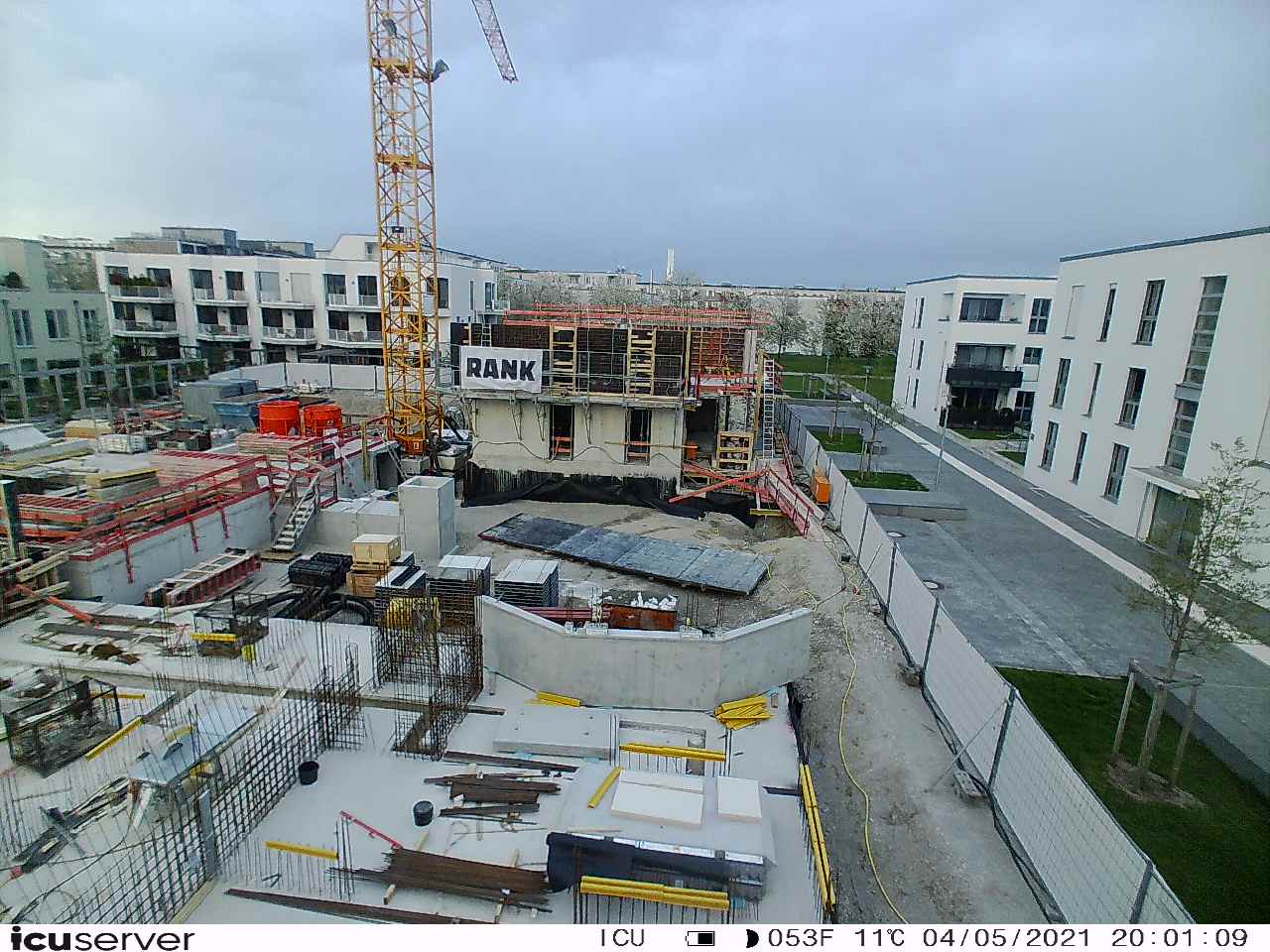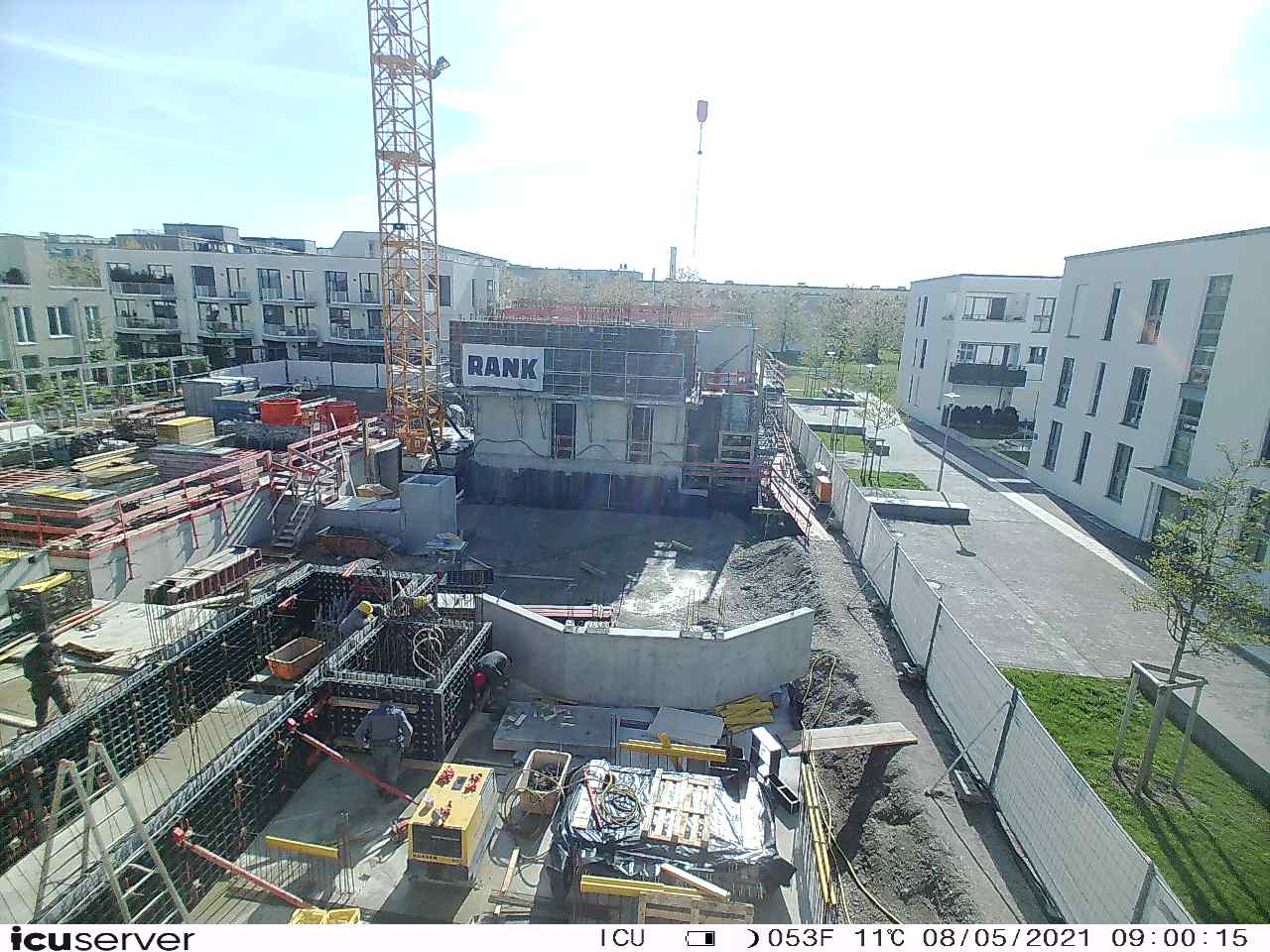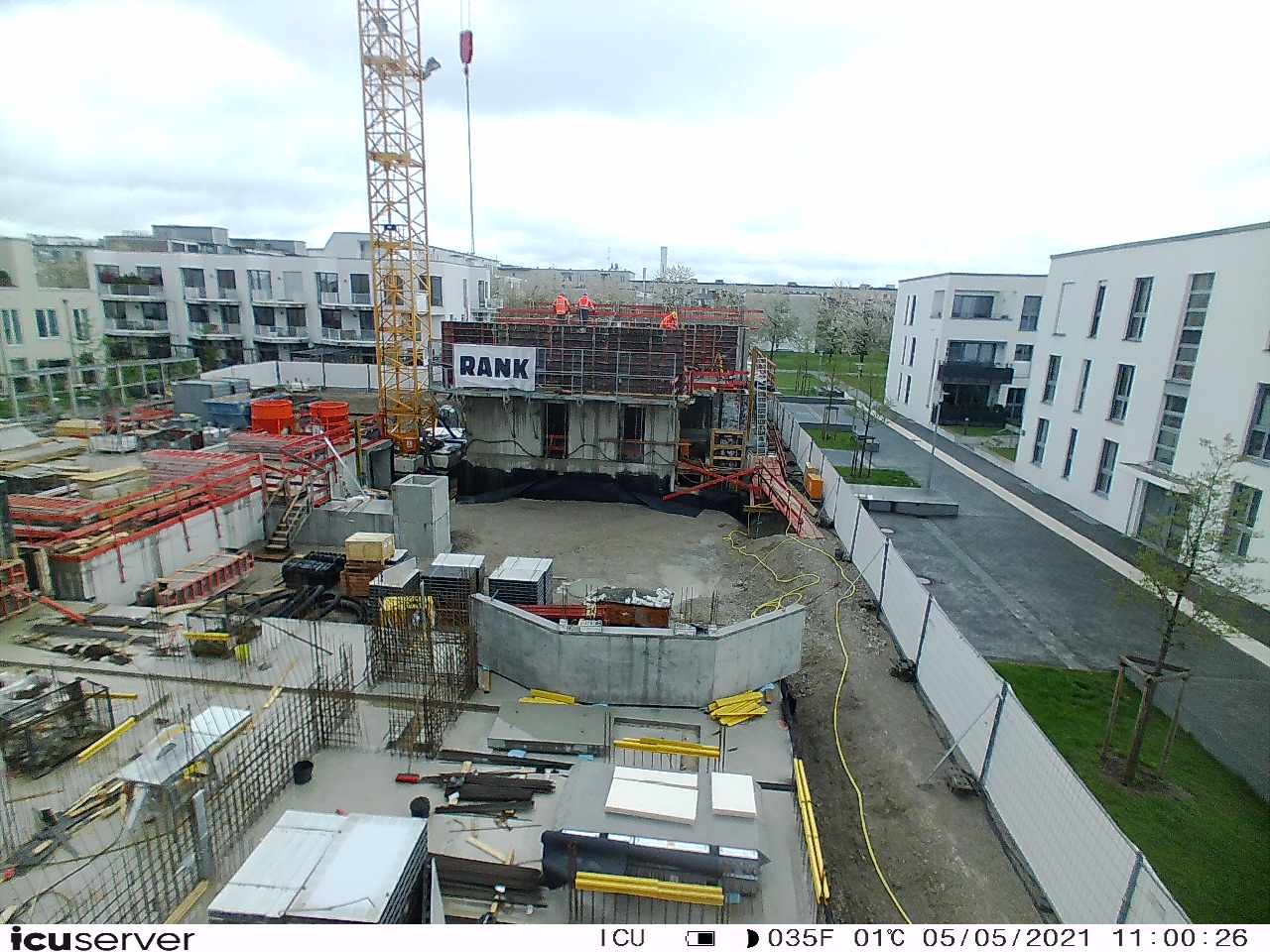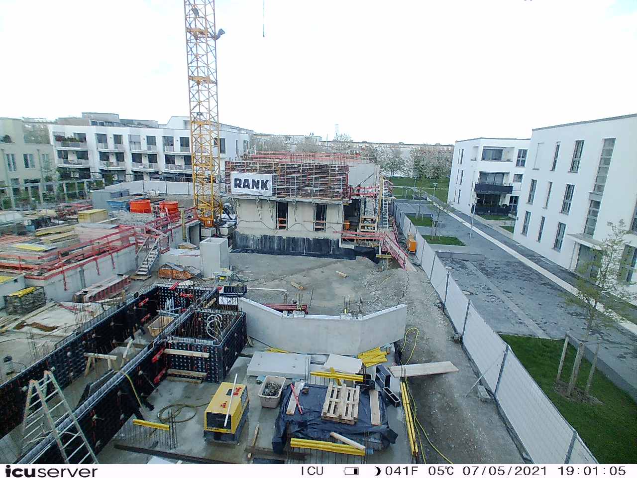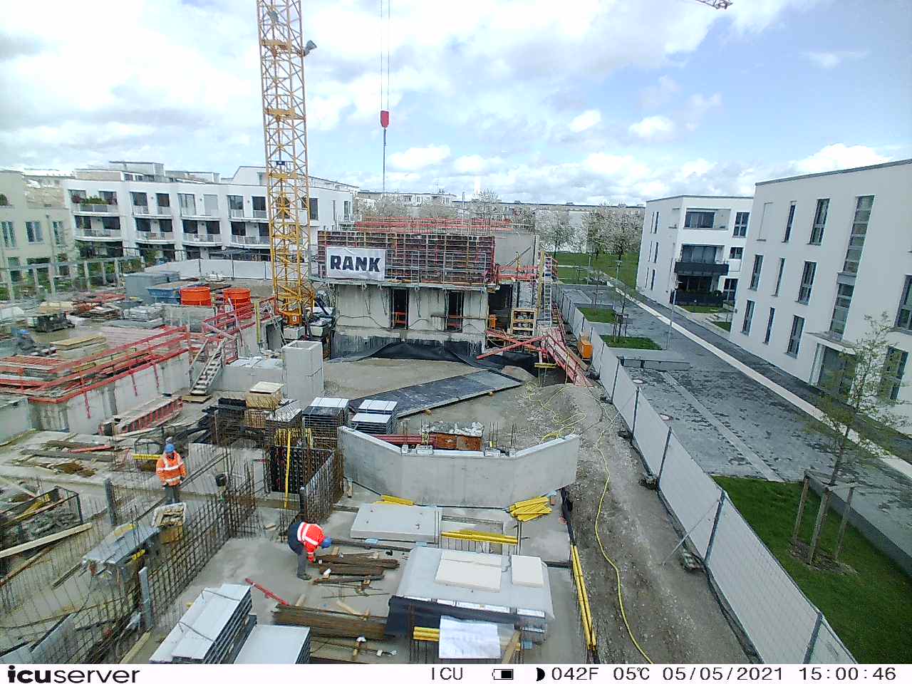 Die Kamera steht am westlichen Ende der Baustelle. Sie blickt nach Osten. Bilder: 26. Februar - 13. August 2021.