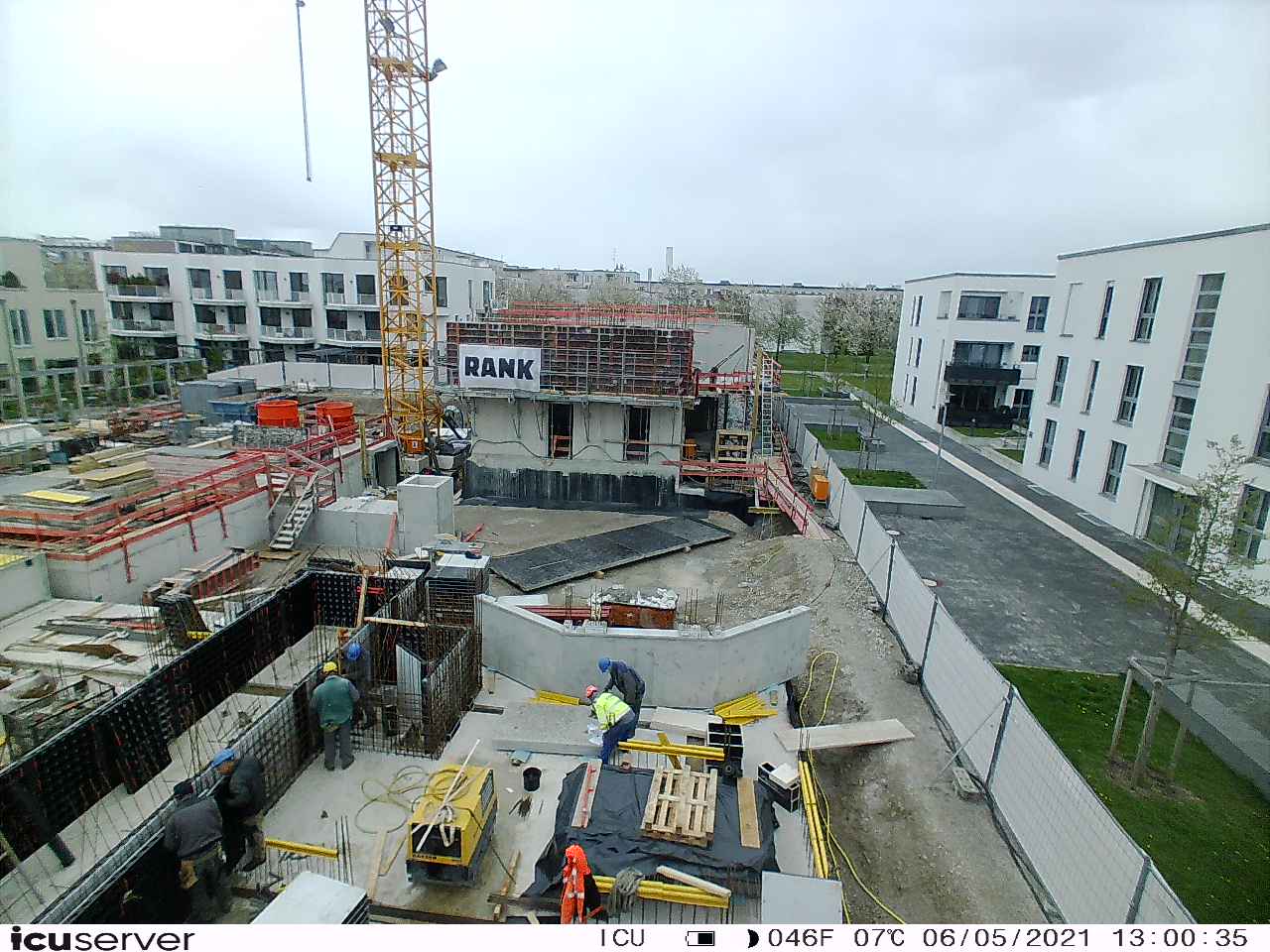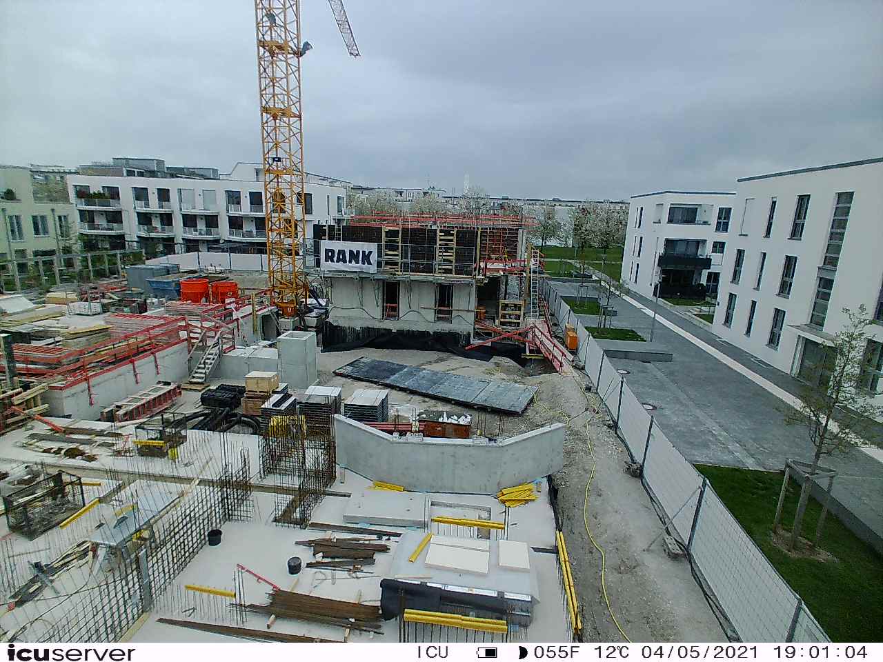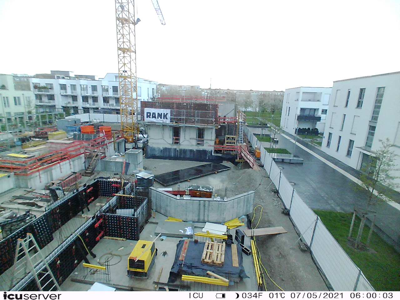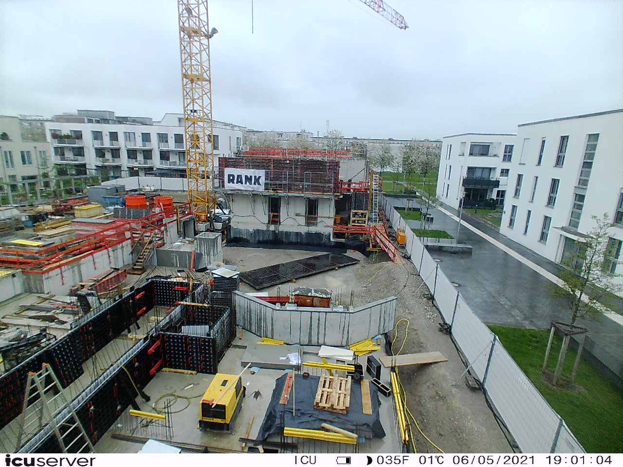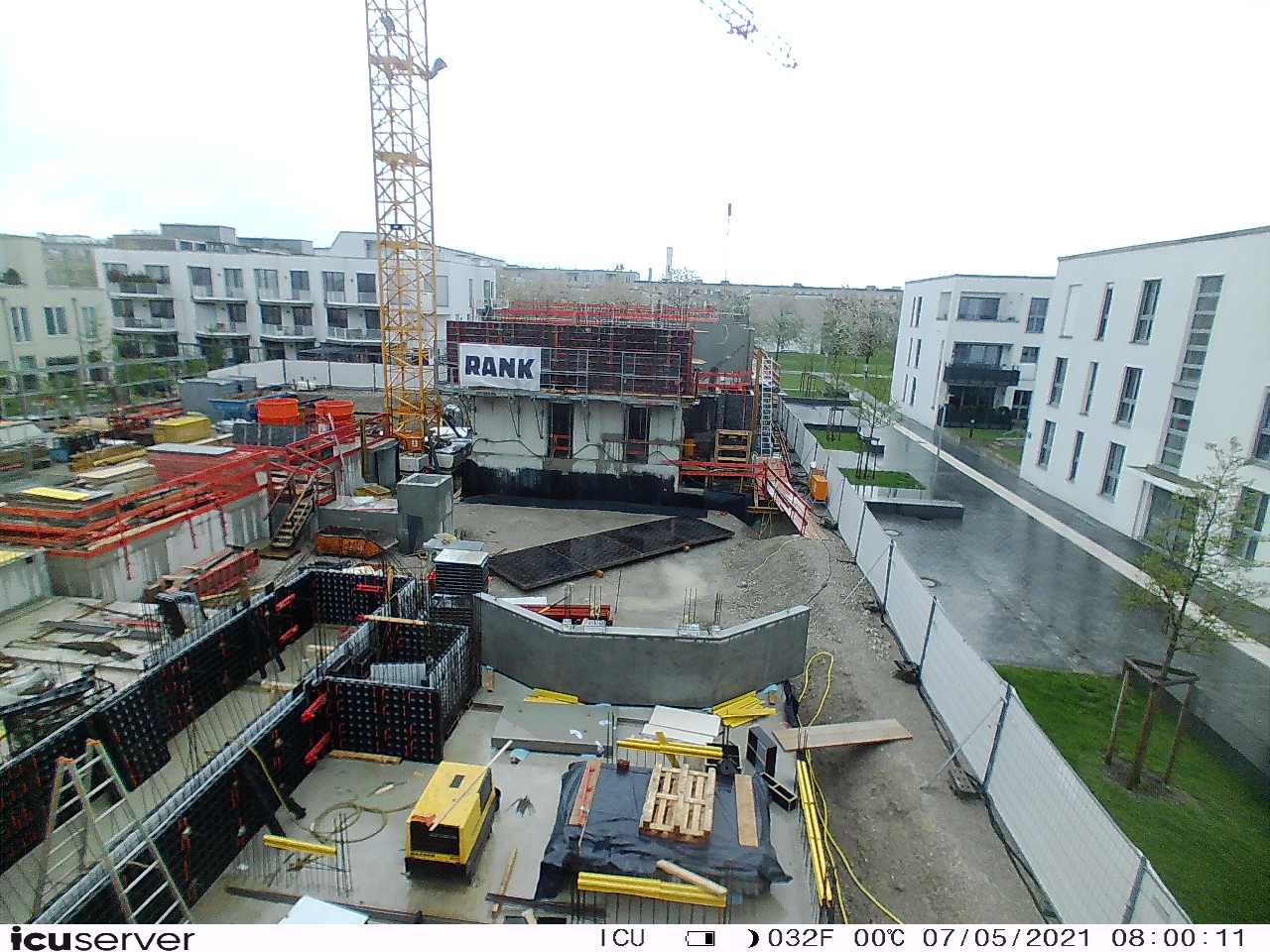 Die Kamera steht am westlichen Ende der Baustelle. Sie blickt nach Osten. Bilder: 26. Februar - 13. August 2021.