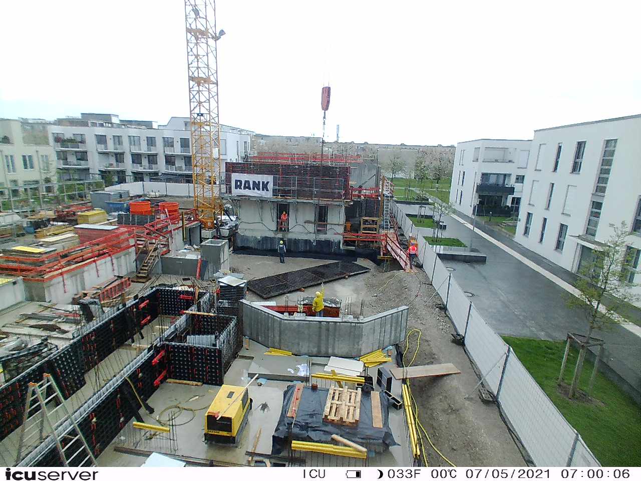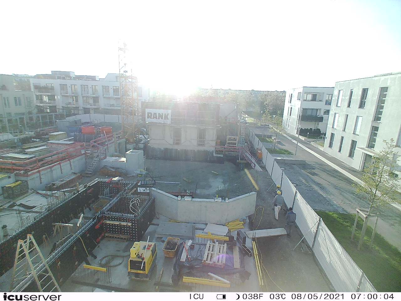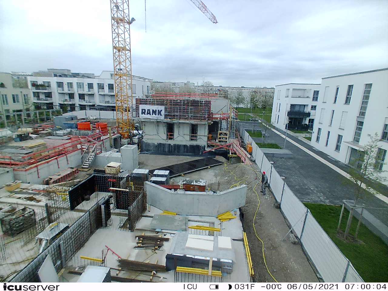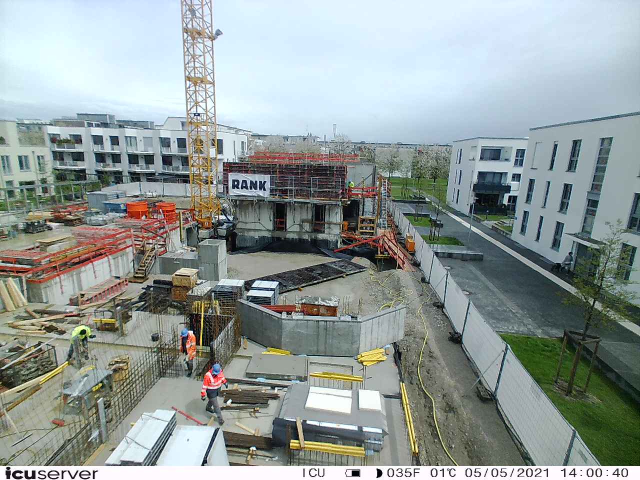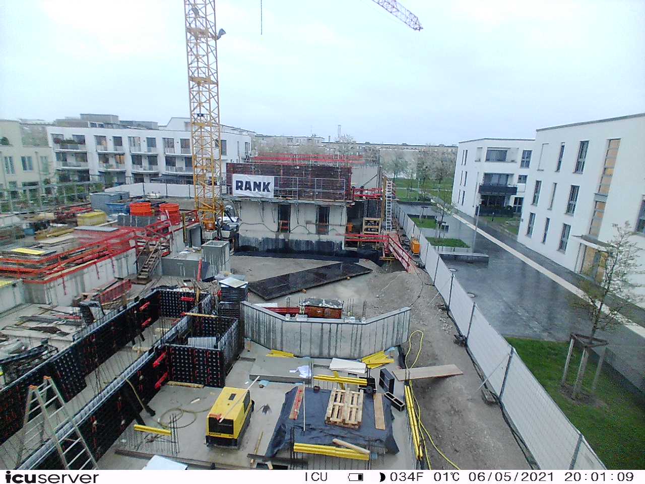 Die Kamera steht am westlichen Ende der Baustelle. Sie blickt nach Osten. Bilder: 26. Februar - 13. August 2021.