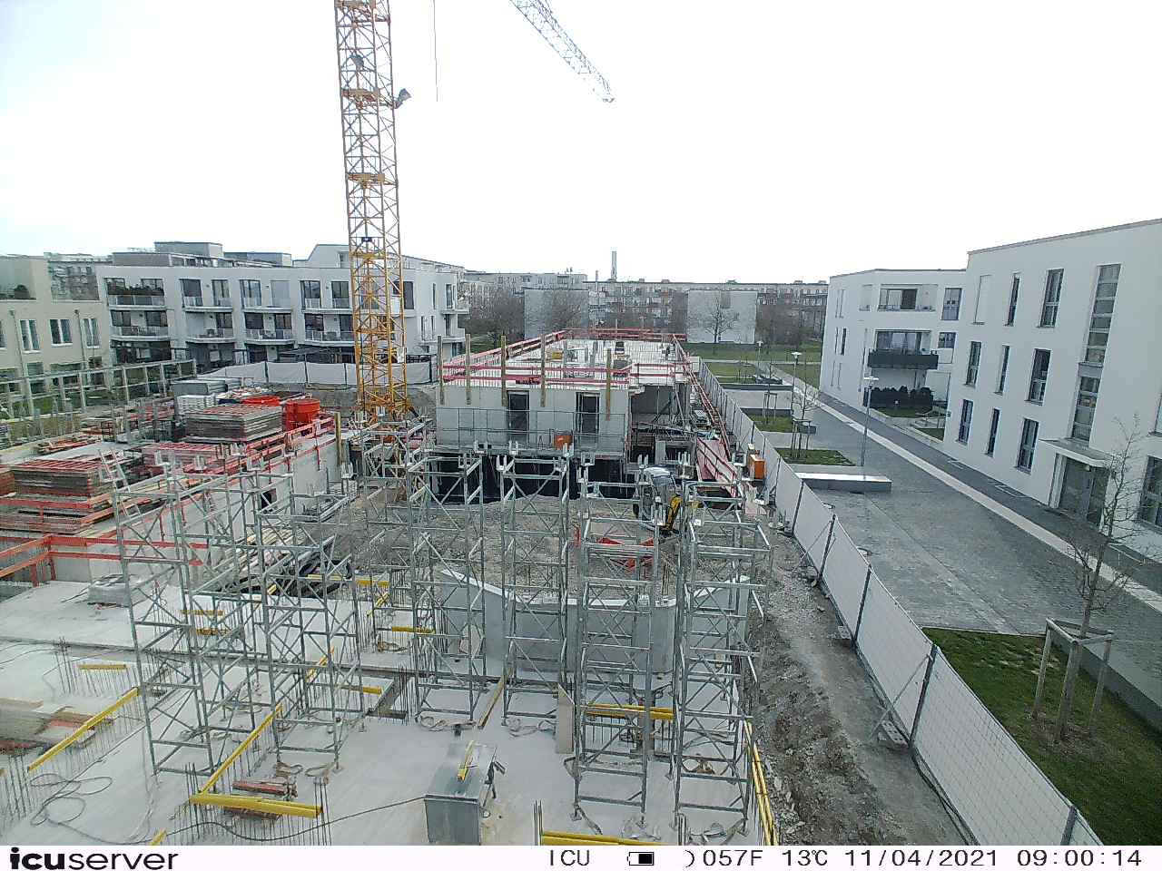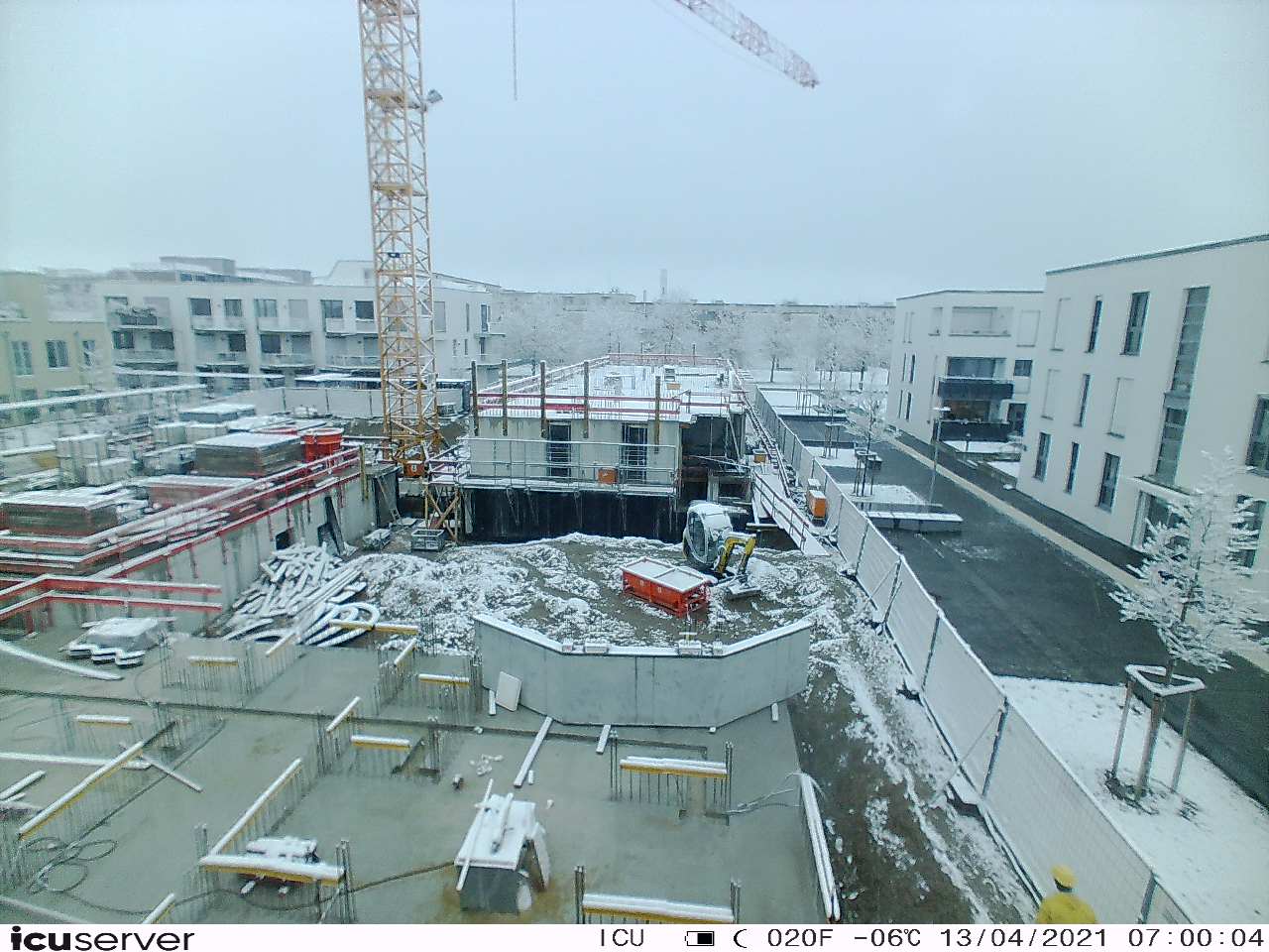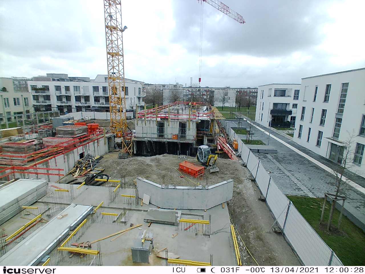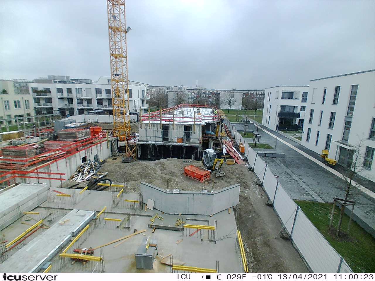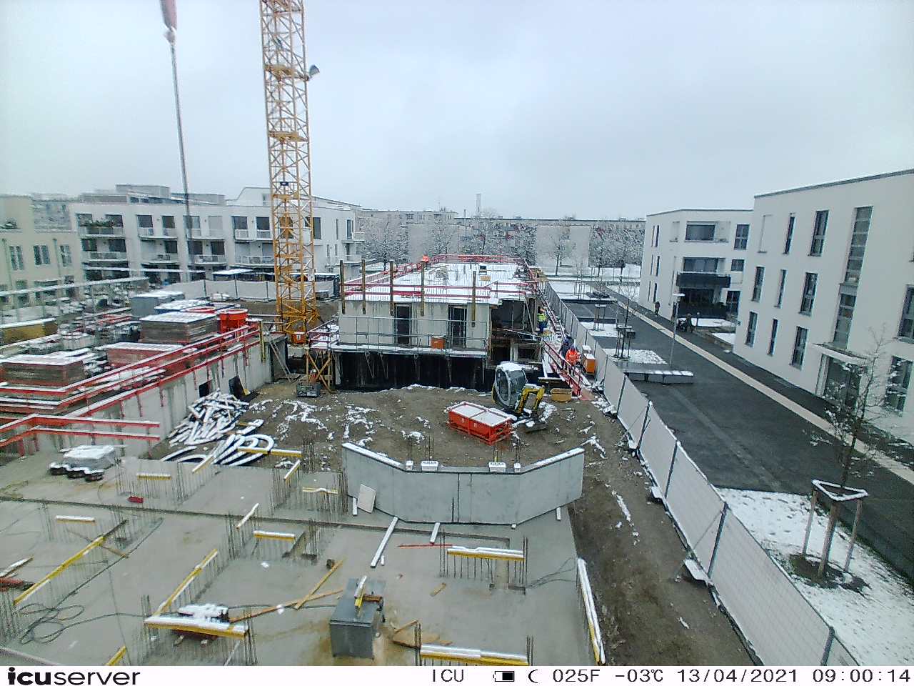 Die Kamera steht am westlichen Ende der Baustelle. Sie blickt nach Osten. Bilder: 26. Februar - 13. August 2021.