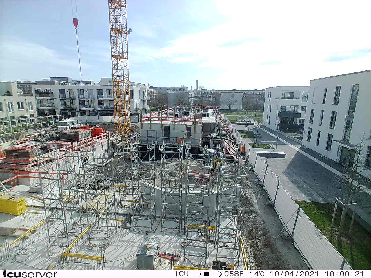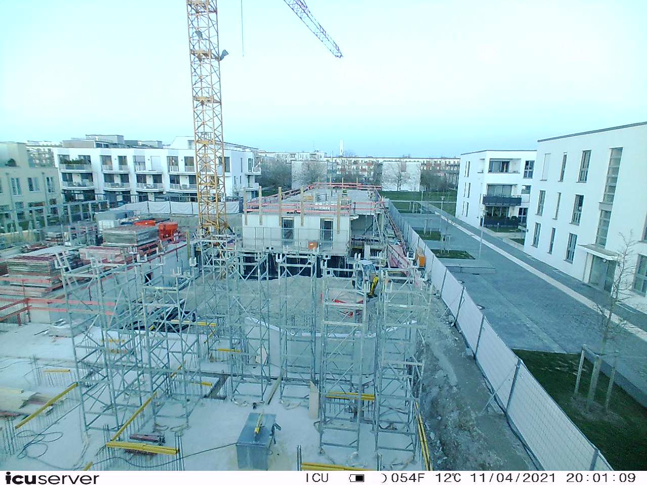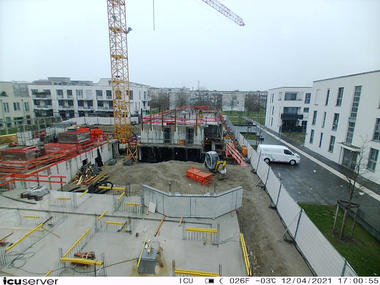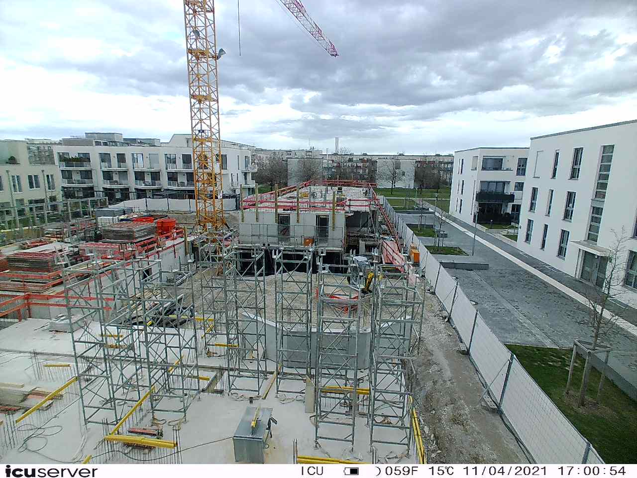 Die Kamera steht am westlichen Ende der Baustelle. Sie blickt nach Osten. Bilder: 26. Februar - 13. August 2021.