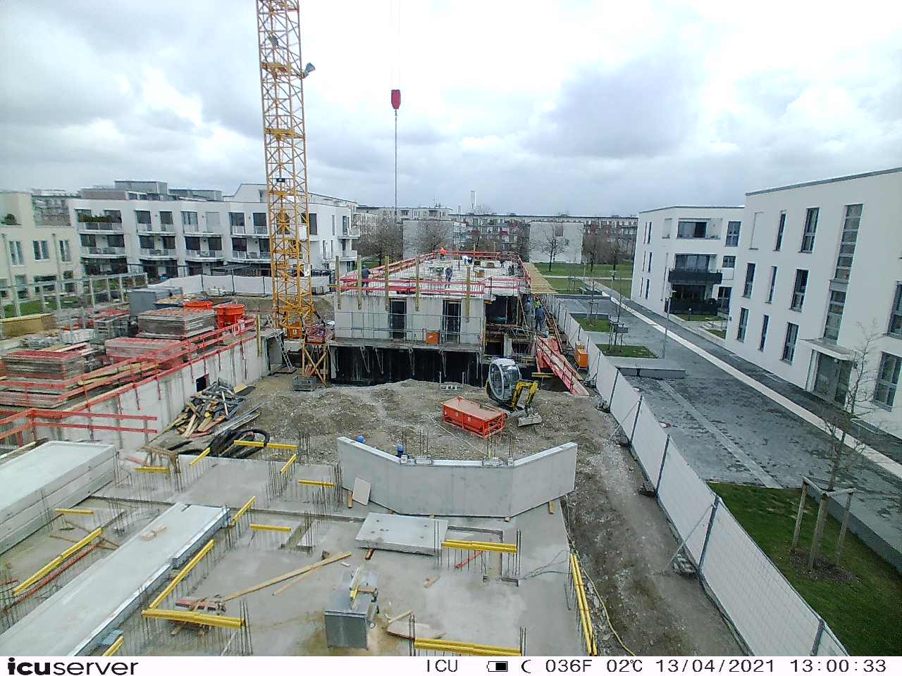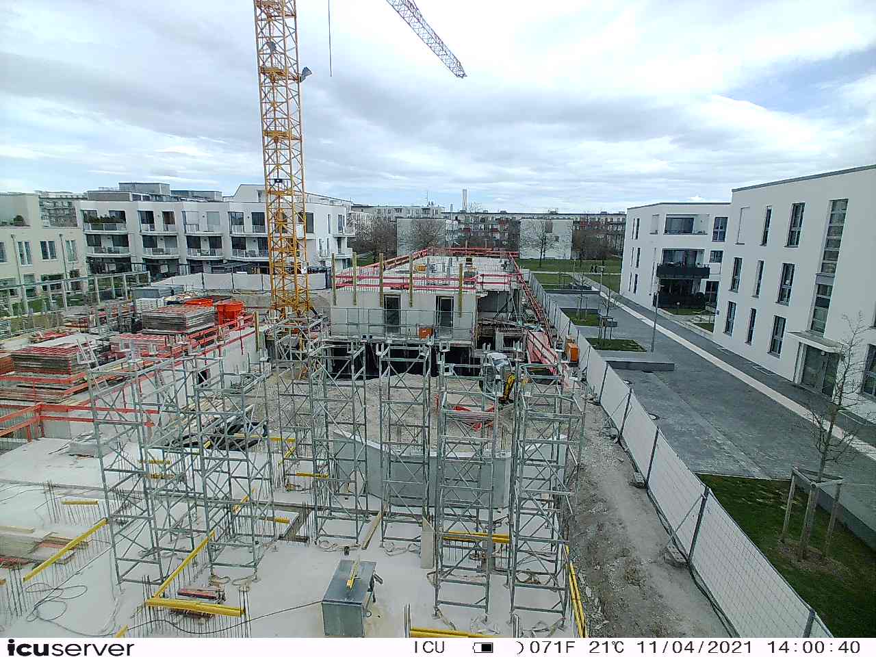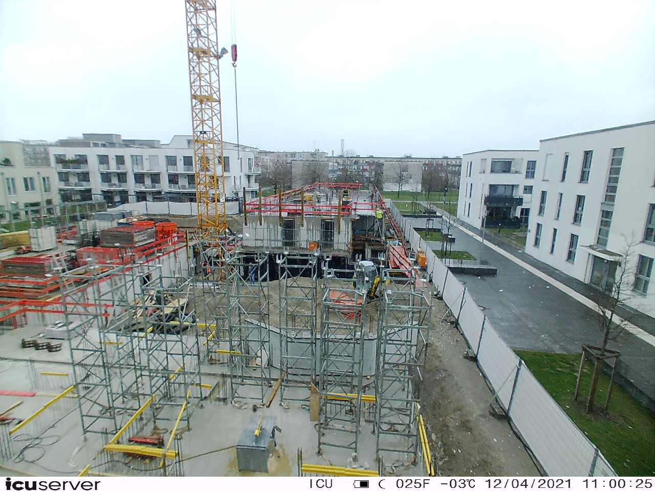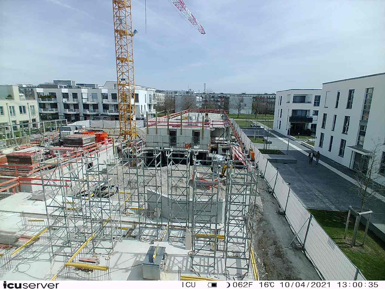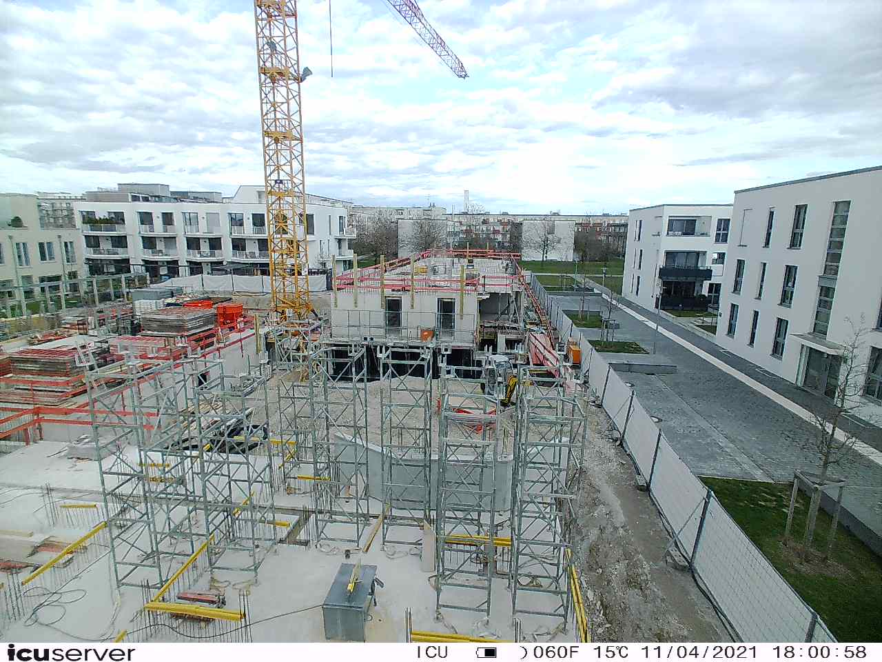 Die Kamera steht am westlichen Ende der Baustelle. Sie blickt nach Osten. Bilder: 26. Februar - 13. August 2021.