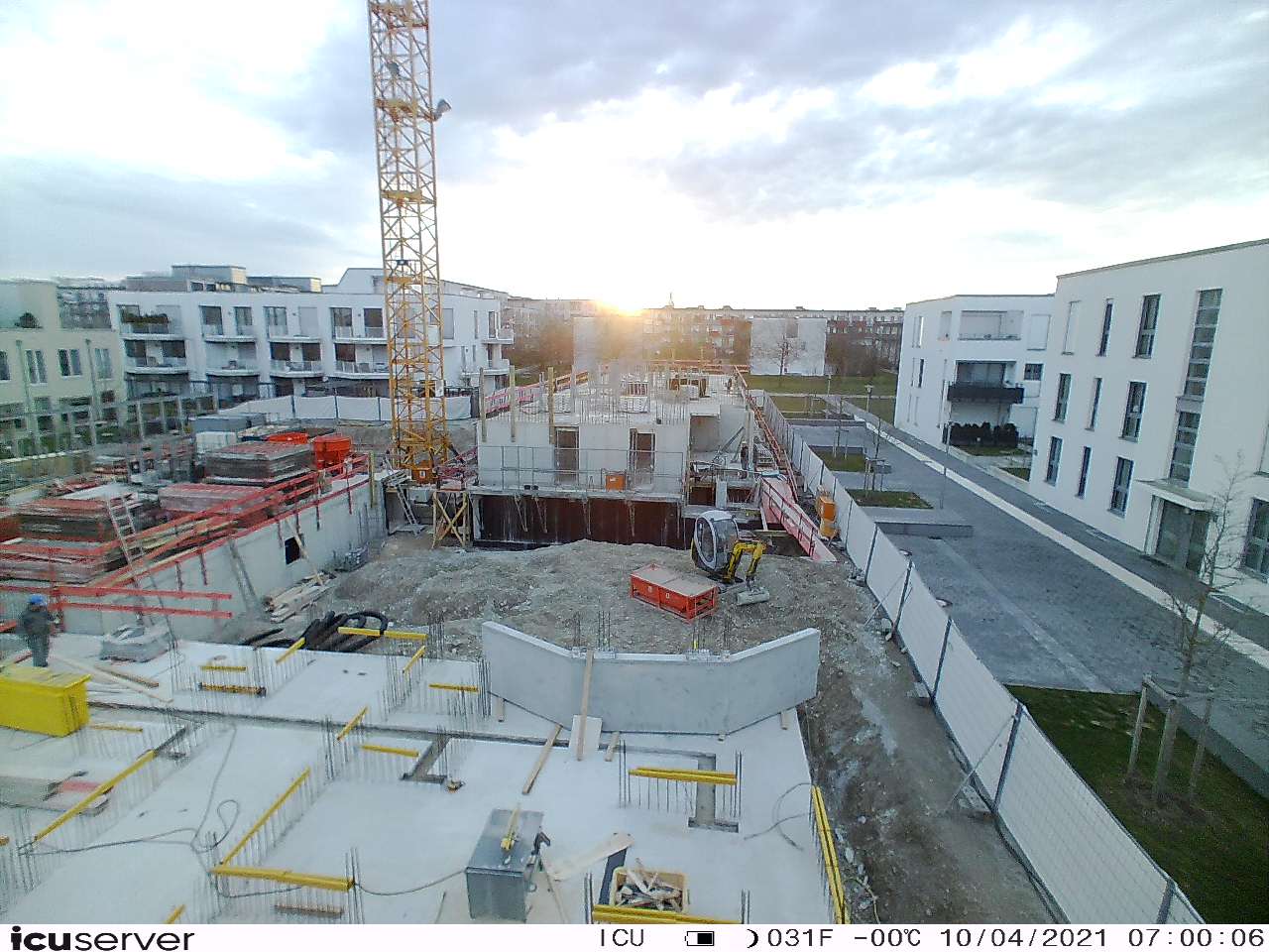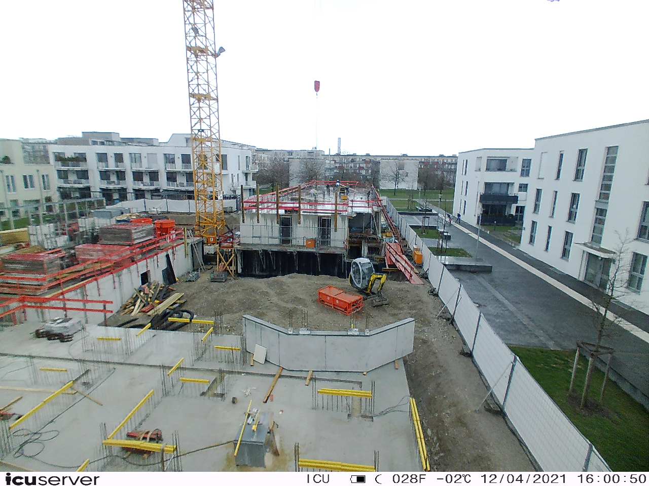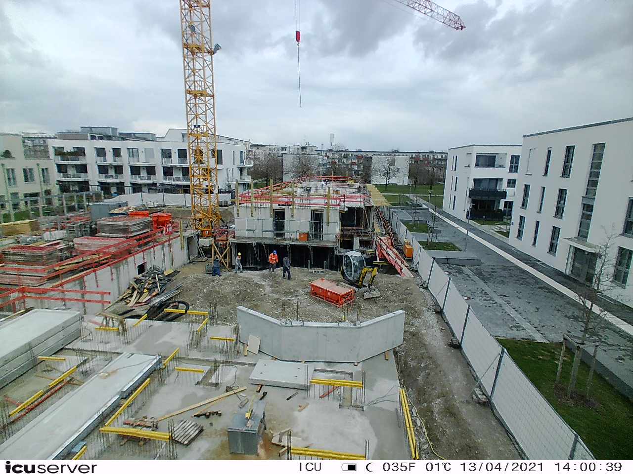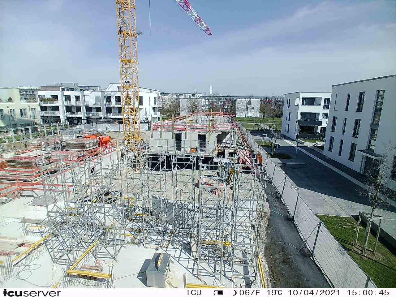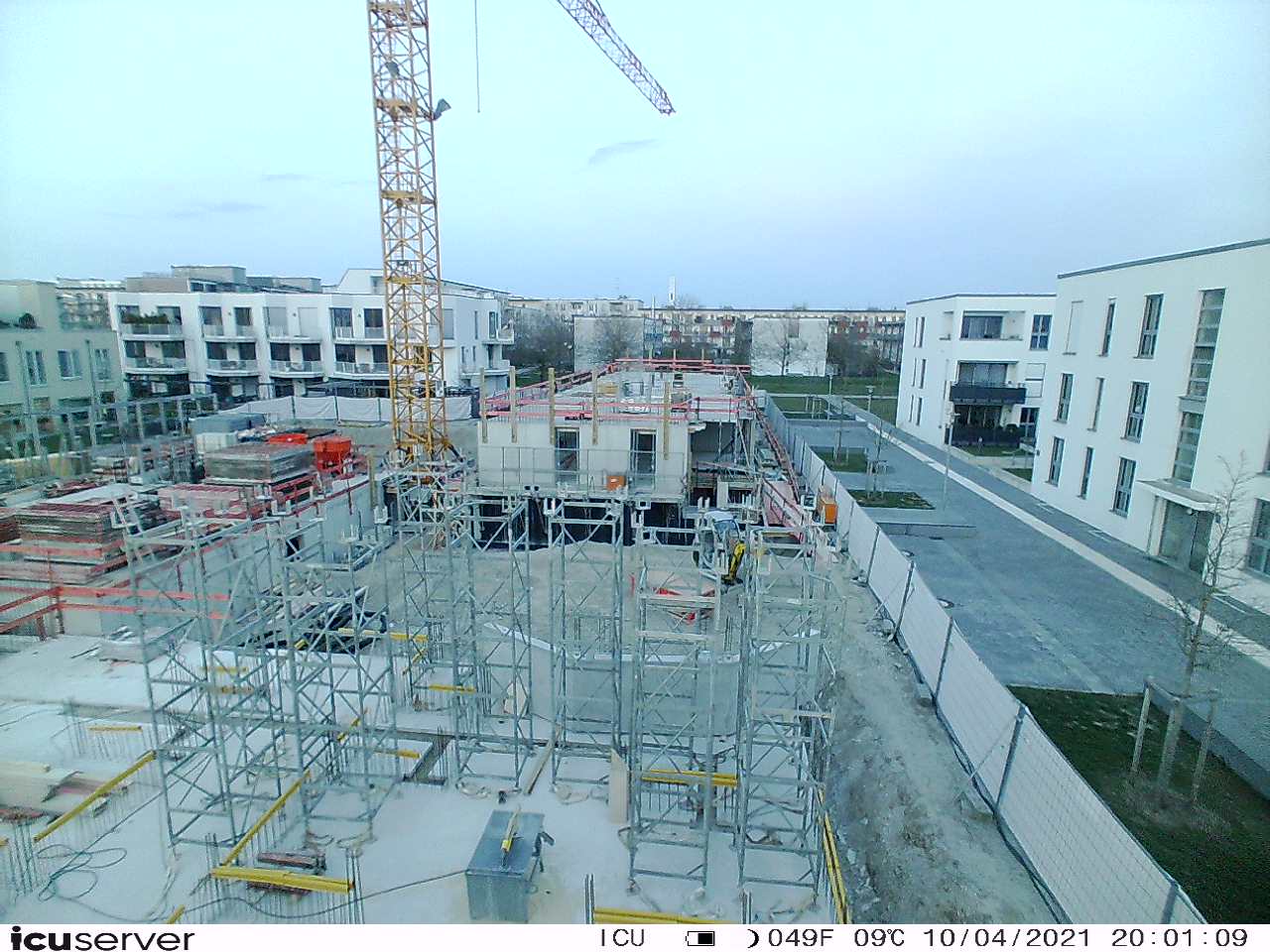 Die Kamera steht am westlichen Ende der Baustelle. Sie blickt nach Osten. Bilder: 26. Februar - 13. August 2021.