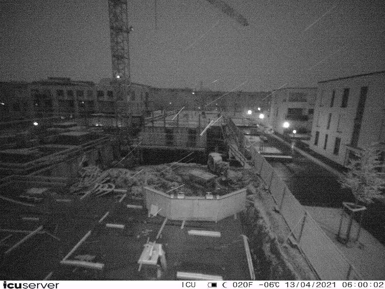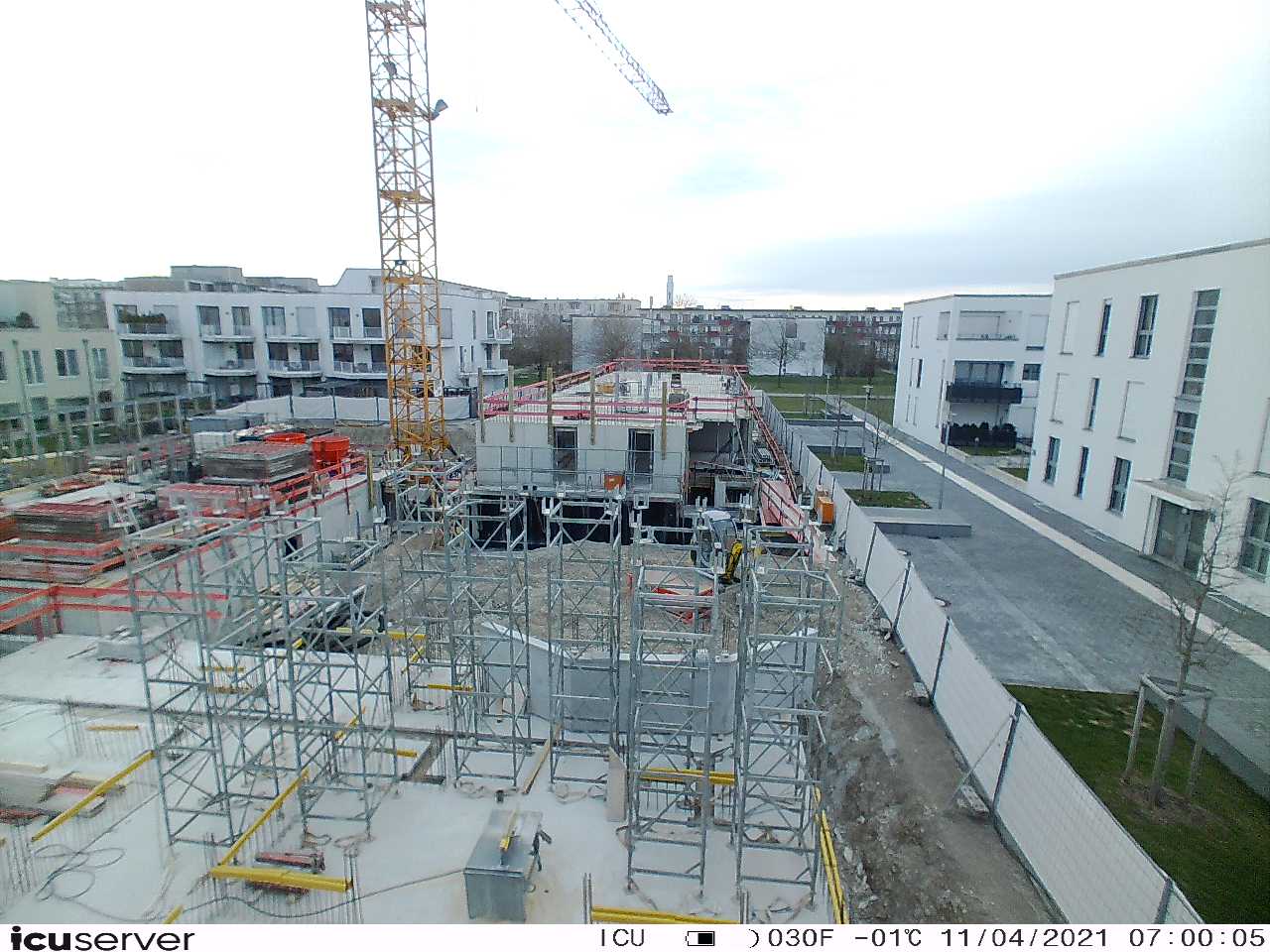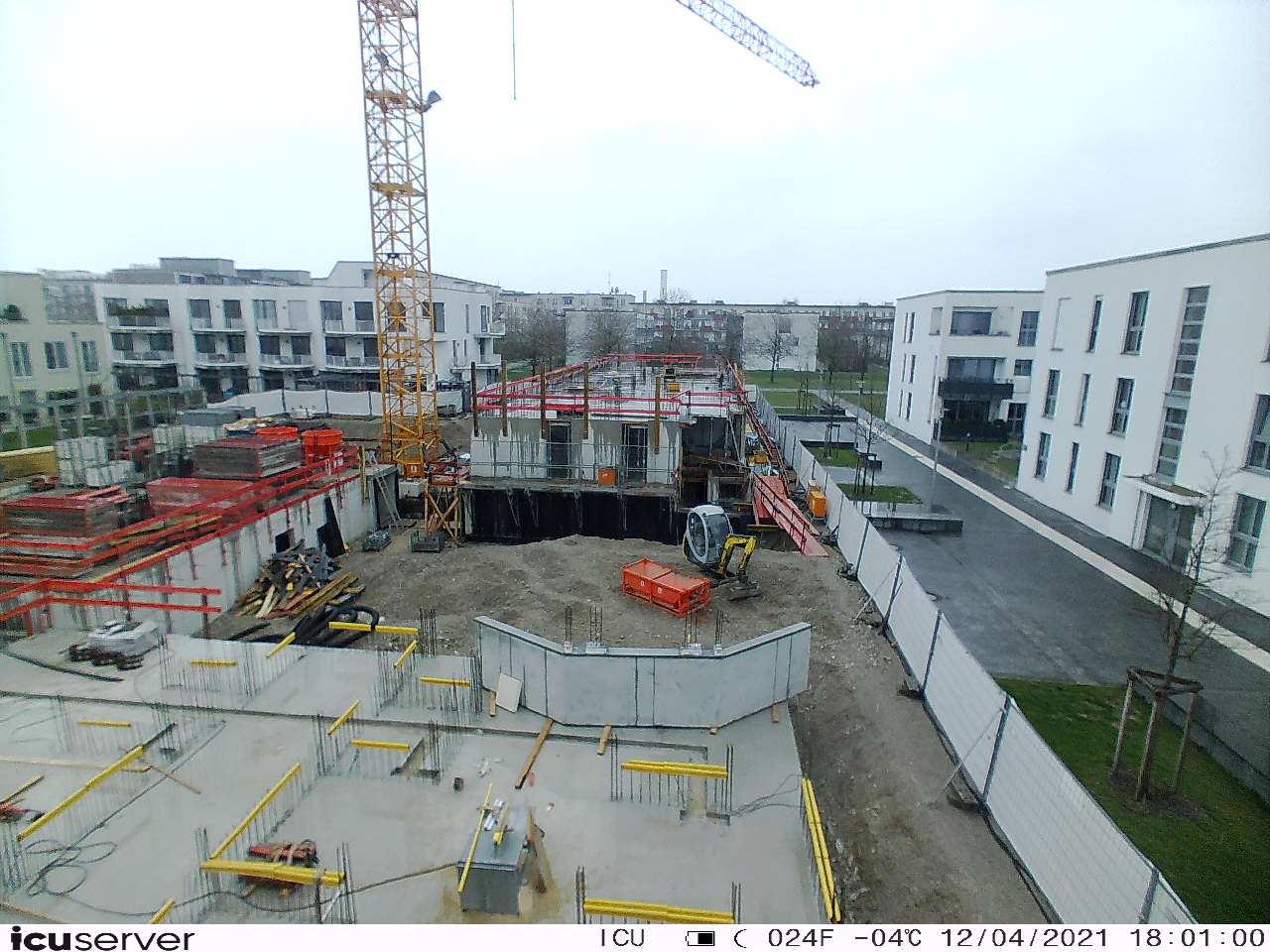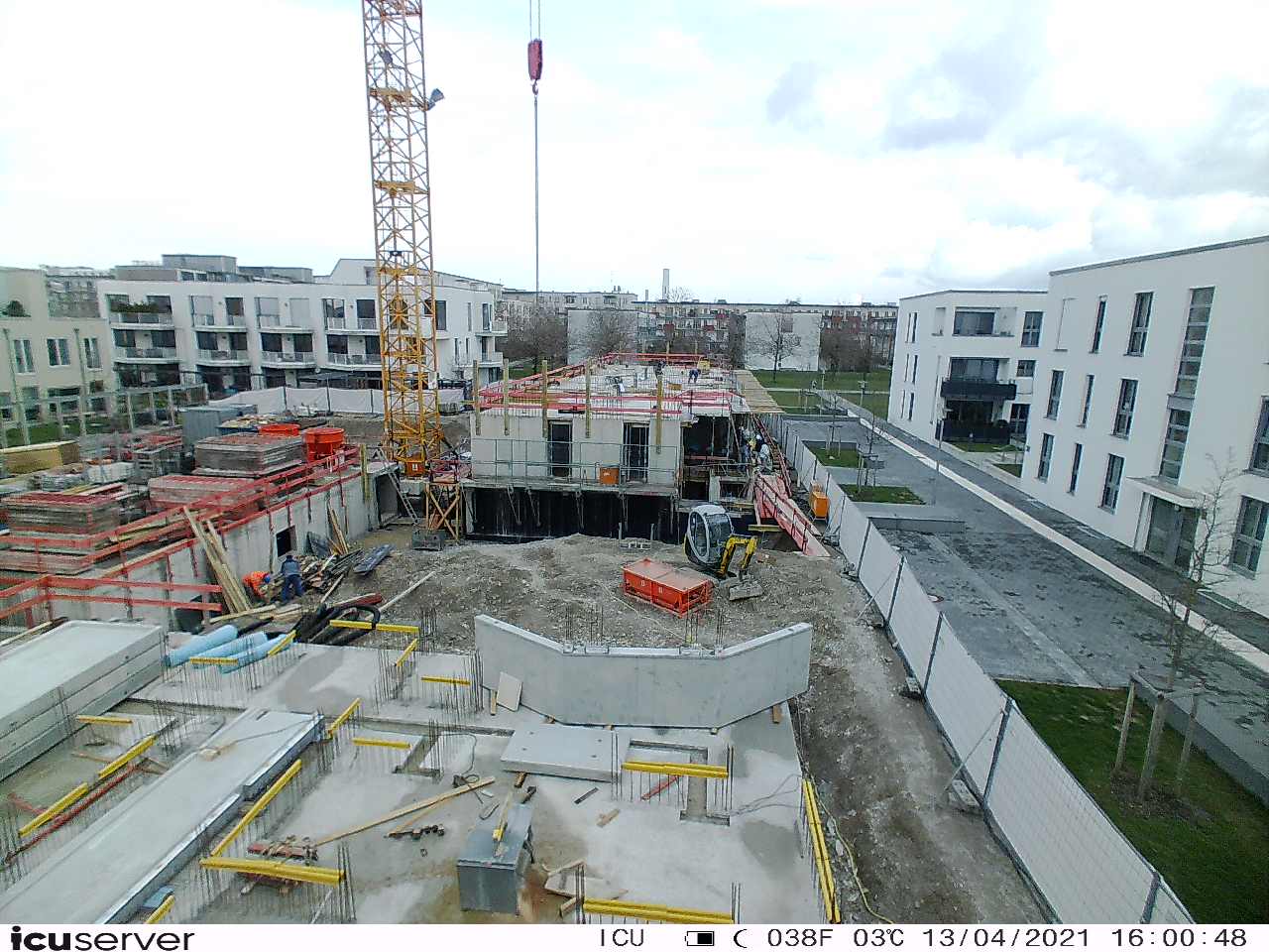 Die Kamera steht am westlichen Ende der Baustelle. Sie blickt nach Osten. Bilder: 26. Februar - 13. August 2021.