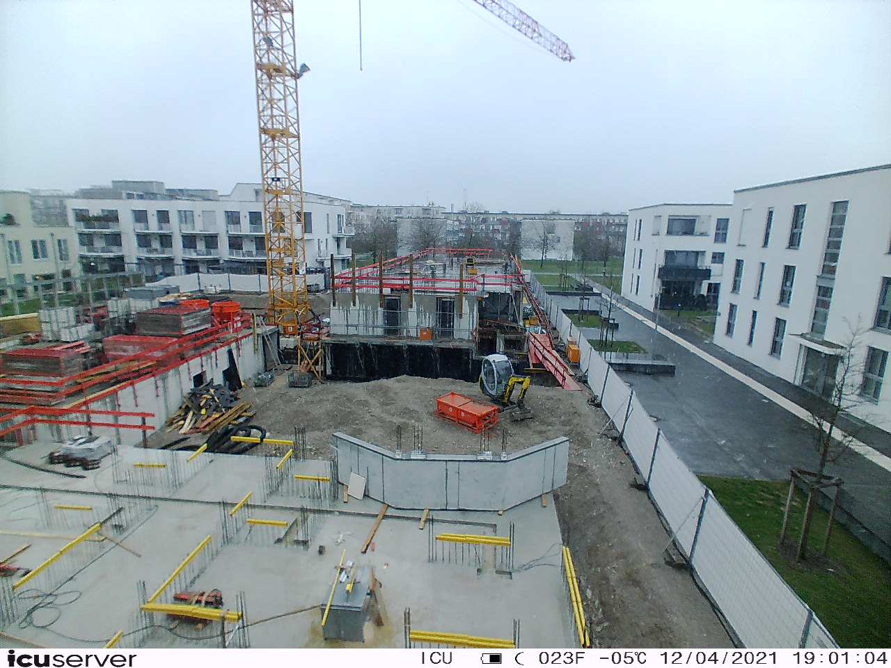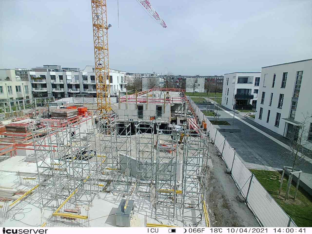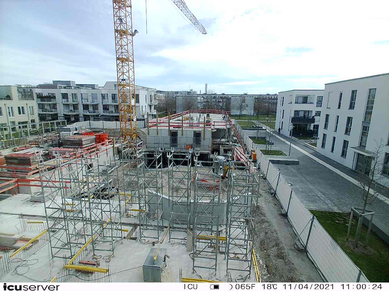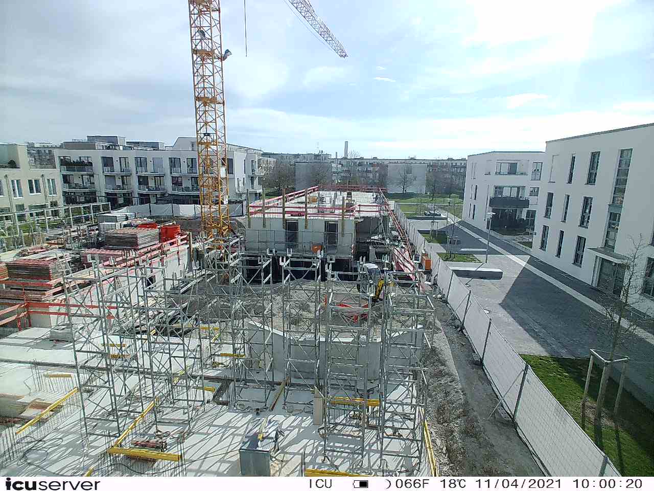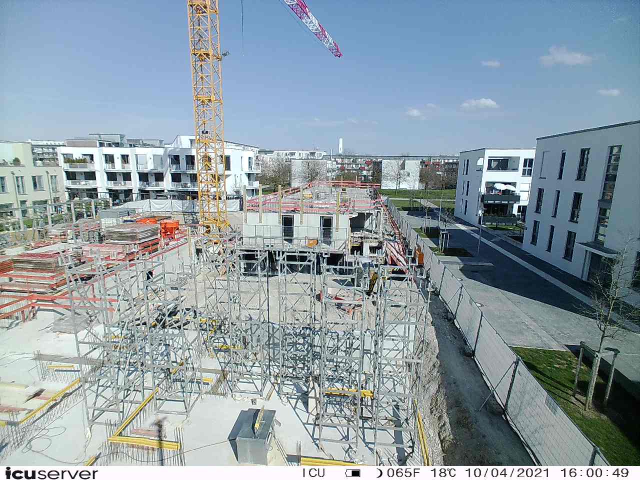Die Kamera steht am westlichen Ende der Baustelle. Sie blickt nach Osten. Bilder: 26. Februar - 13. August 2021.