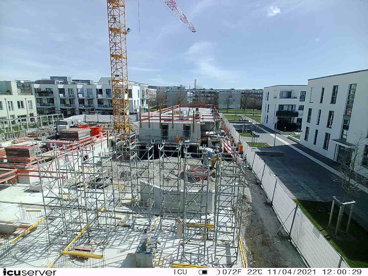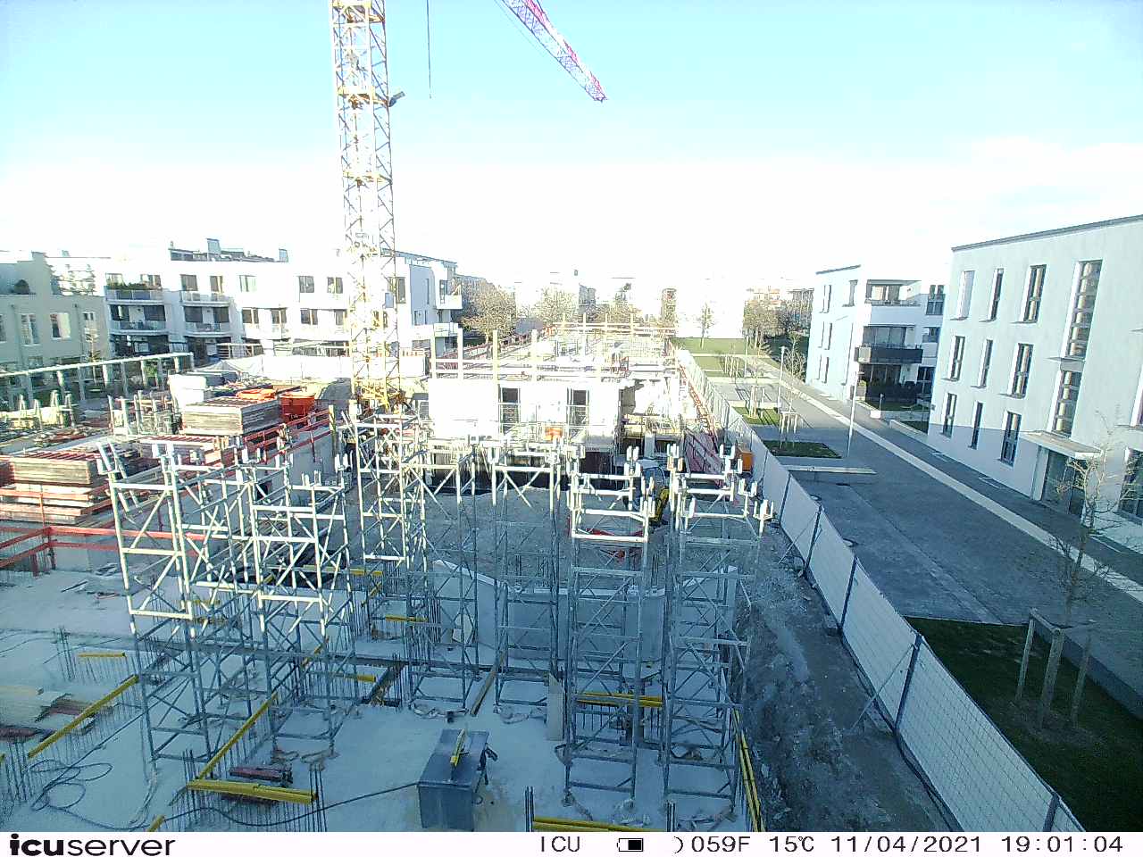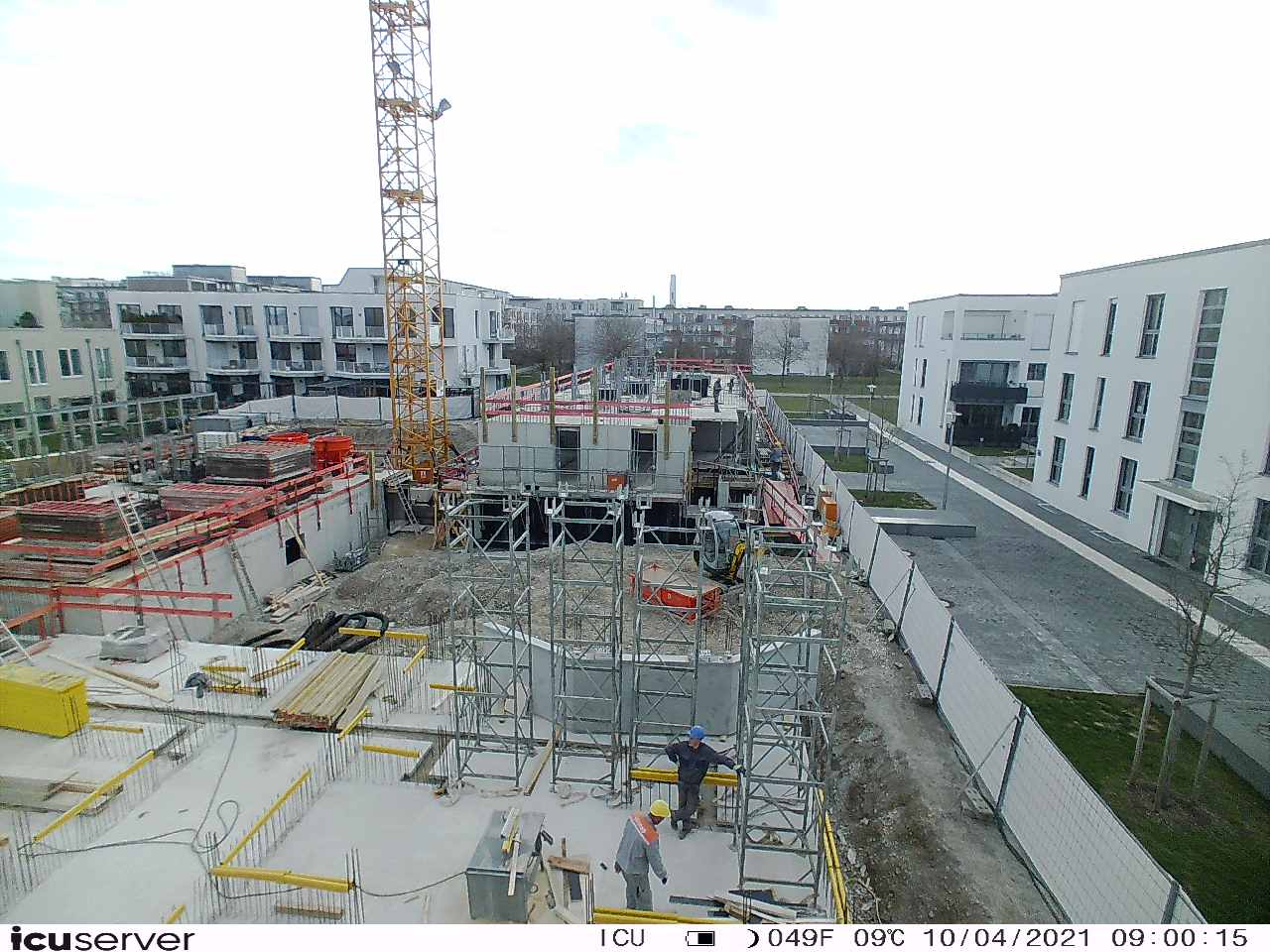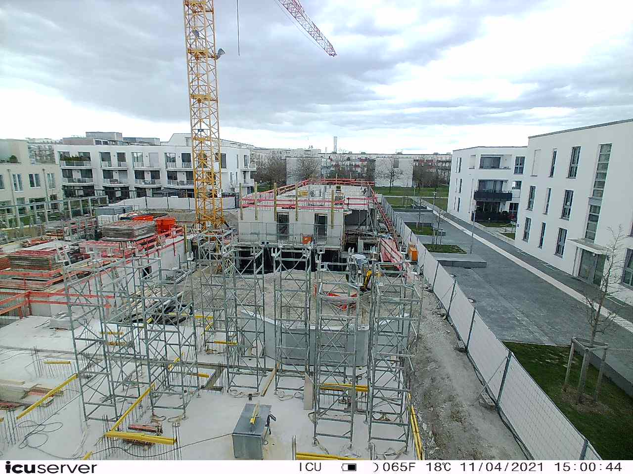 Die Kamera steht am westlichen Ende der Baustelle. Sie blickt nach Osten. Bilder: 26. Februar - 13. August 2021.