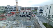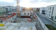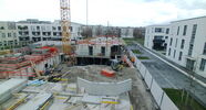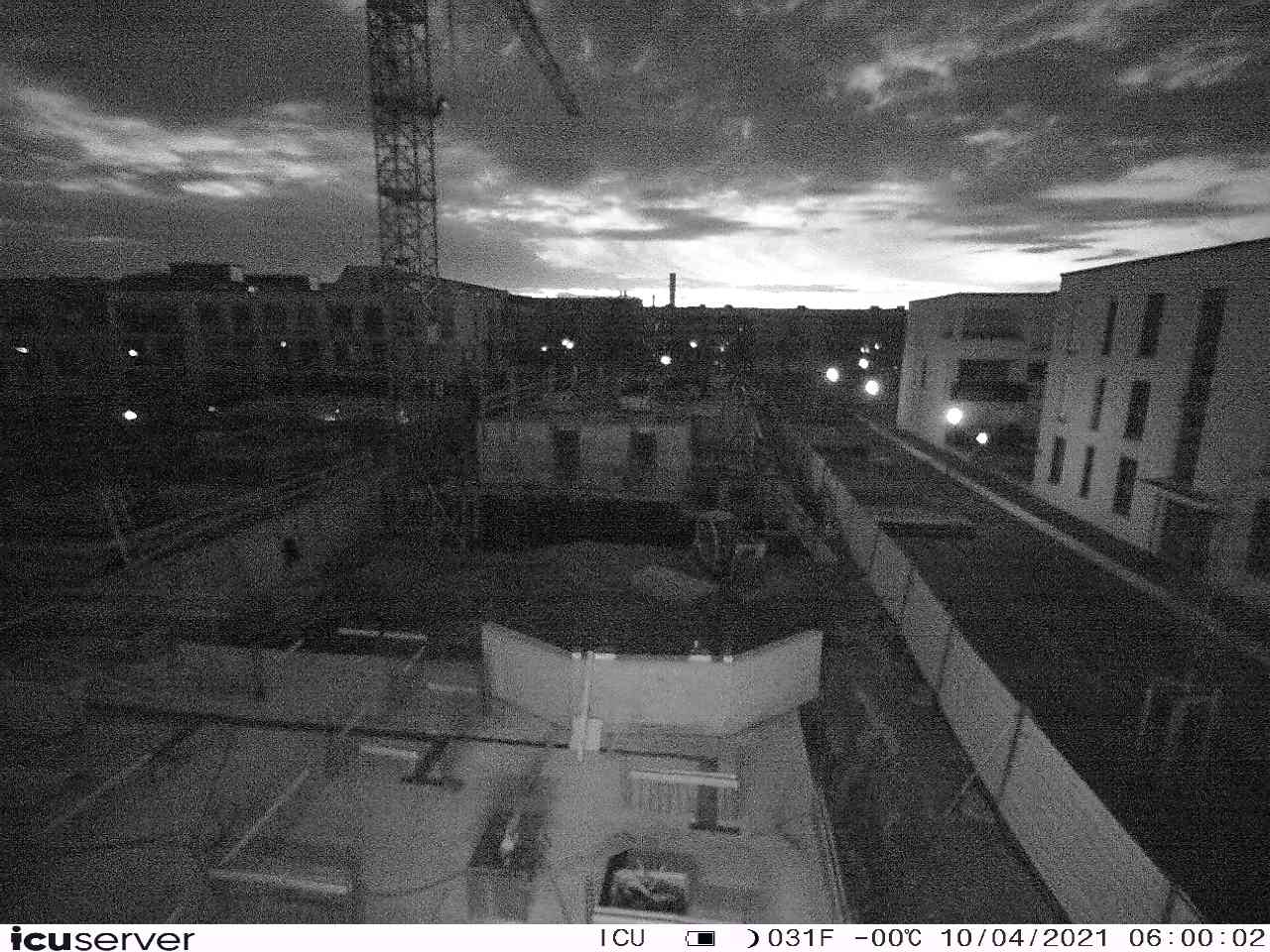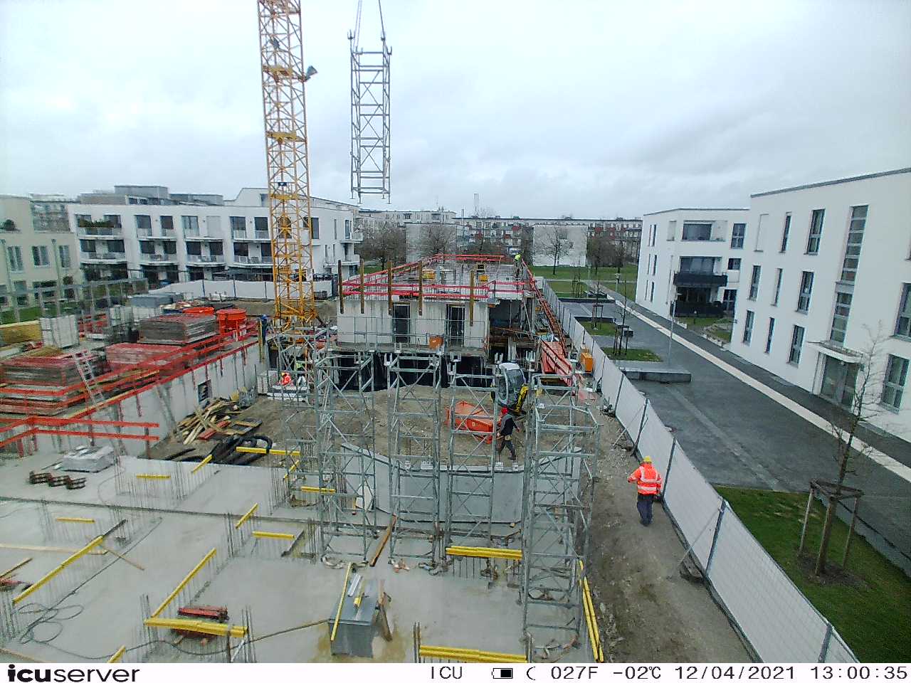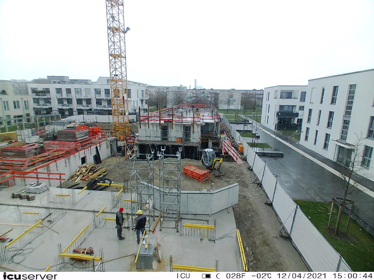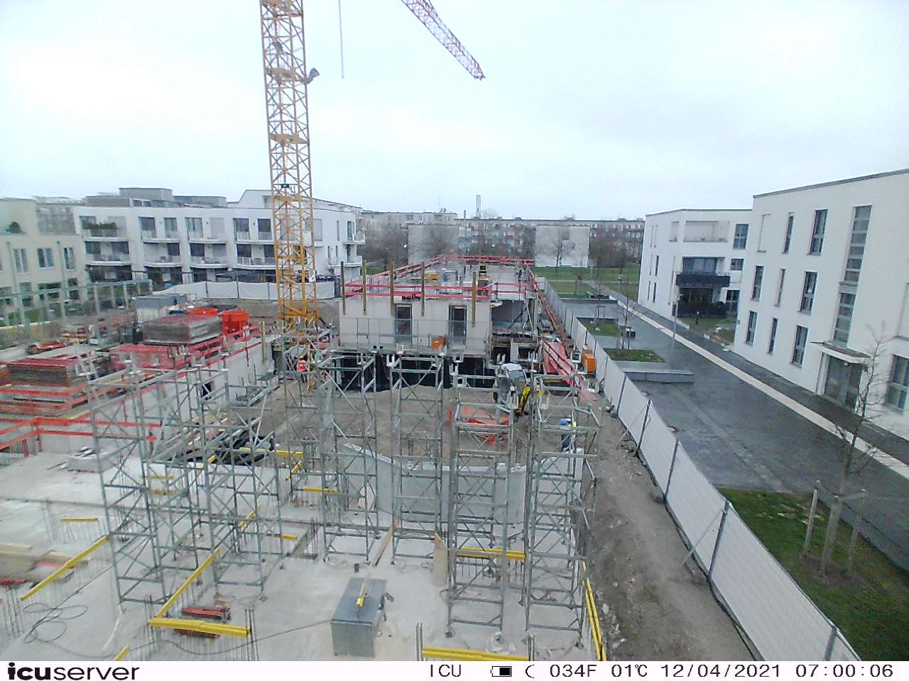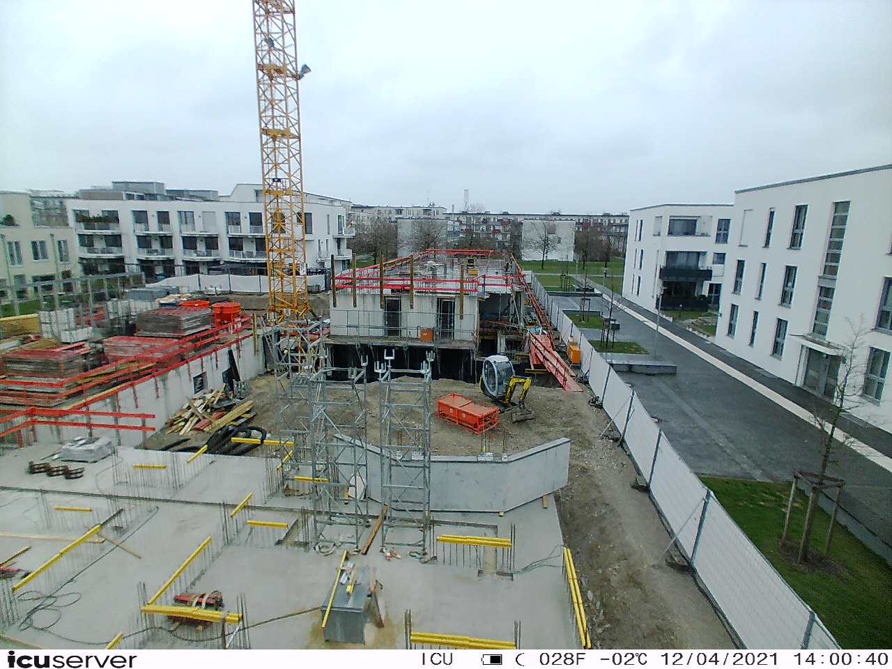 Die Kamera steht am westlichen Ende der Baustelle. Sie blickt nach Osten. Bilder: 26. Februar - 13. August 2021.