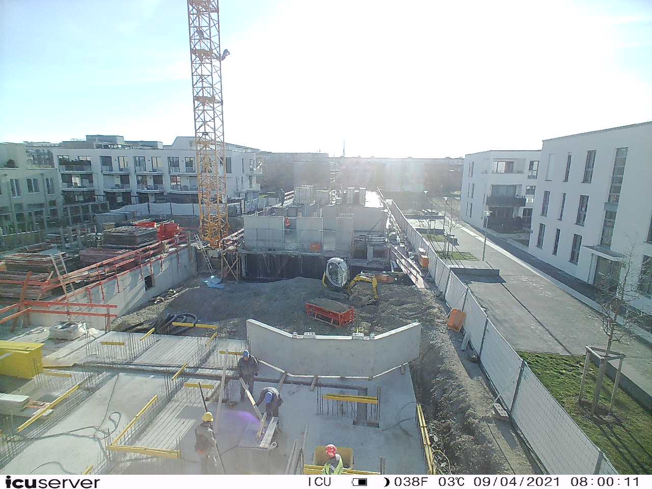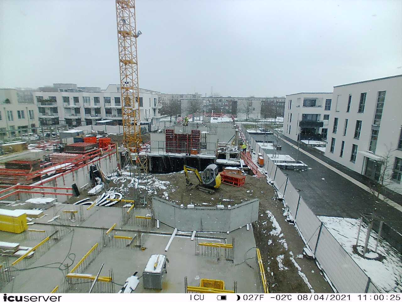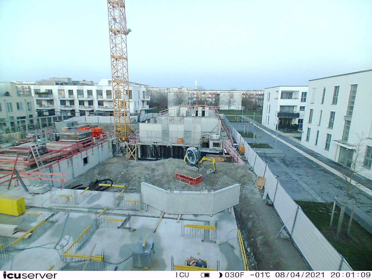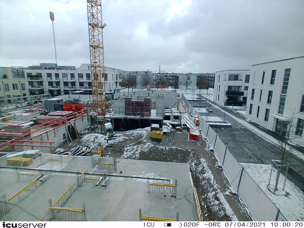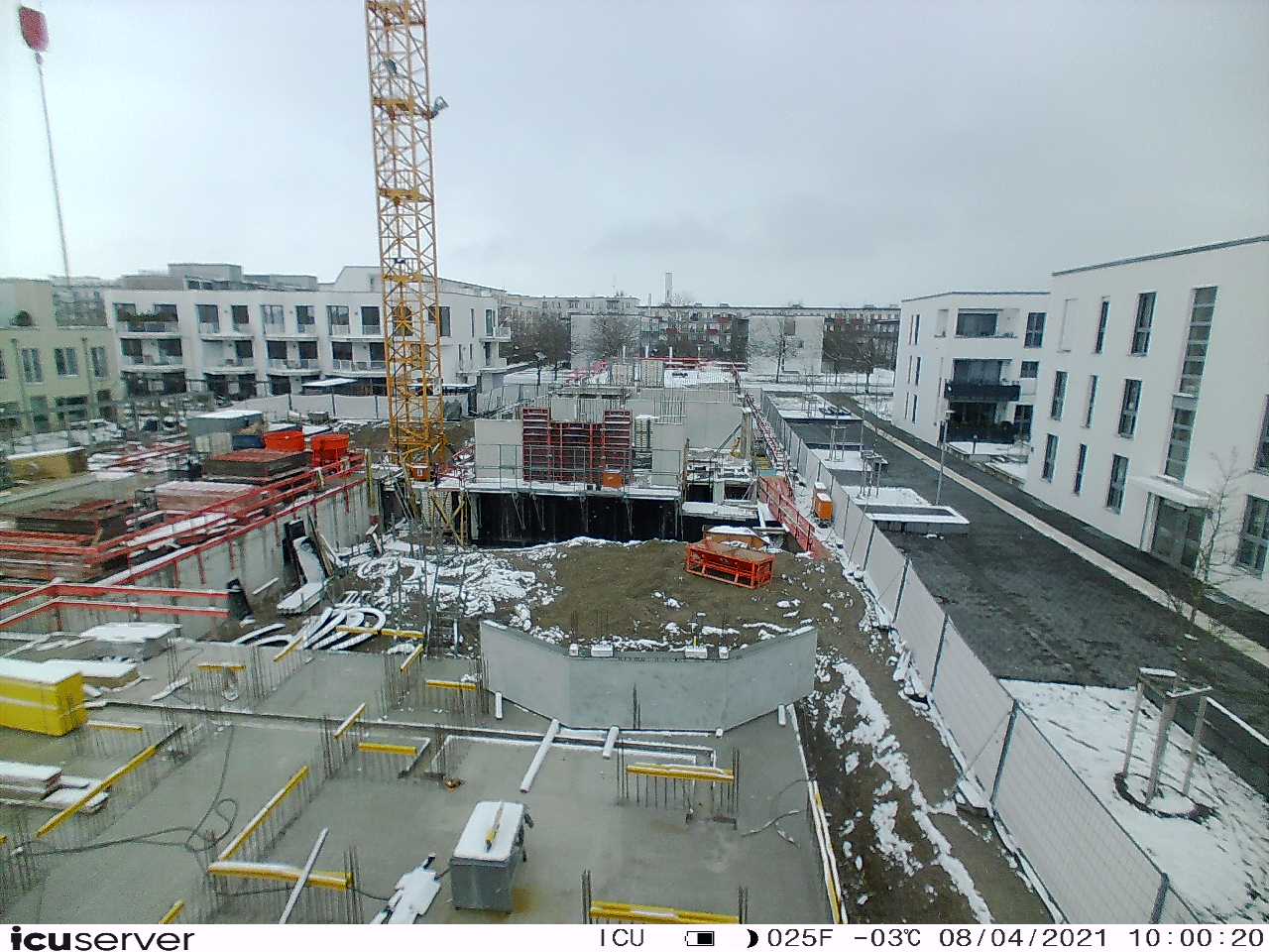 Die Kamera steht am westlichen Ende der Baustelle. Sie blickt nach Osten. Bilder: 26. Februar - 13. August 2021.