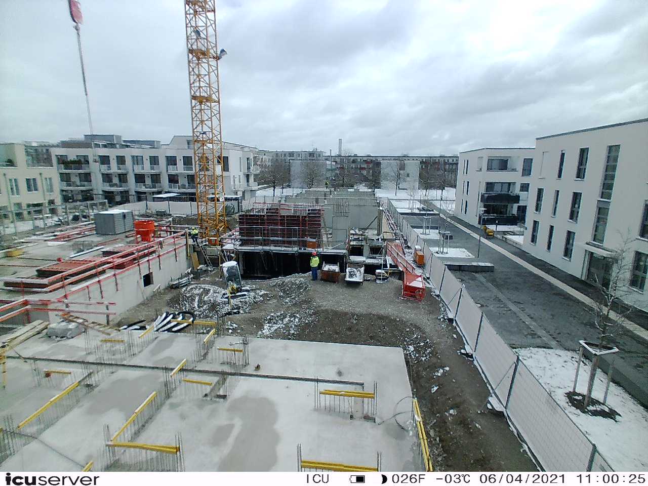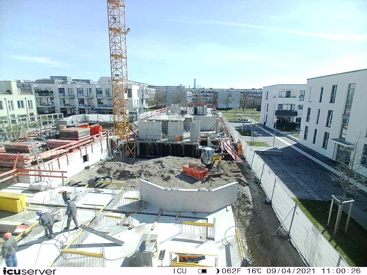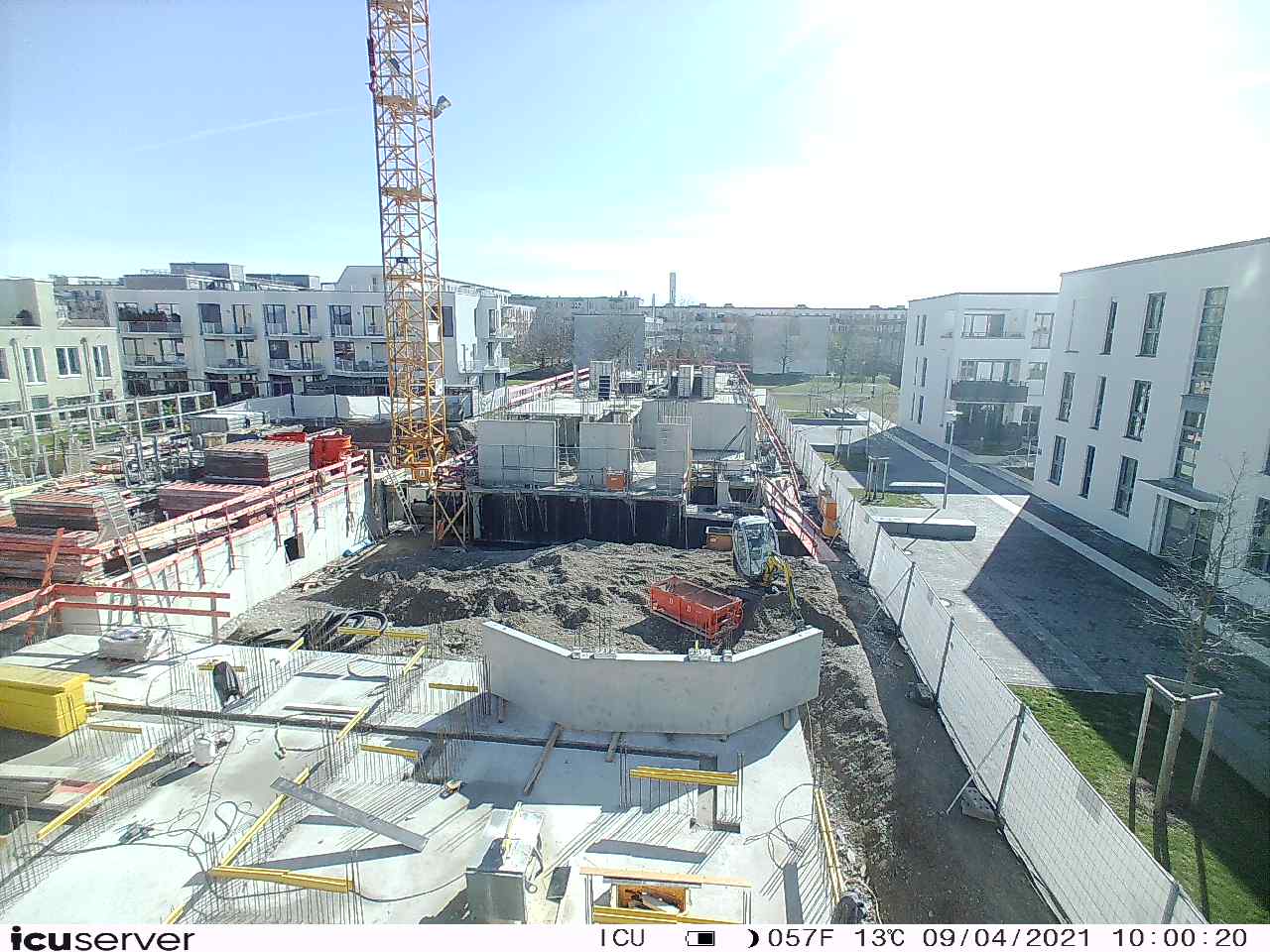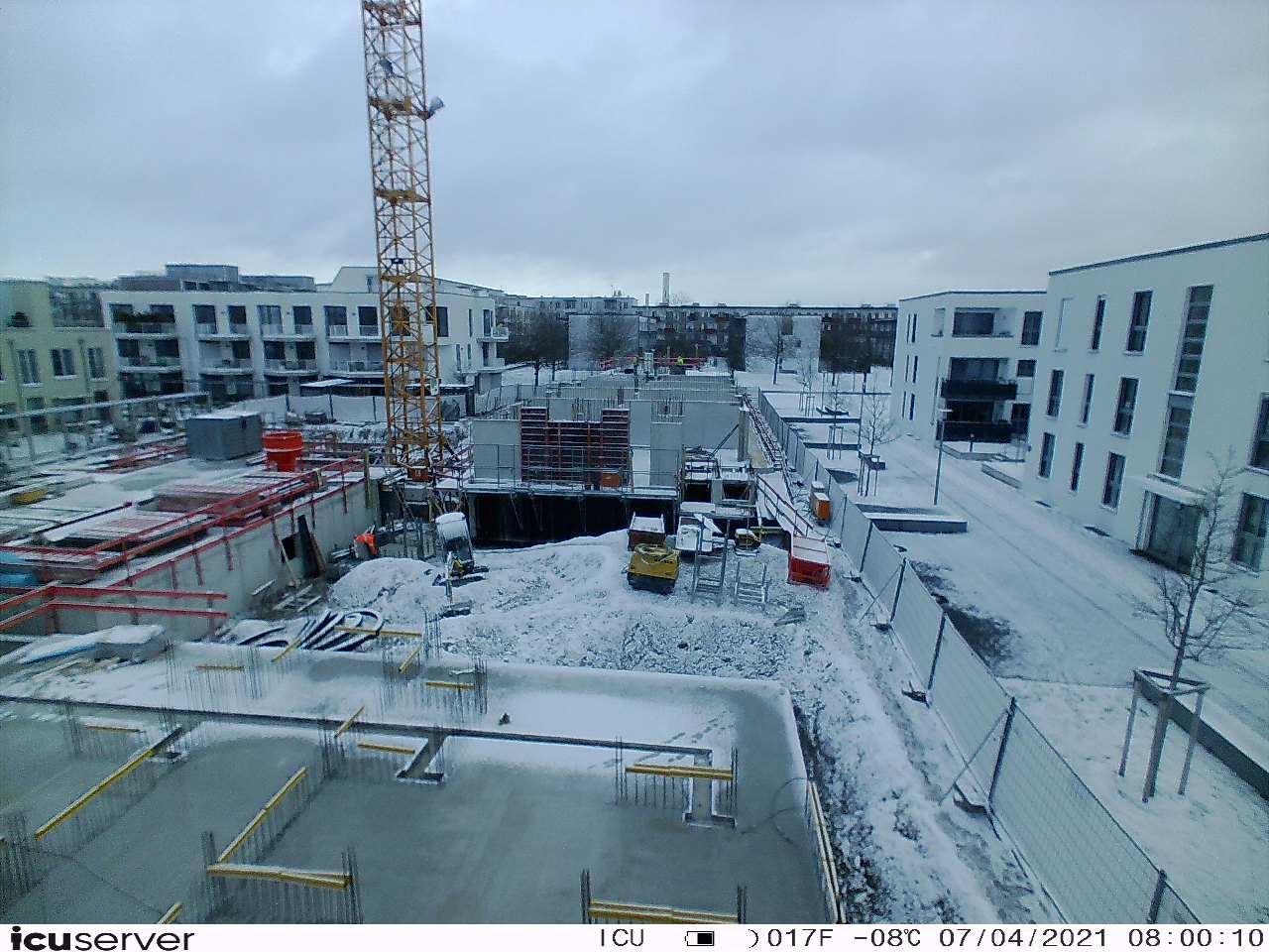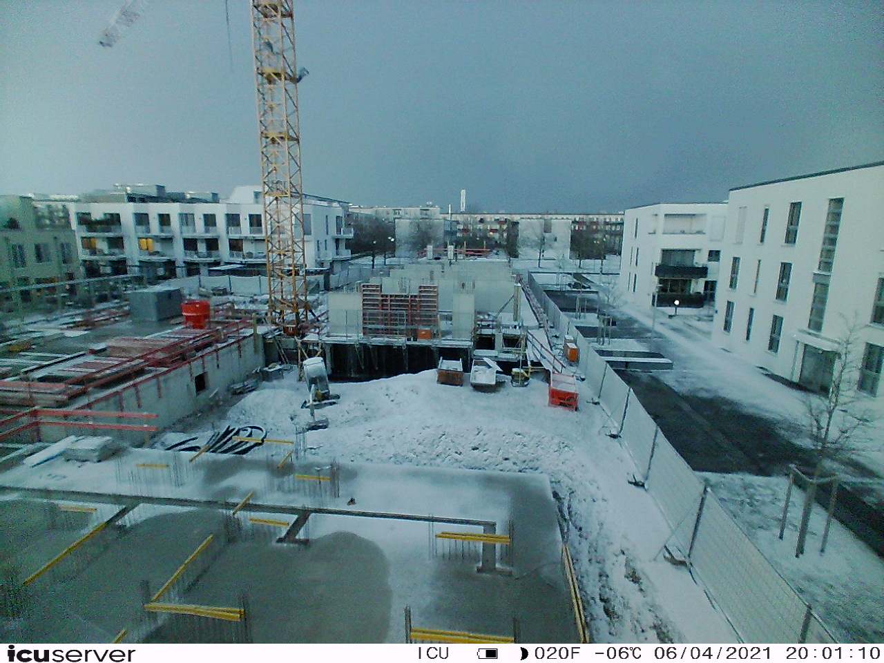 Die Kamera steht am westlichen Ende der Baustelle. Sie blickt nach Osten. Bilder: 26. Februar - 13. August 2021.