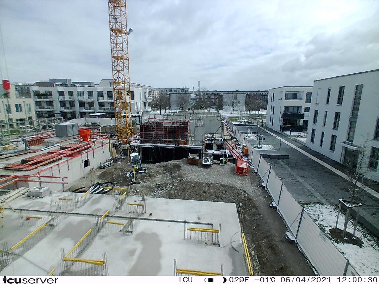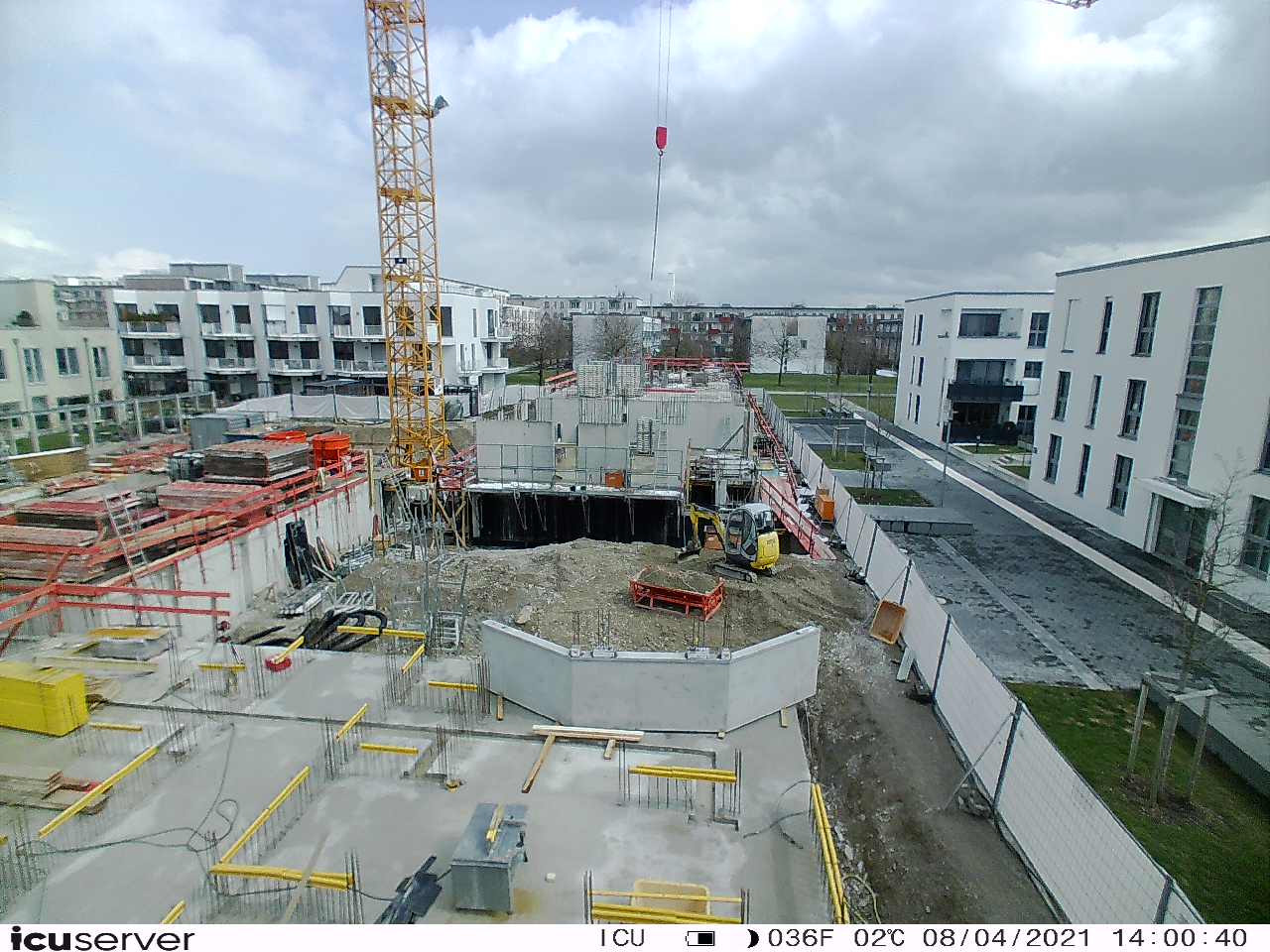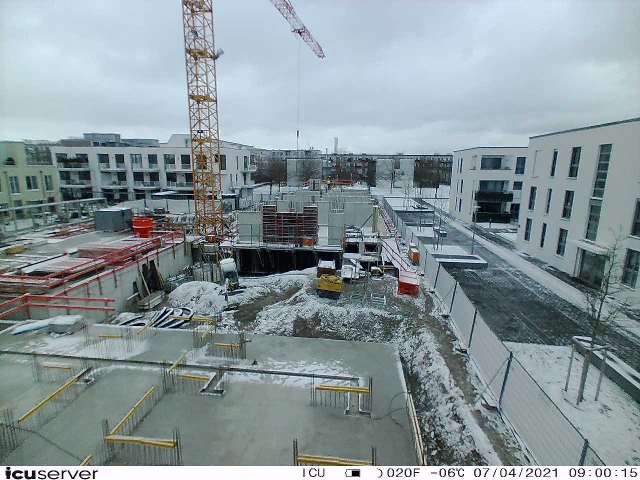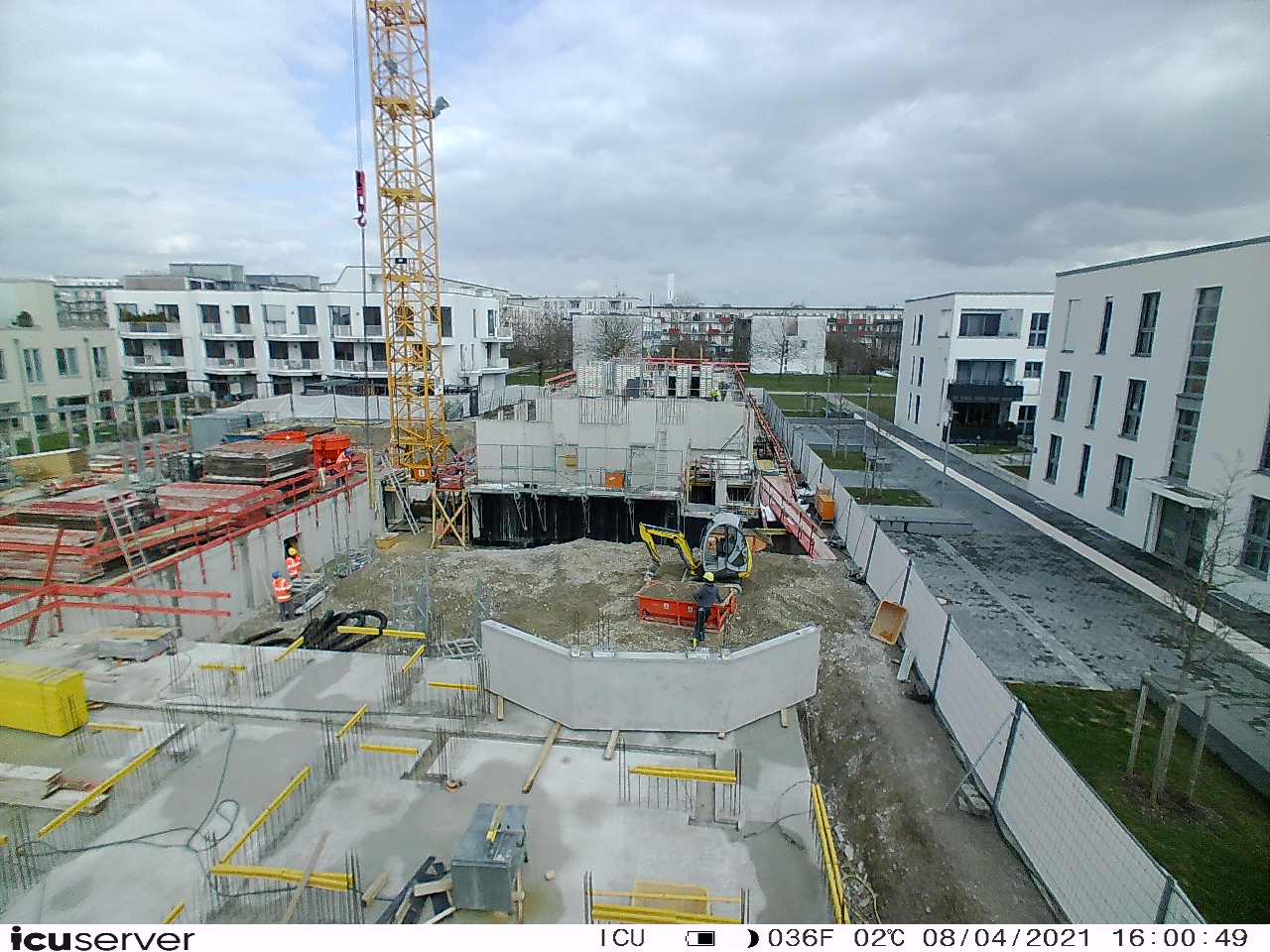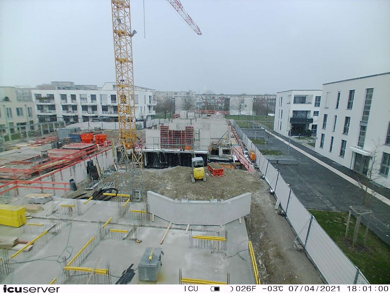 Die Kamera steht am westlichen Ende der Baustelle. Sie blickt nach Osten. Bilder: 26. Februar - 13. August 2021.