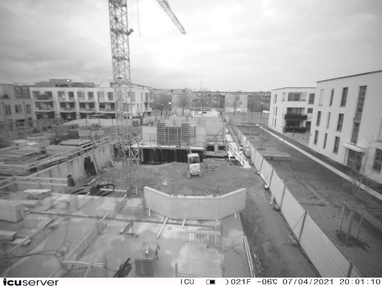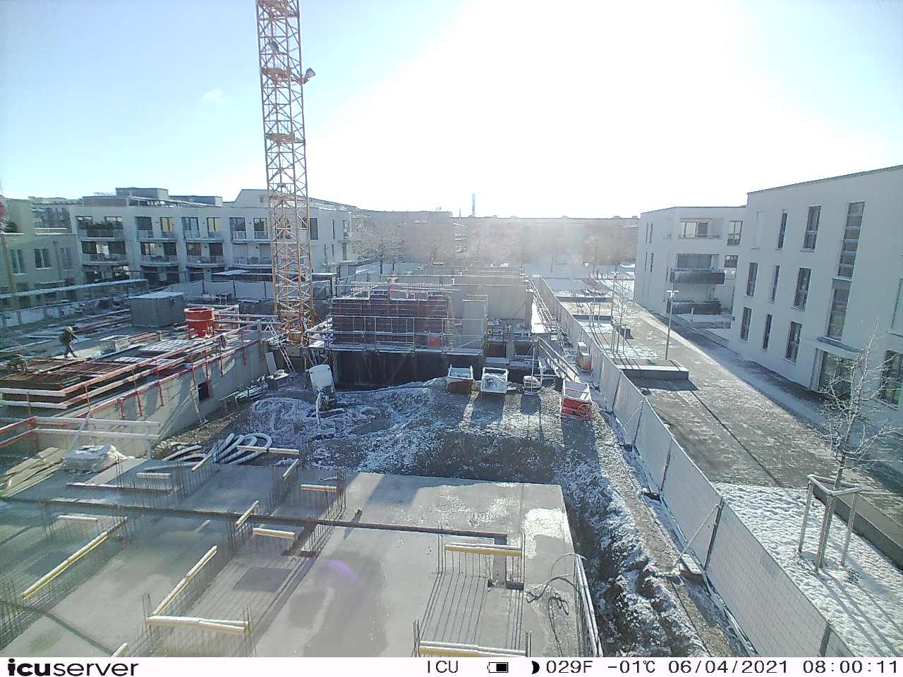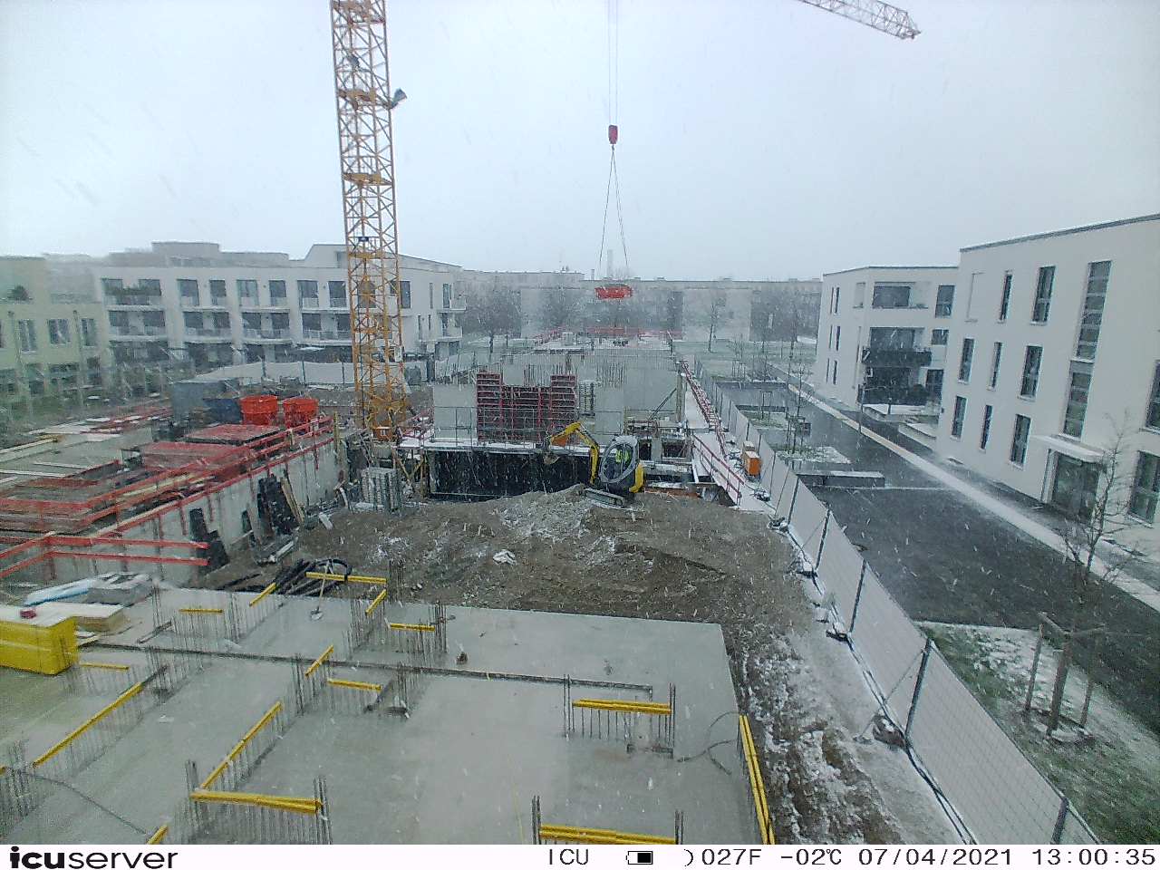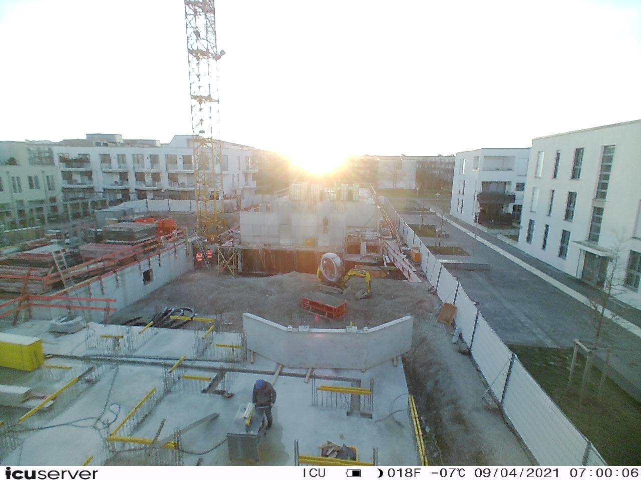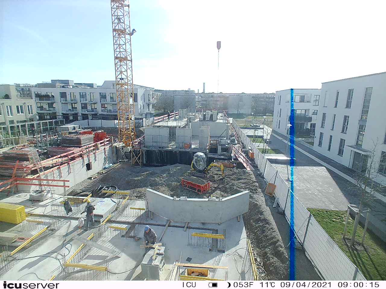 Die Kamera steht am westlichen Ende der Baustelle. Sie blickt nach Osten. Bilder: 26. Februar - 13. August 2021.