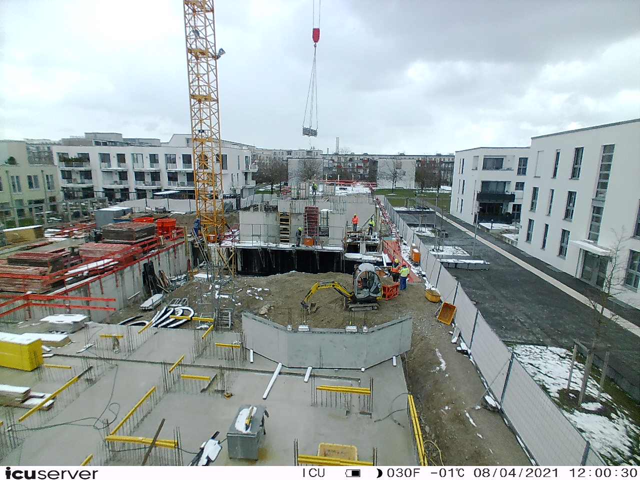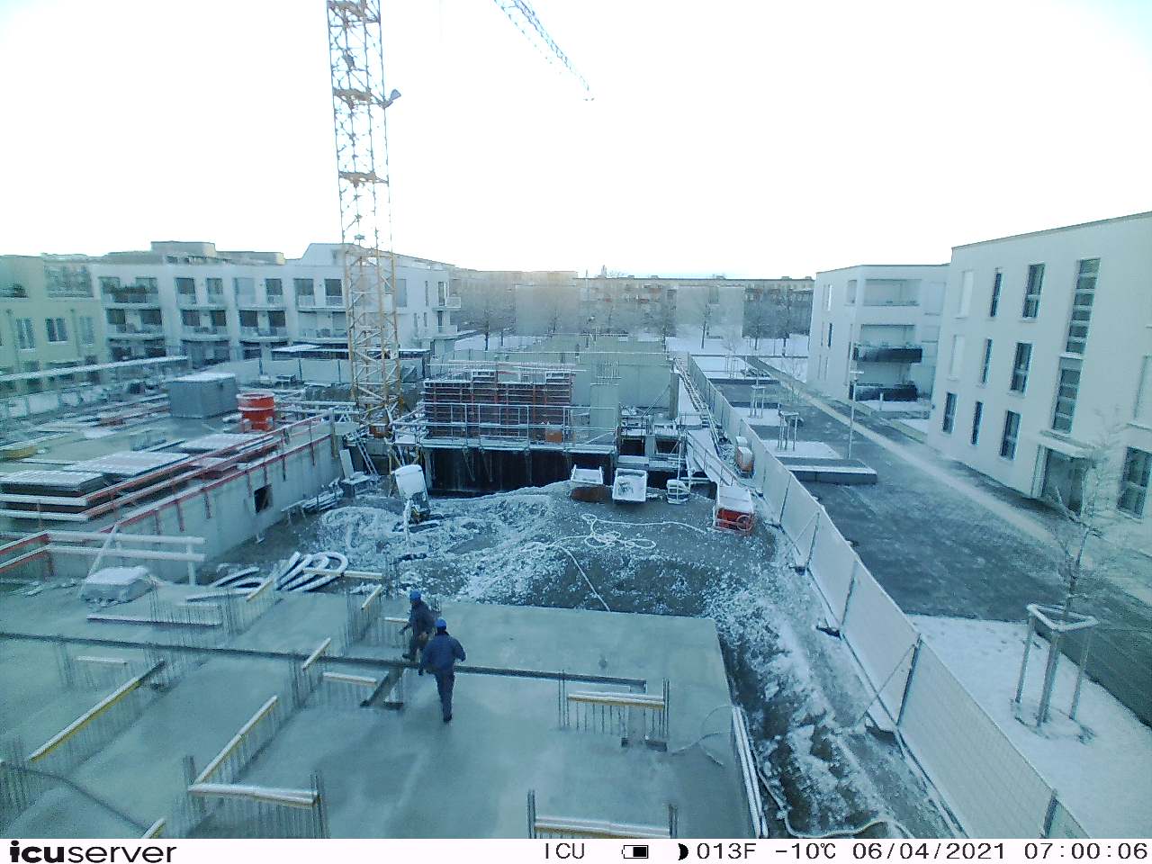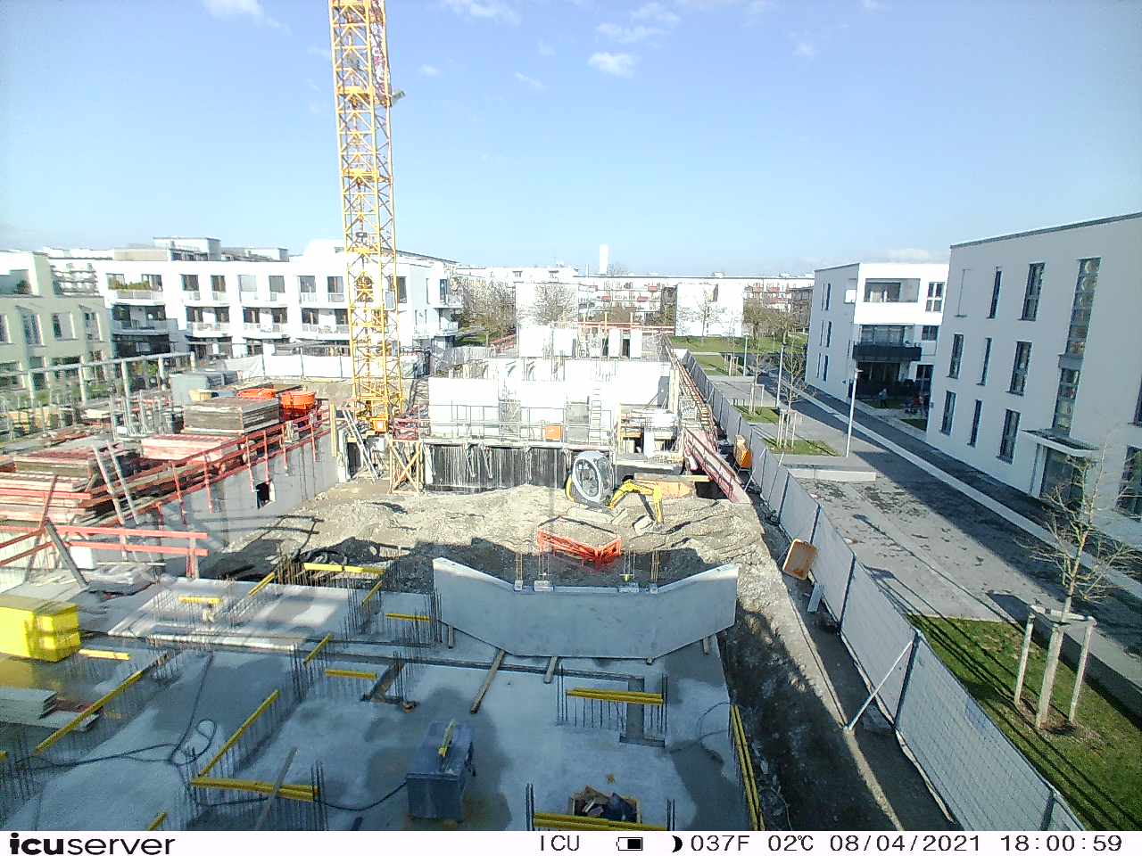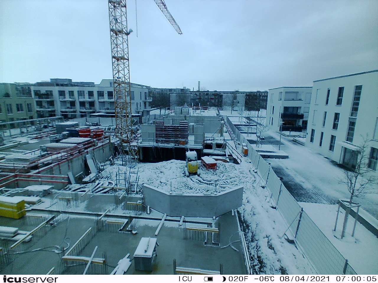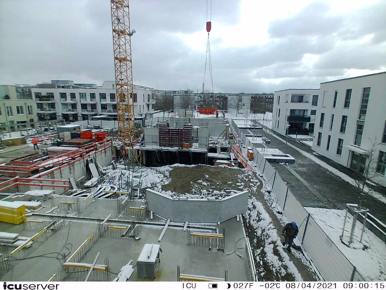 Die Kamera steht am westlichen Ende der Baustelle. Sie blickt nach Osten. Bilder: 26. Februar - 13. August 2021.