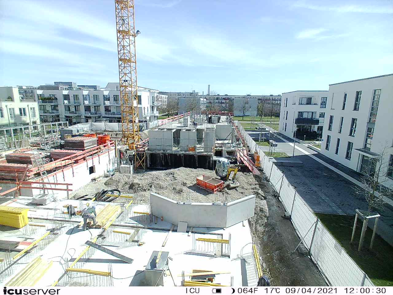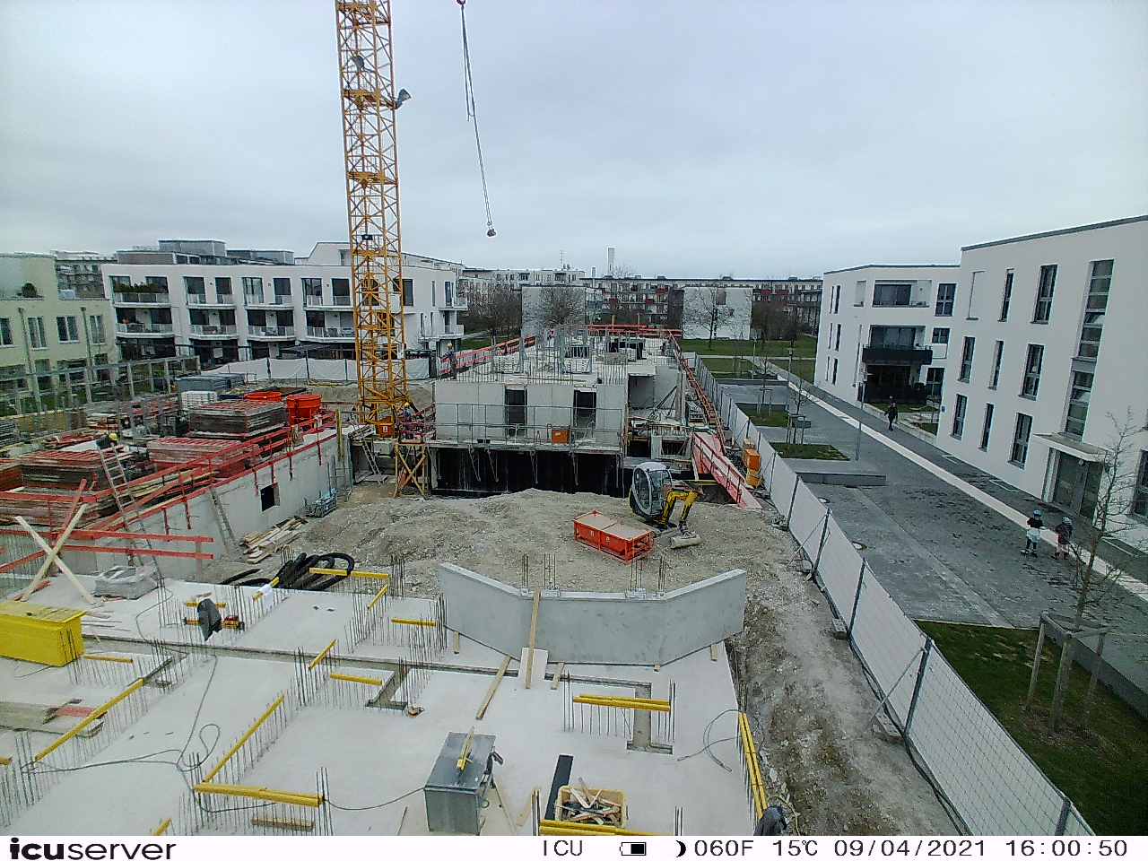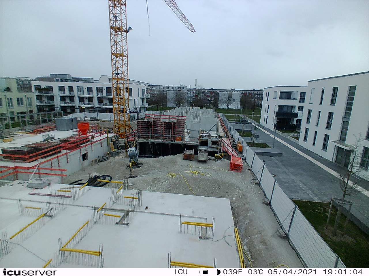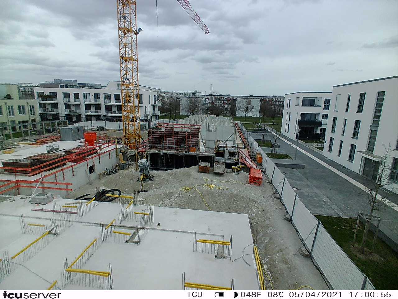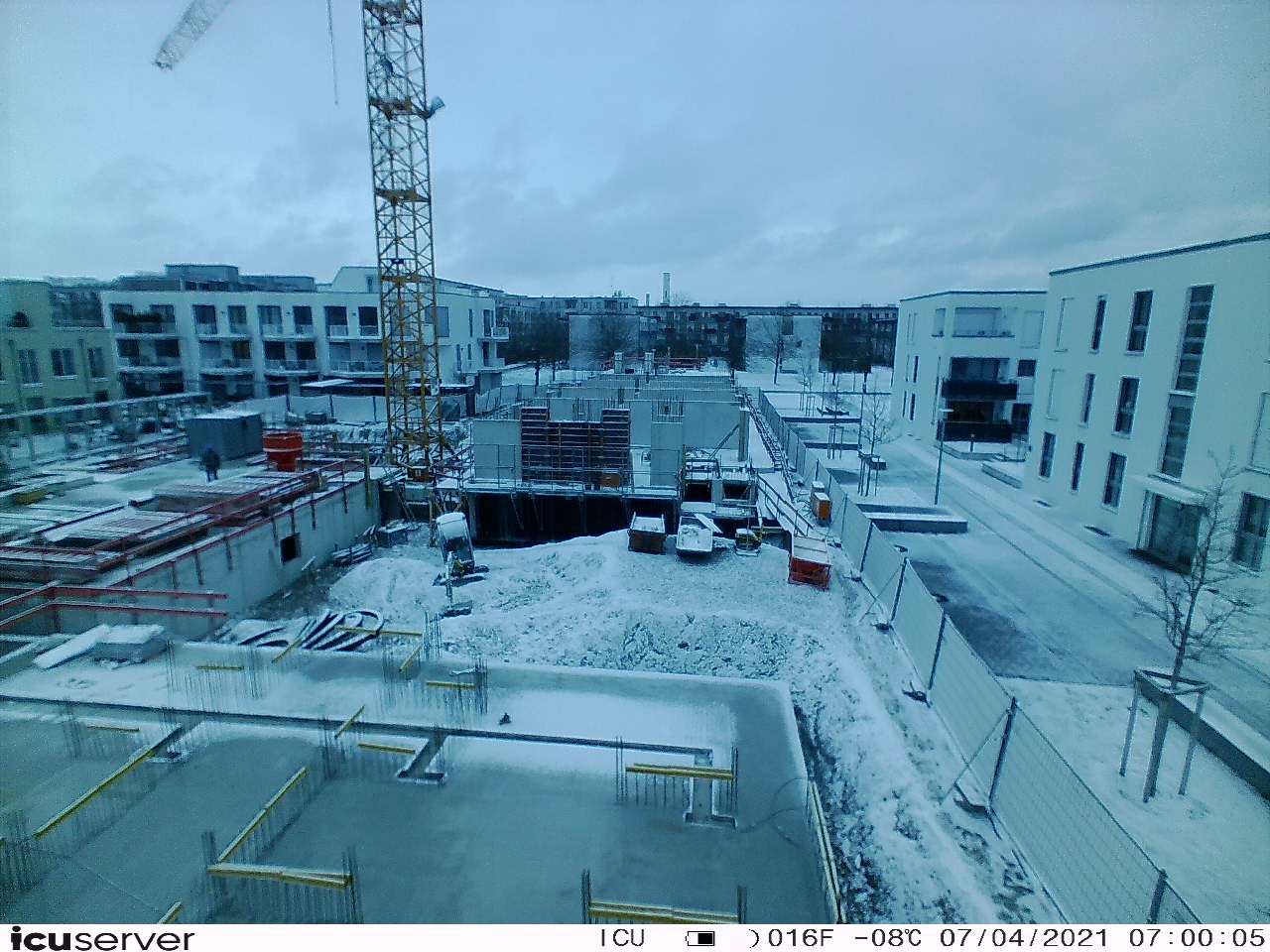Die Kamera steht am westlichen Ende der Baustelle. Sie blickt nach Osten. Bilder: 26. Februar - 13. August 2021.