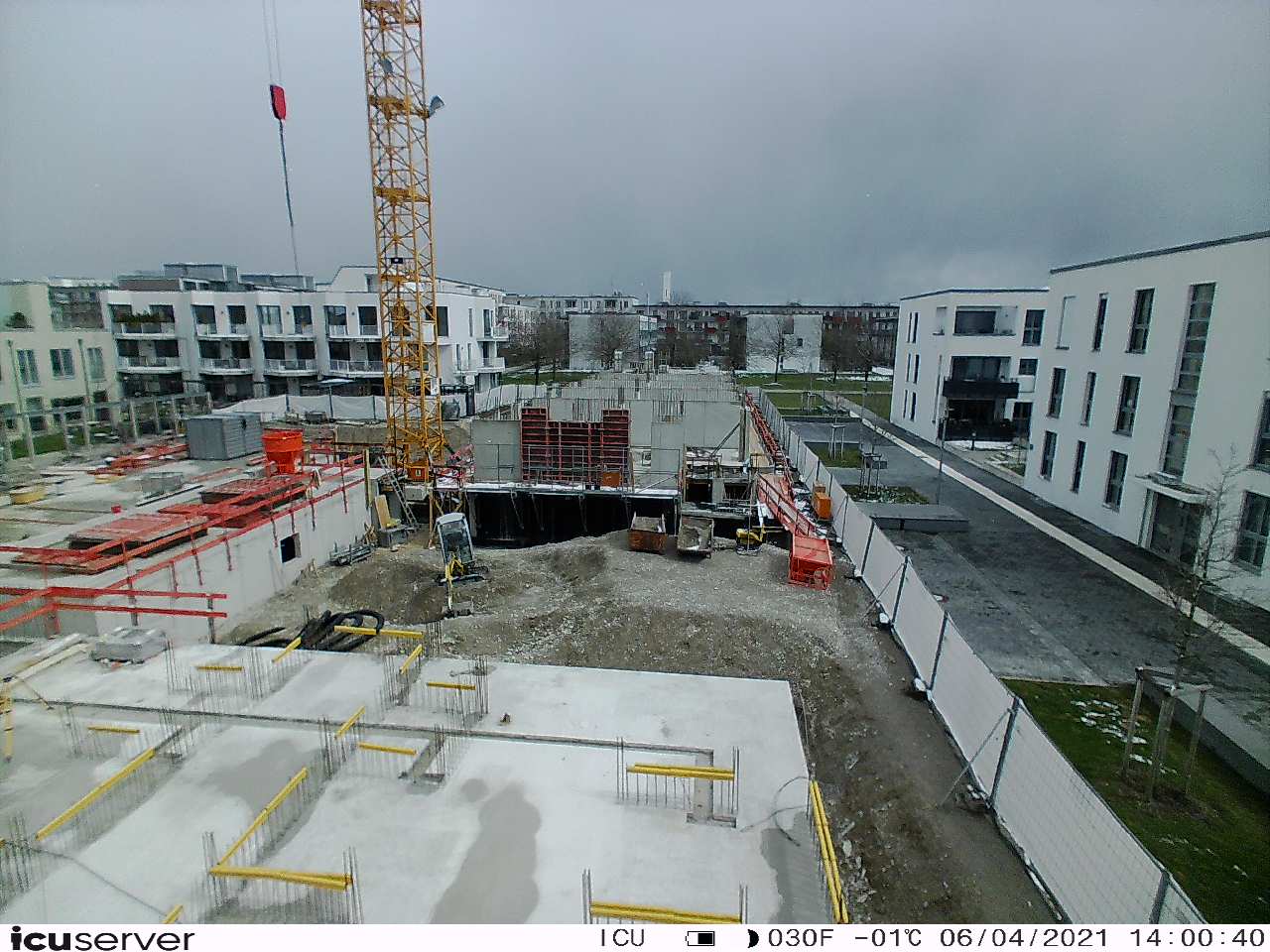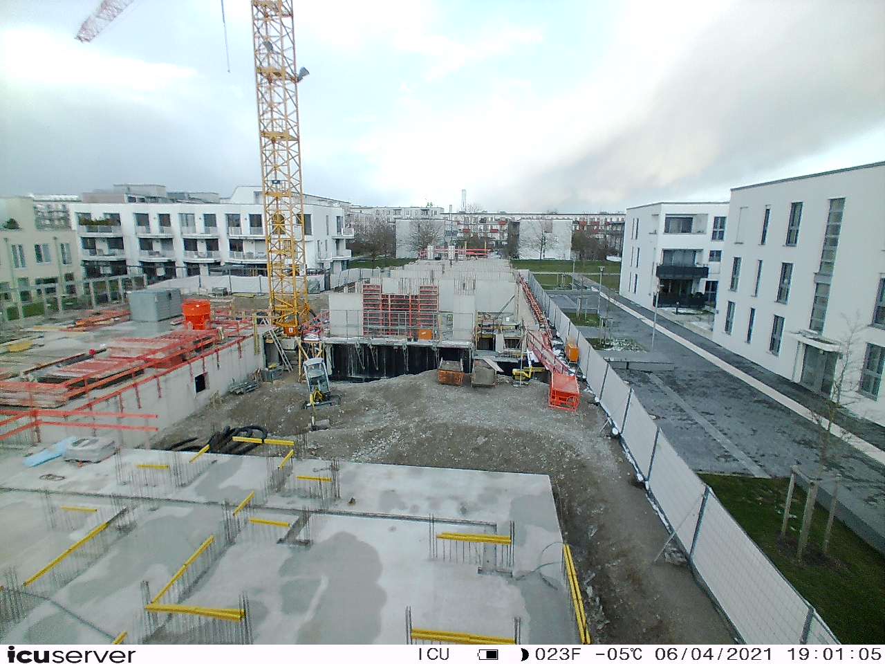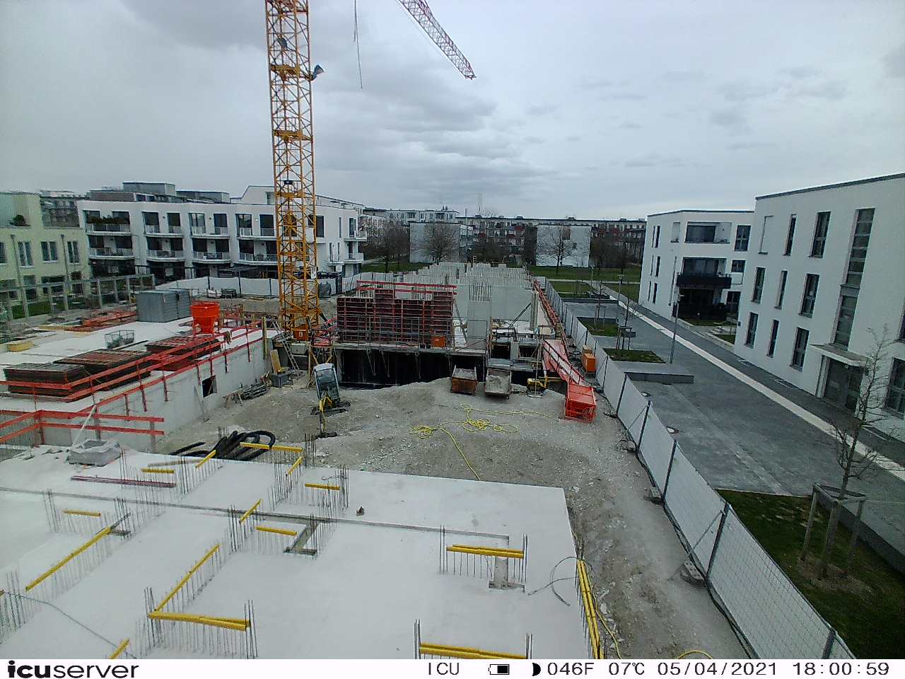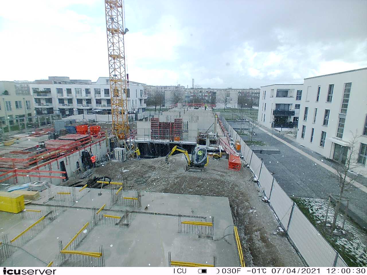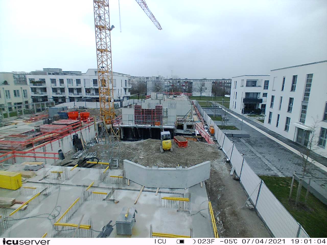 Die Kamera steht am westlichen Ende der Baustelle. Sie blickt nach Osten. Bilder: 26. Februar - 13. August 2021.