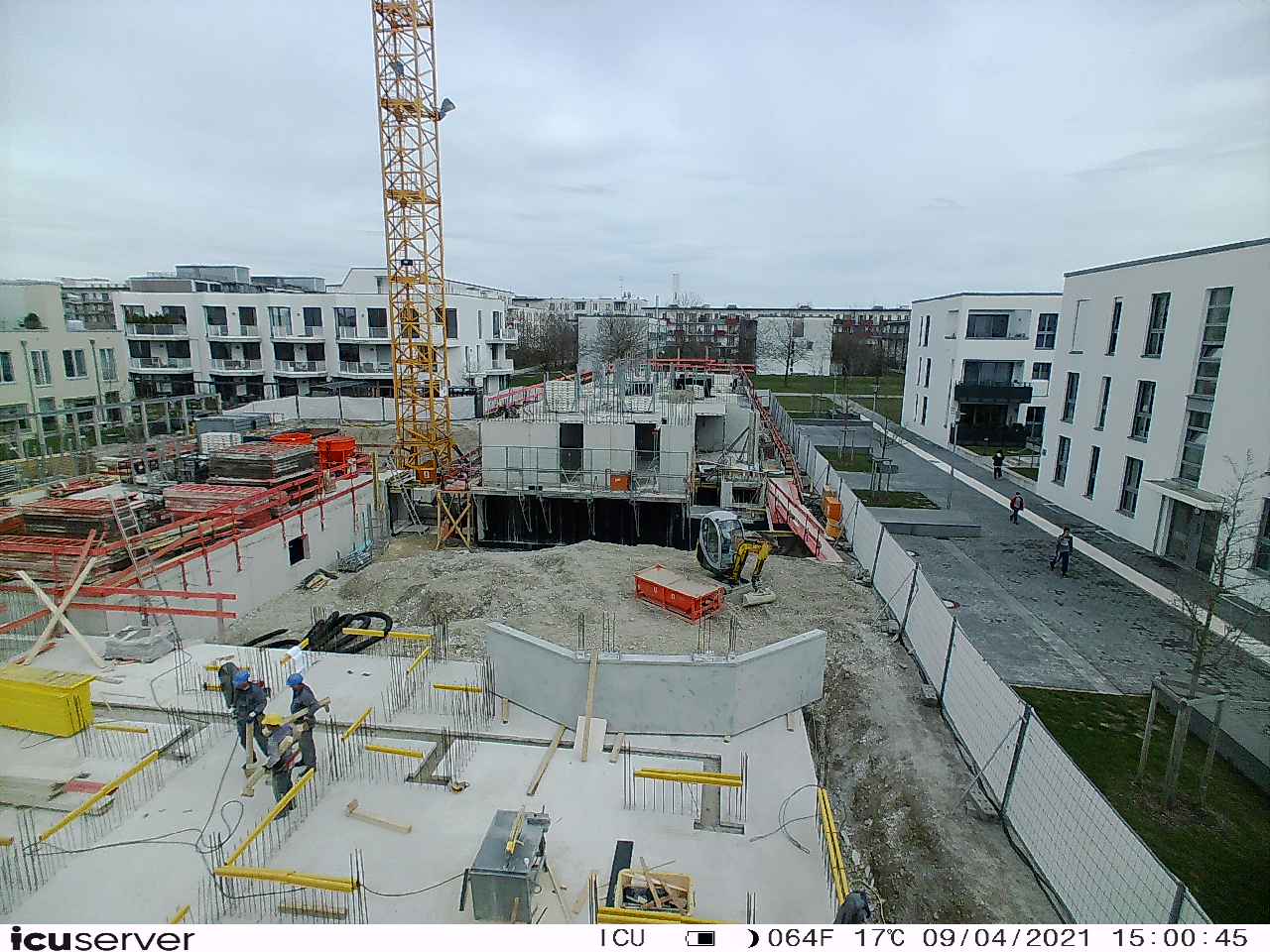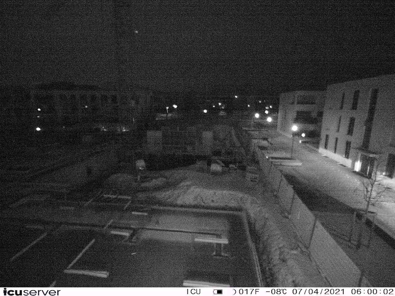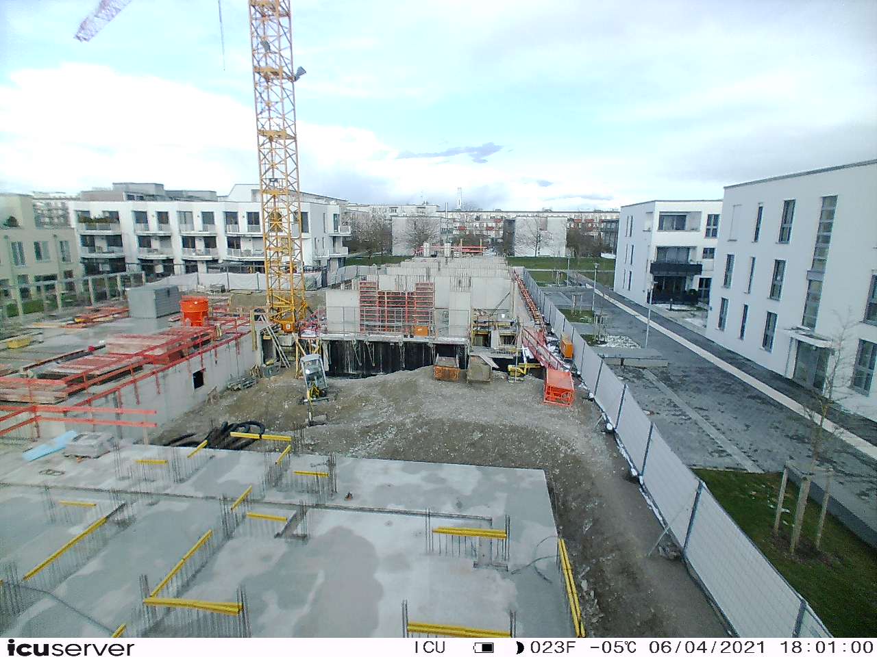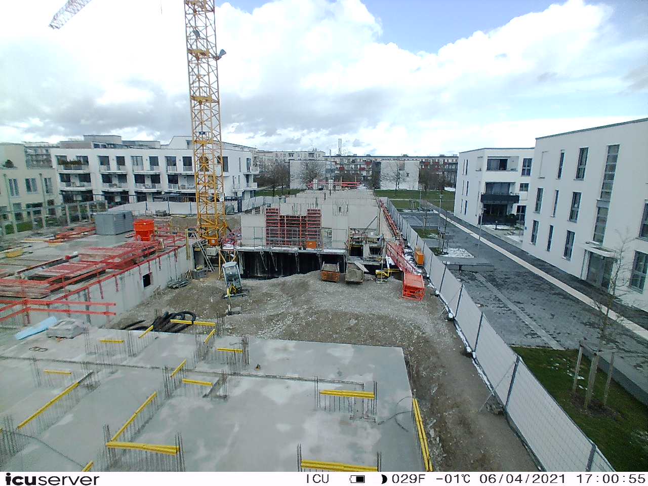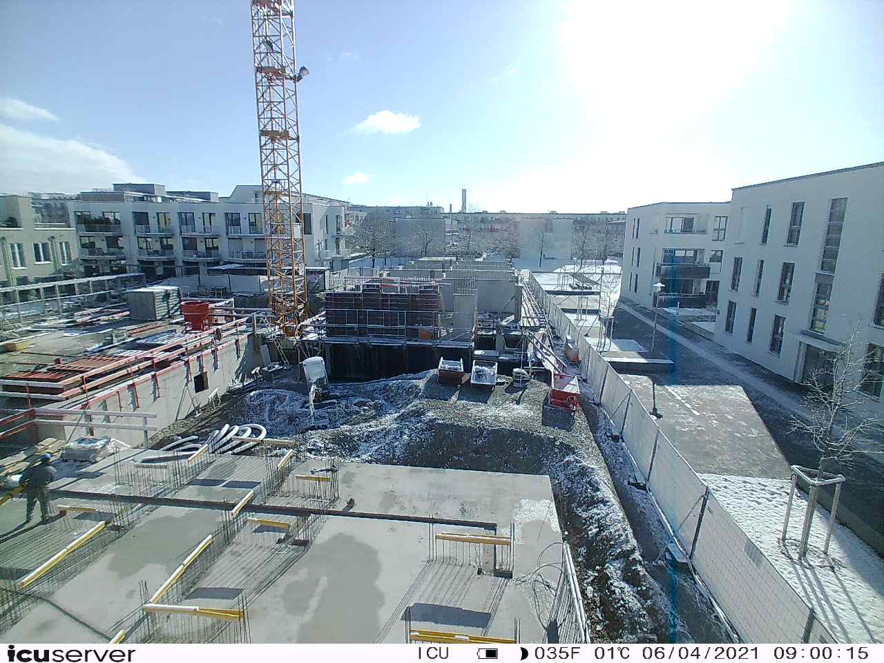 Die Kamera steht am westlichen Ende der Baustelle. Sie blickt nach Osten. Bilder: 26. Februar - 13. August 2021.