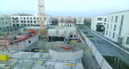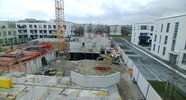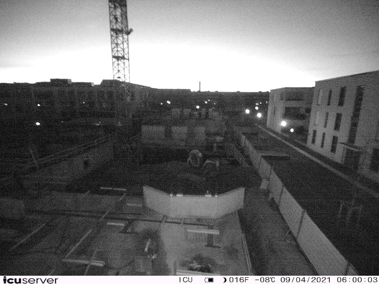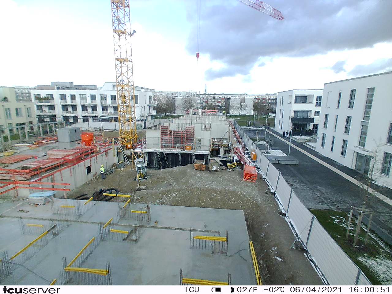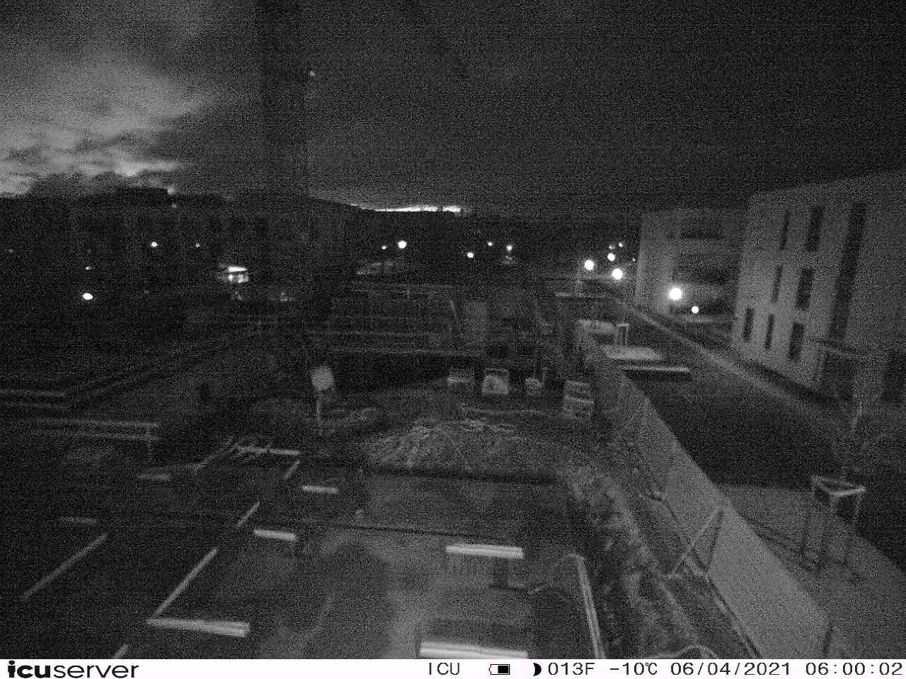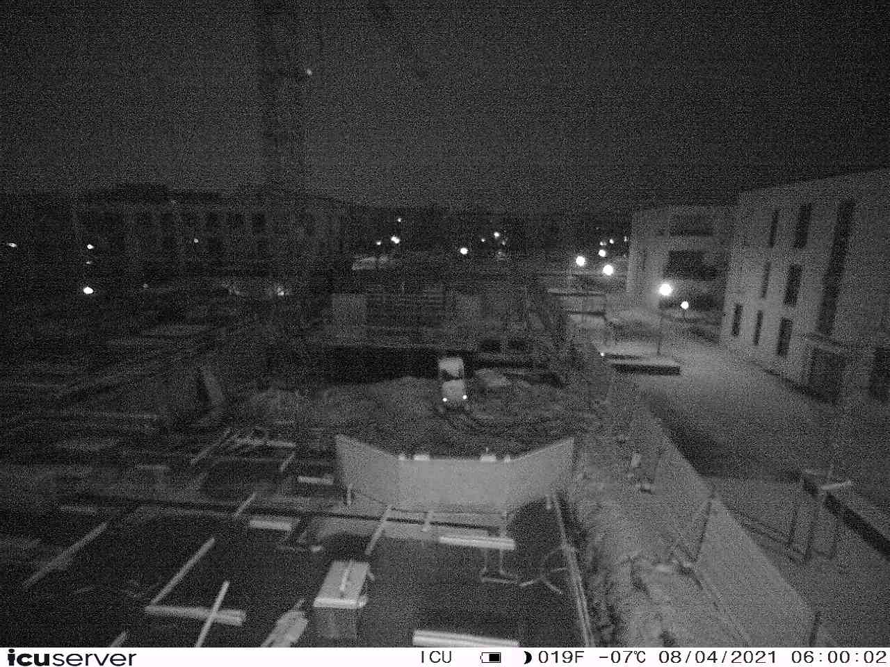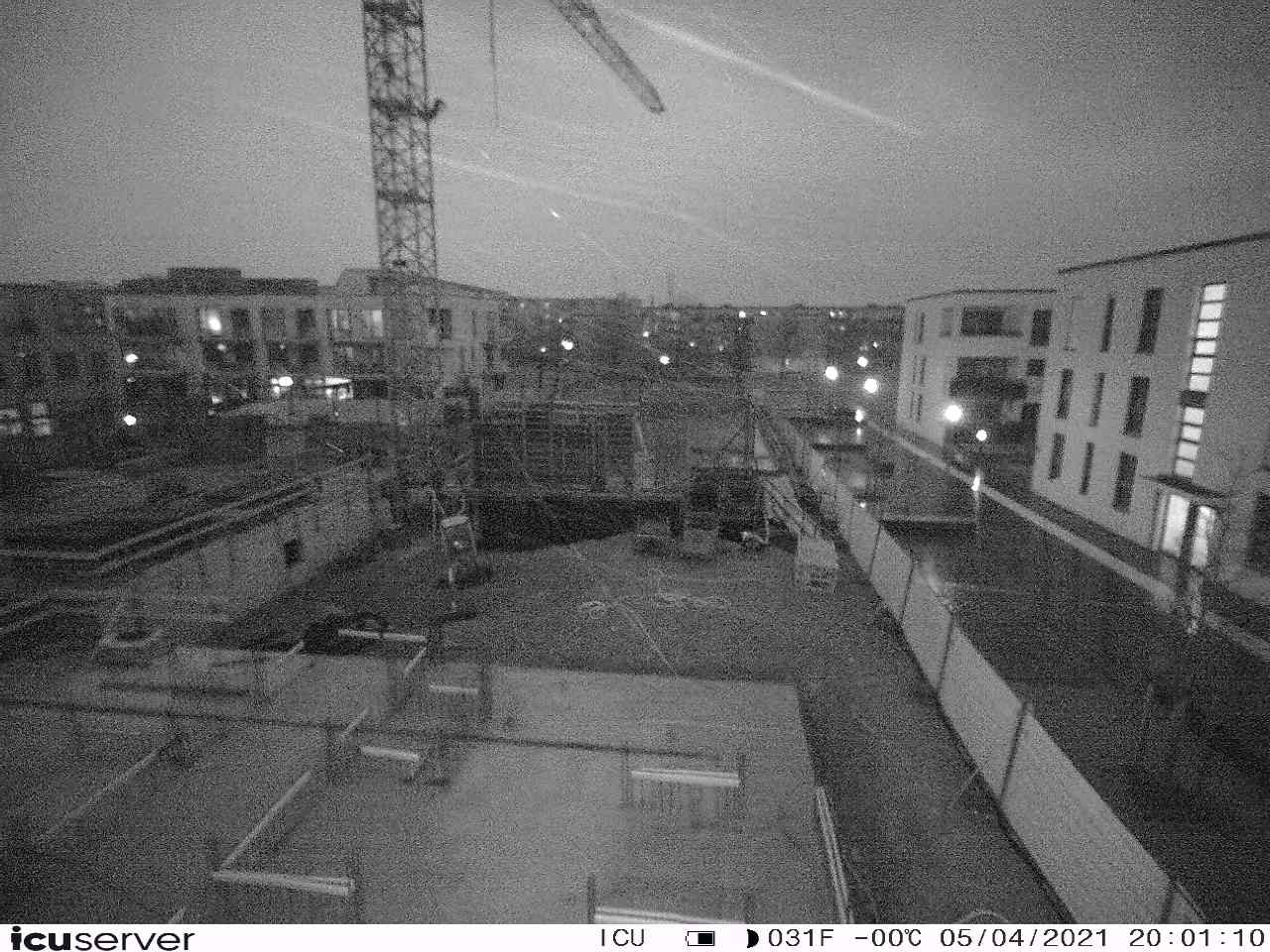 Die Kamera steht am westlichen Ende der Baustelle. Sie blickt nach Osten. Bilder: 26. Februar - 13. August 2021.