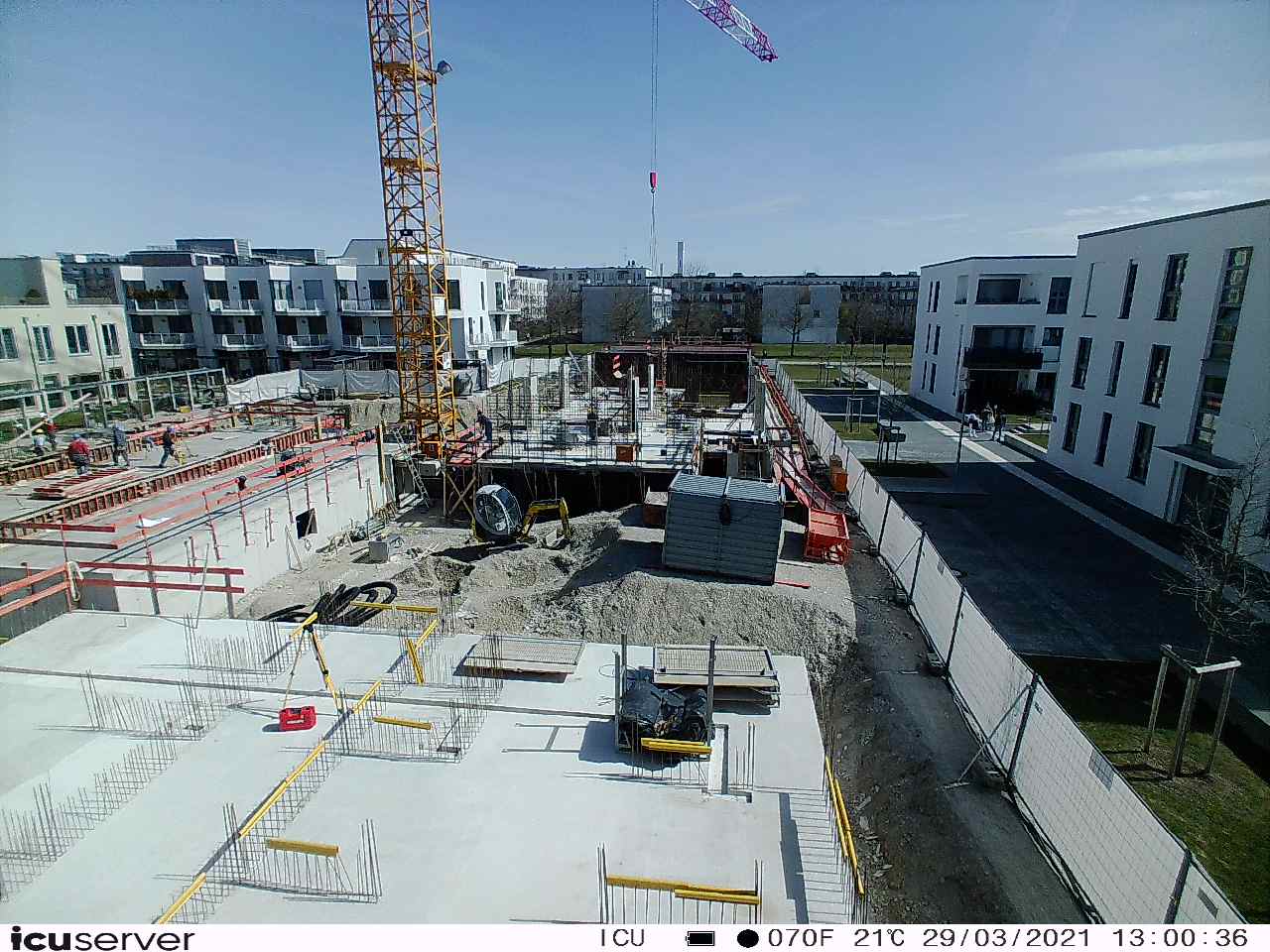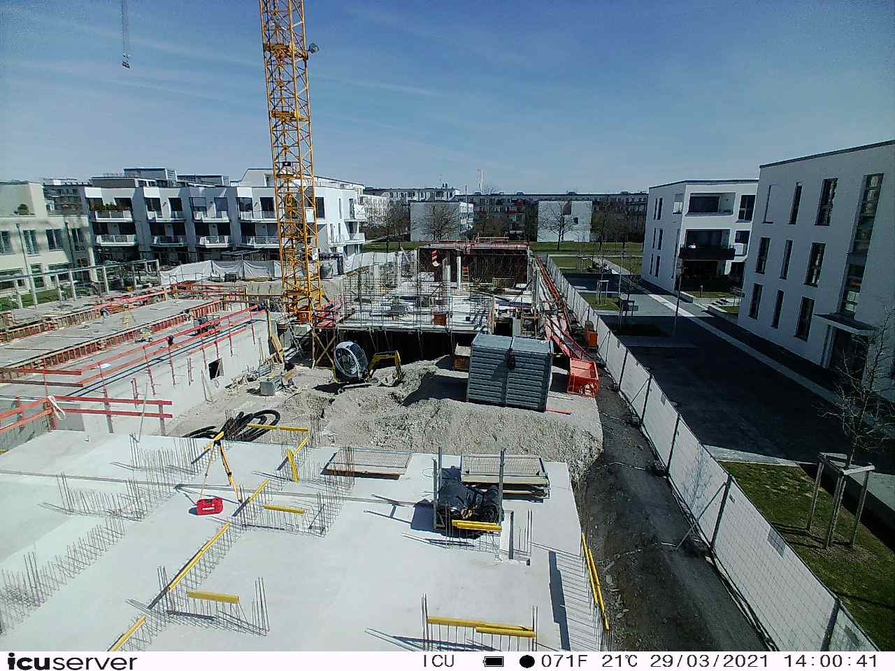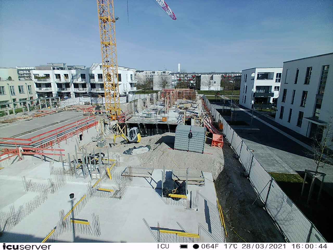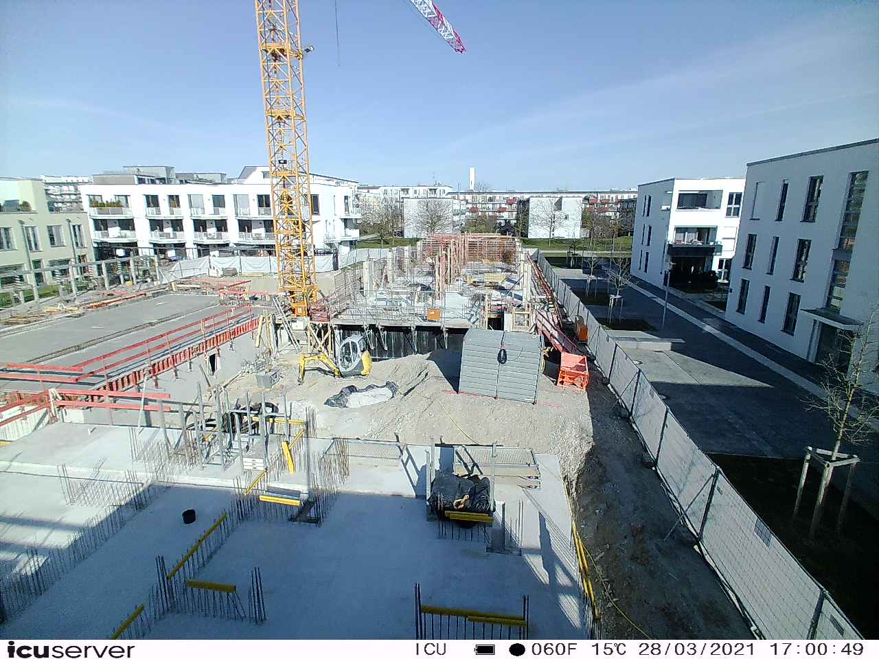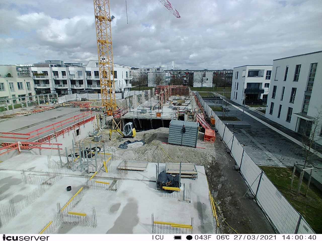 Die Kamera steht am westlichen Ende der Baustelle. Sie blickt nach Osten. Bilder: 26. Februar - 13. August 2021.