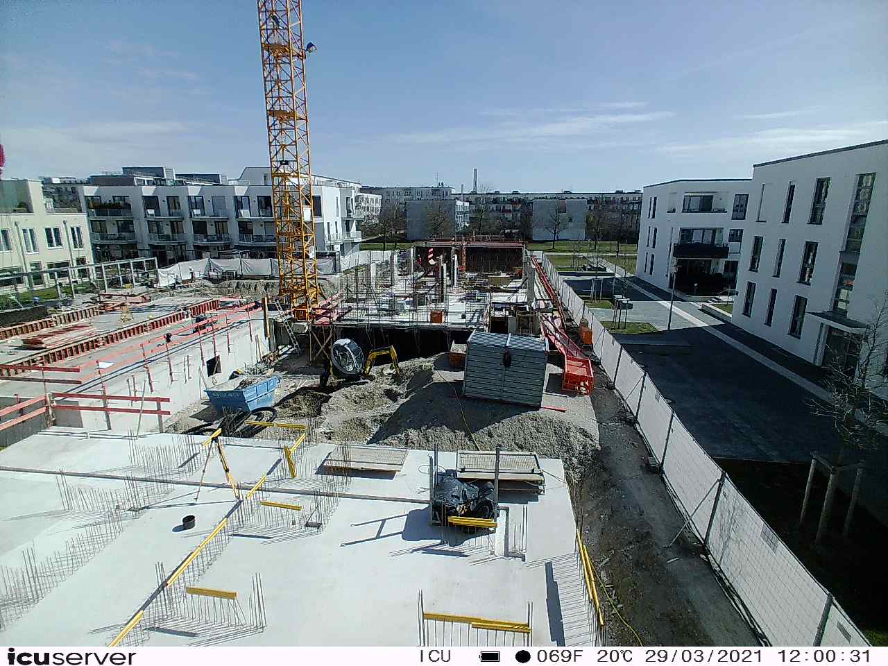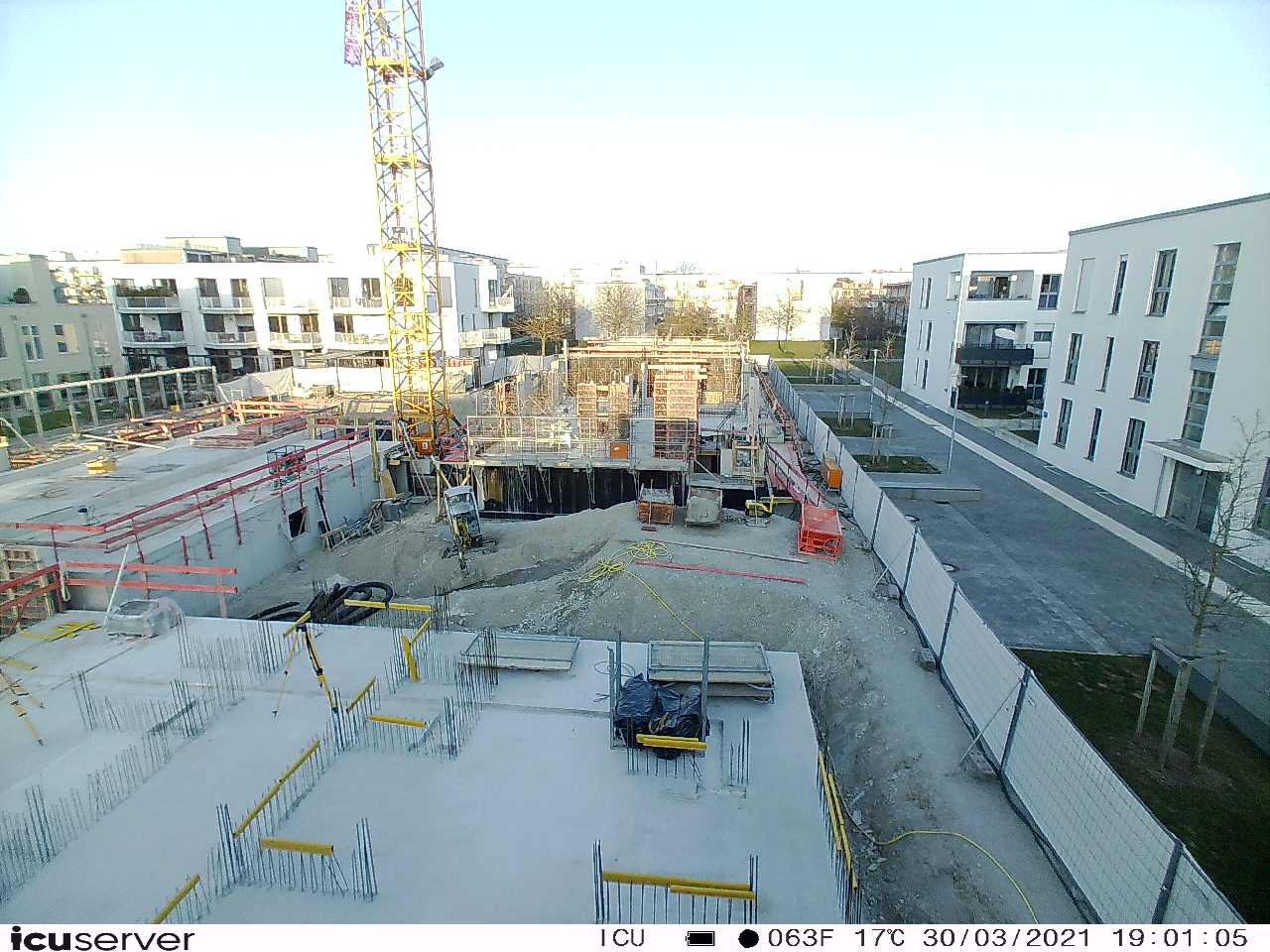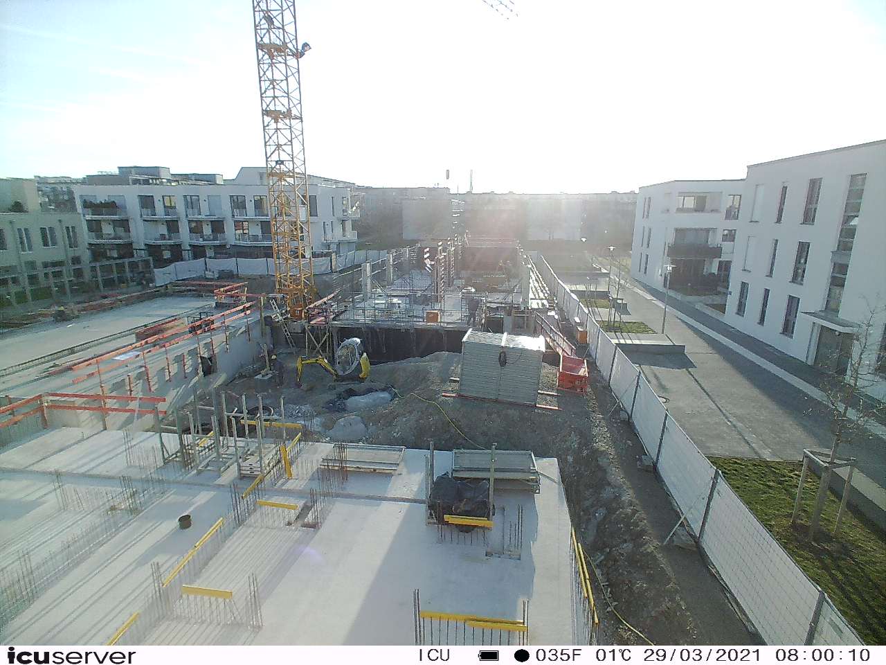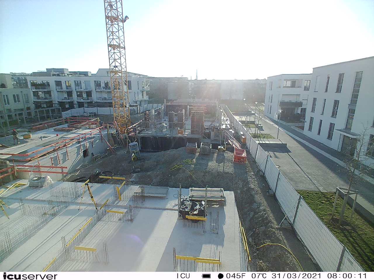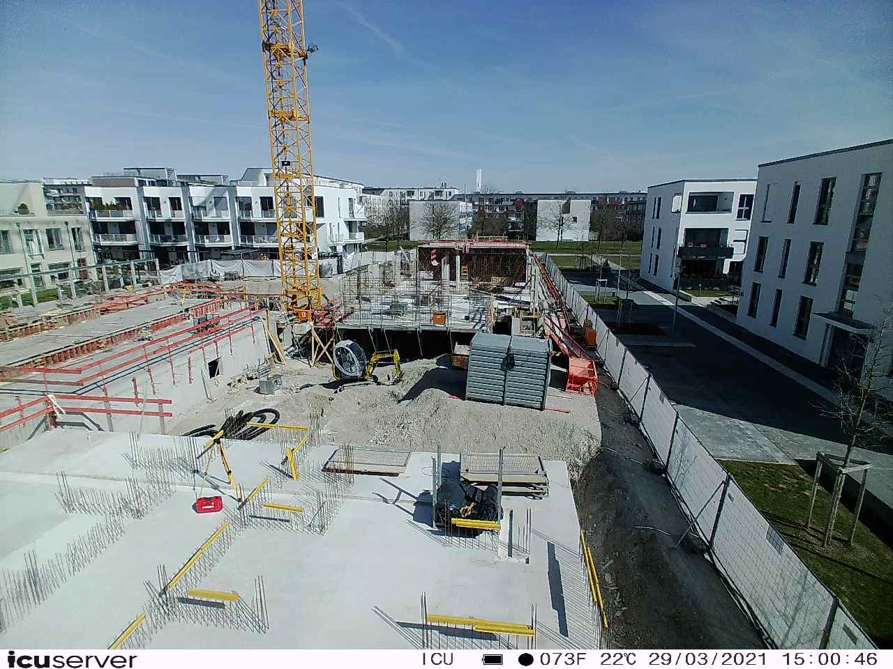 Die Kamera steht am westlichen Ende der Baustelle. Sie blickt nach Osten. Bilder: 26. Februar - 13. August 2021.