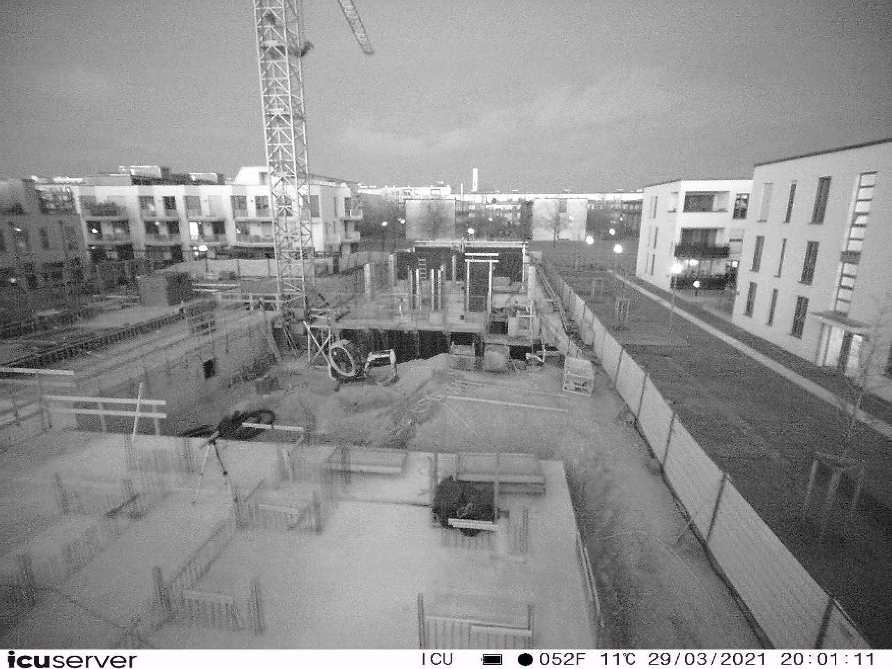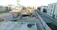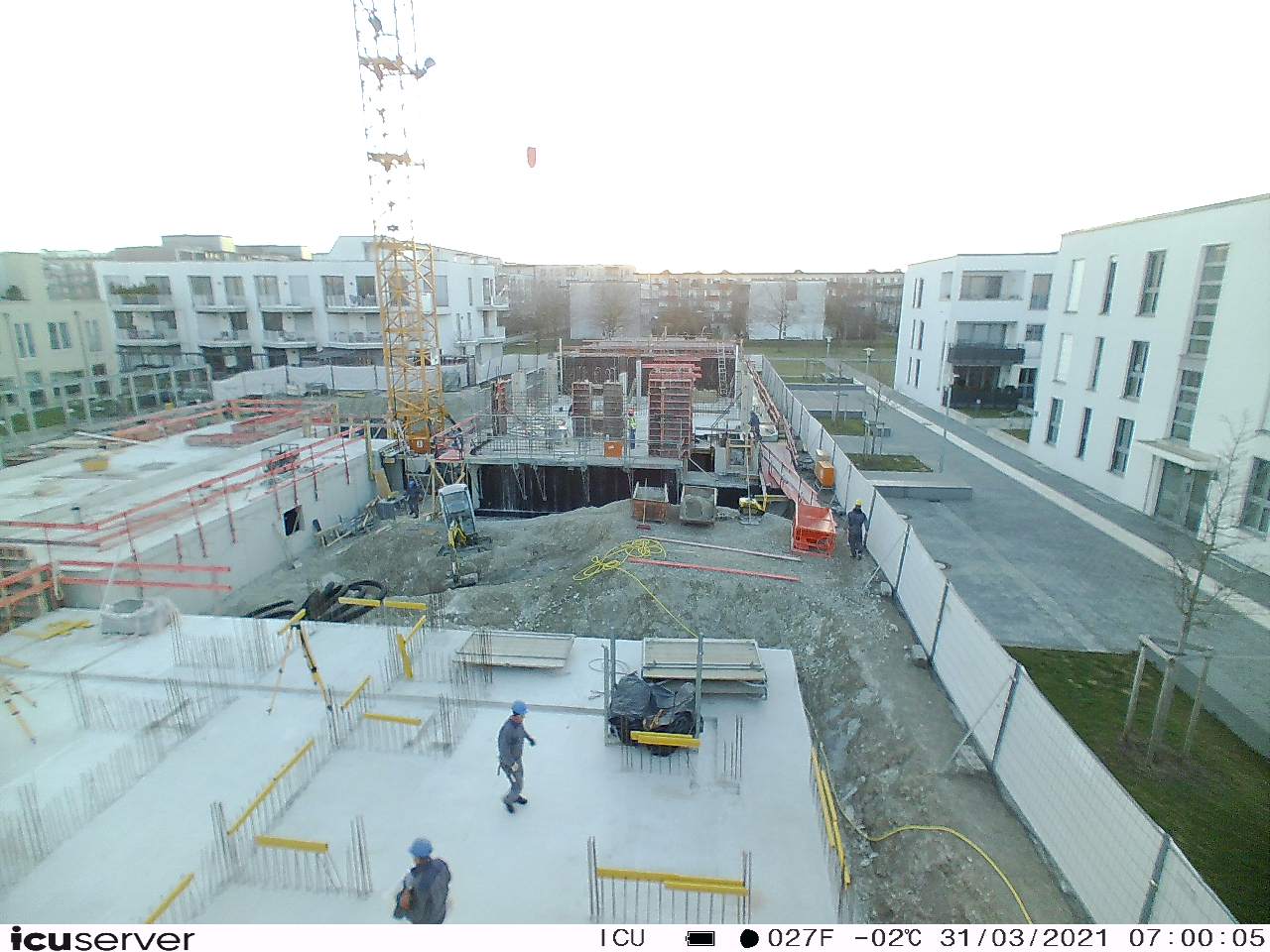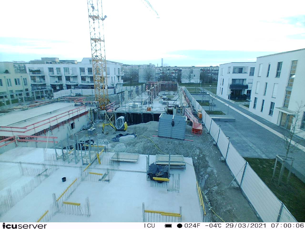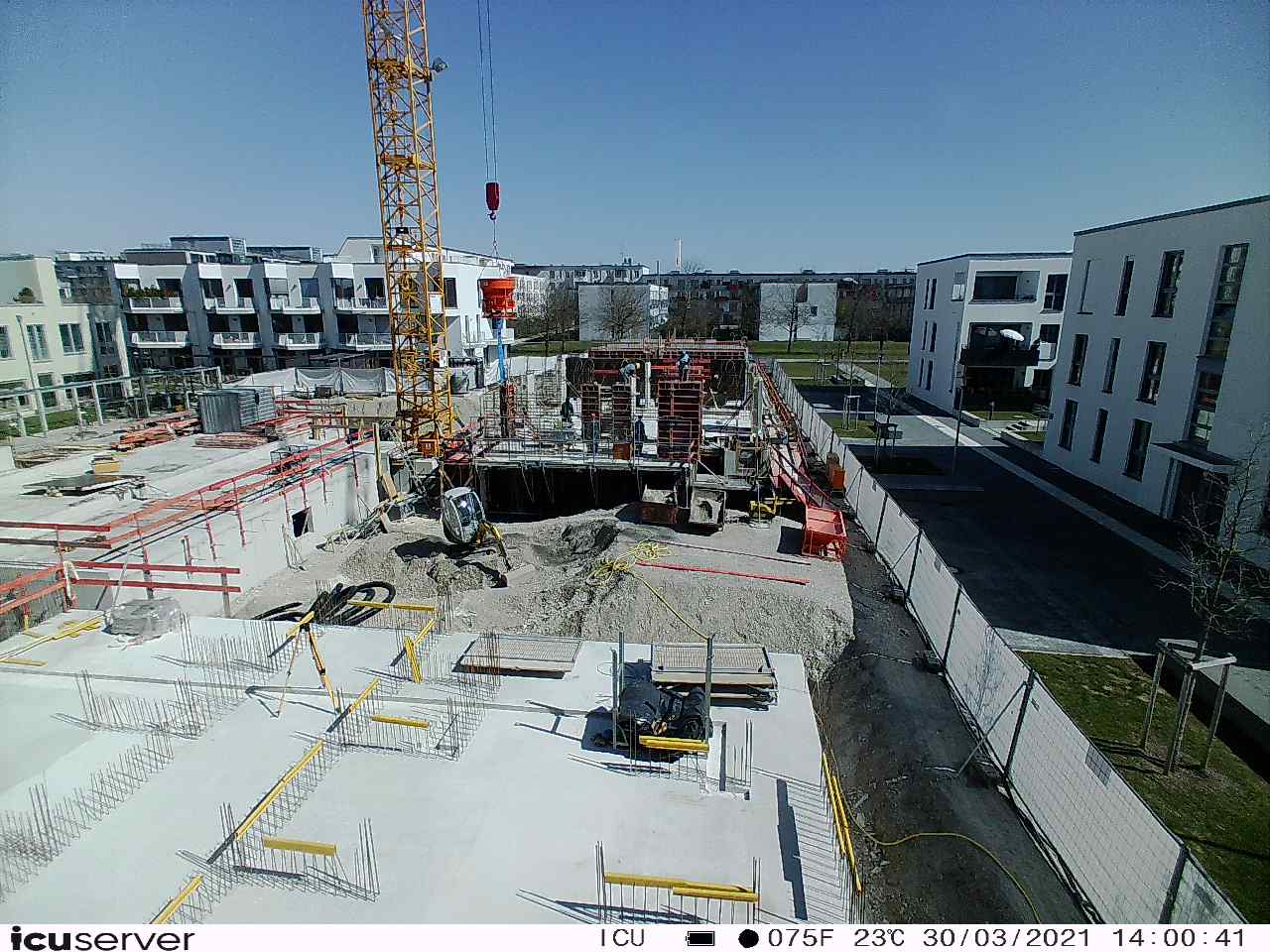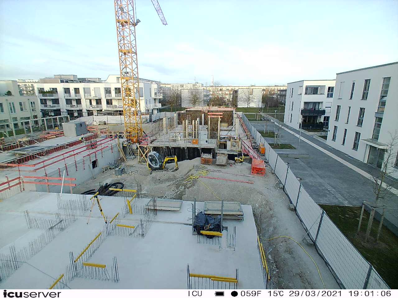 Die Kamera steht am westlichen Ende der Baustelle. Sie blickt nach Osten. Bilder: 26. Februar - 13. August 2021.