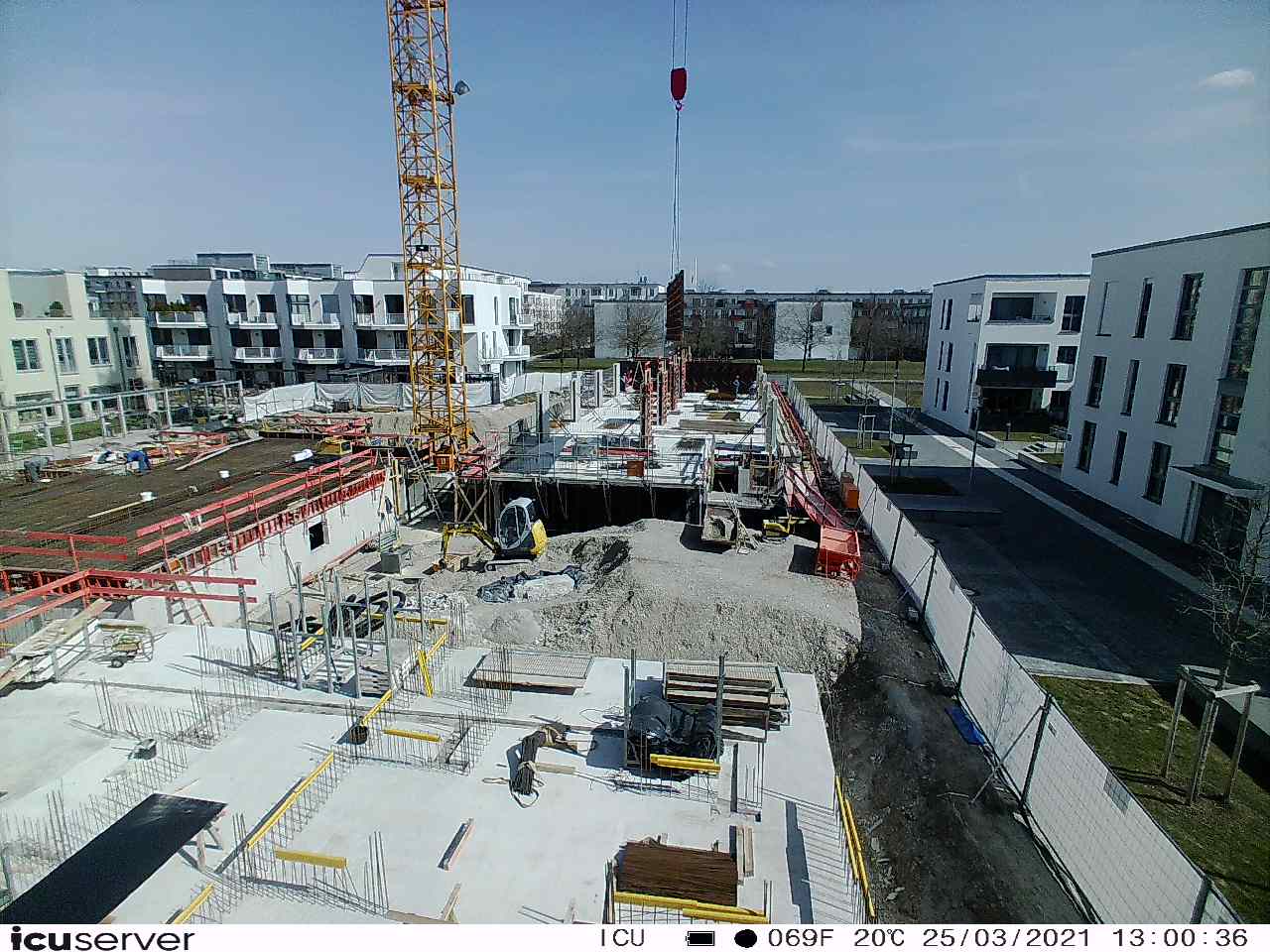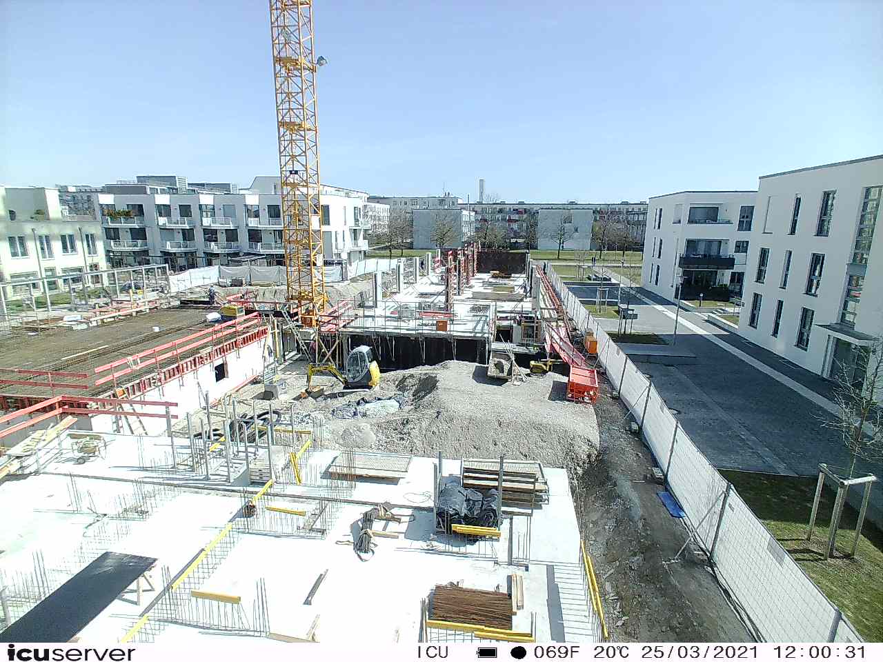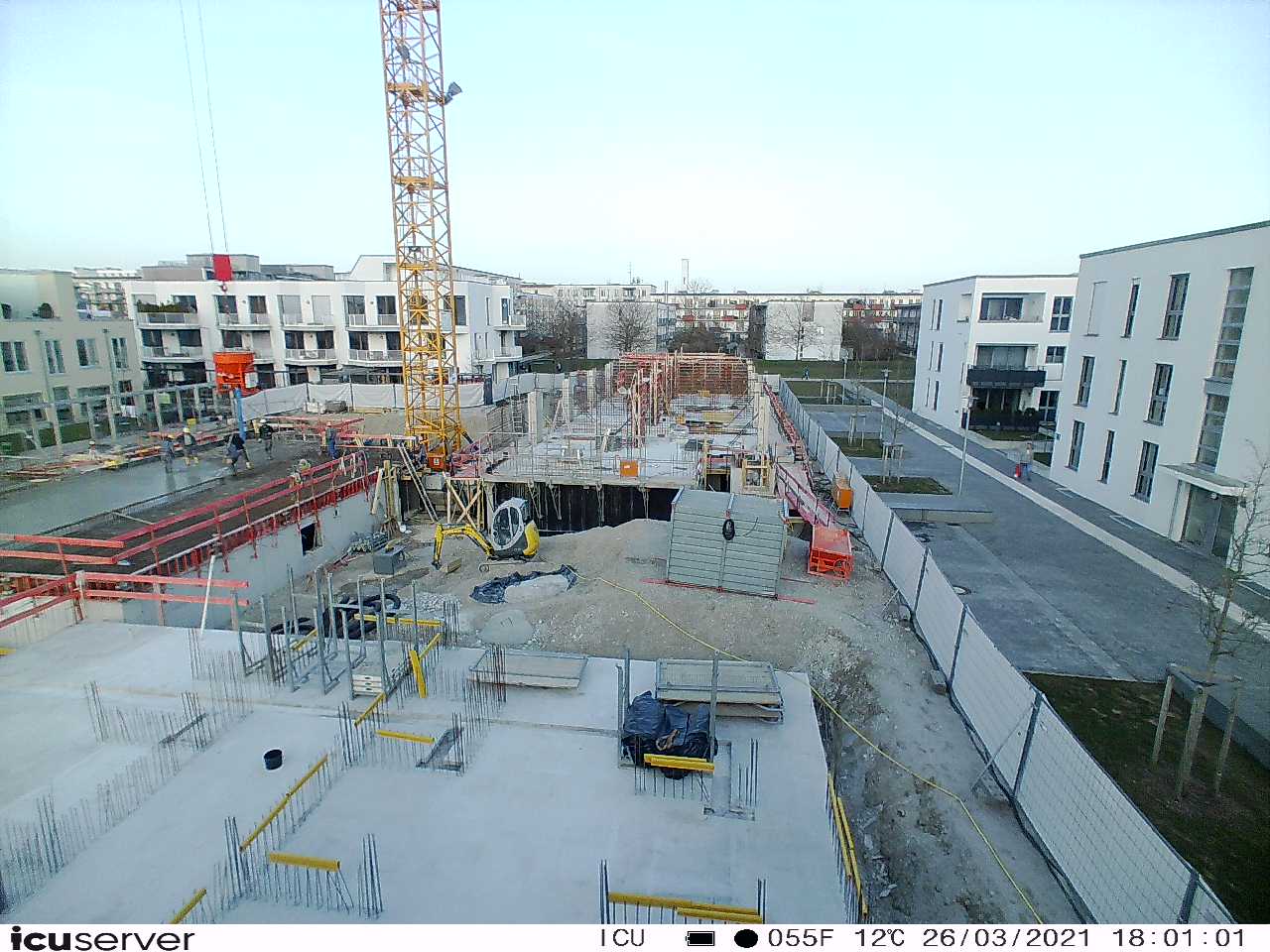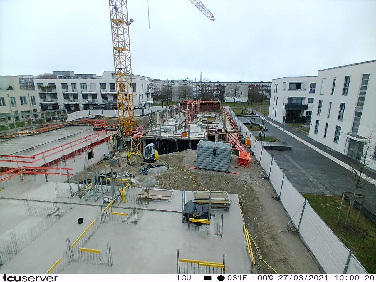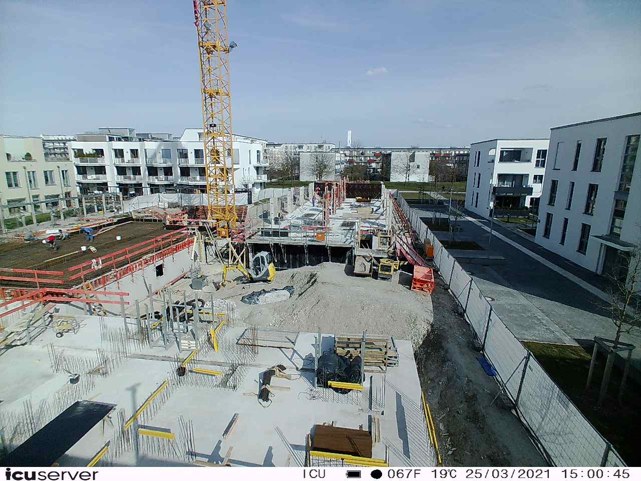 Die Kamera steht am westlichen Ende der Baustelle. Sie blickt nach Osten. Bilder: 26. Februar - 13. August 2021.