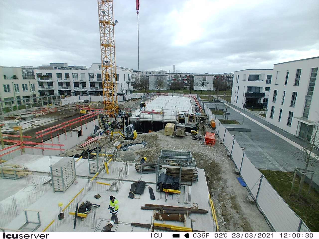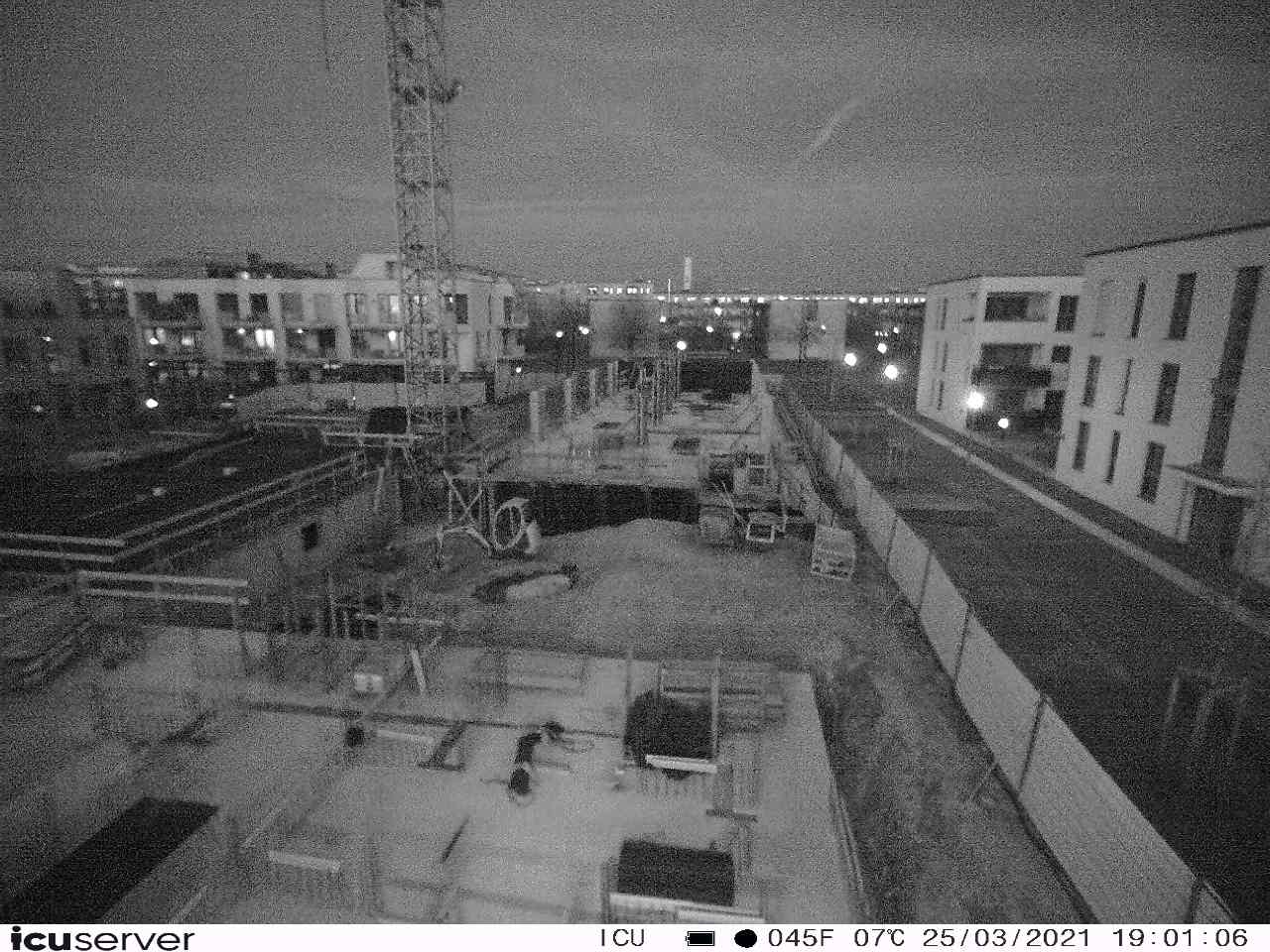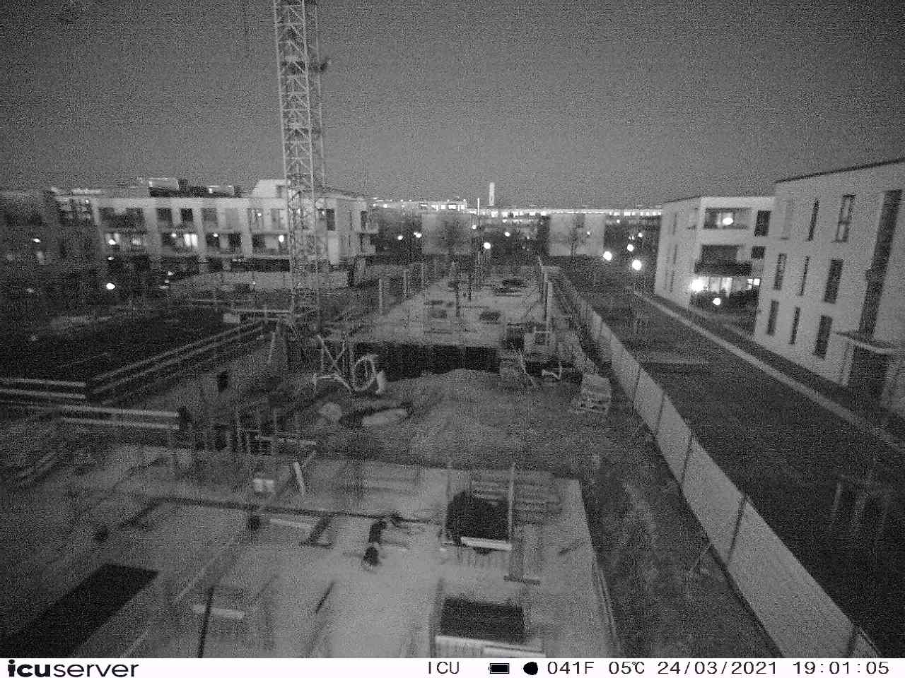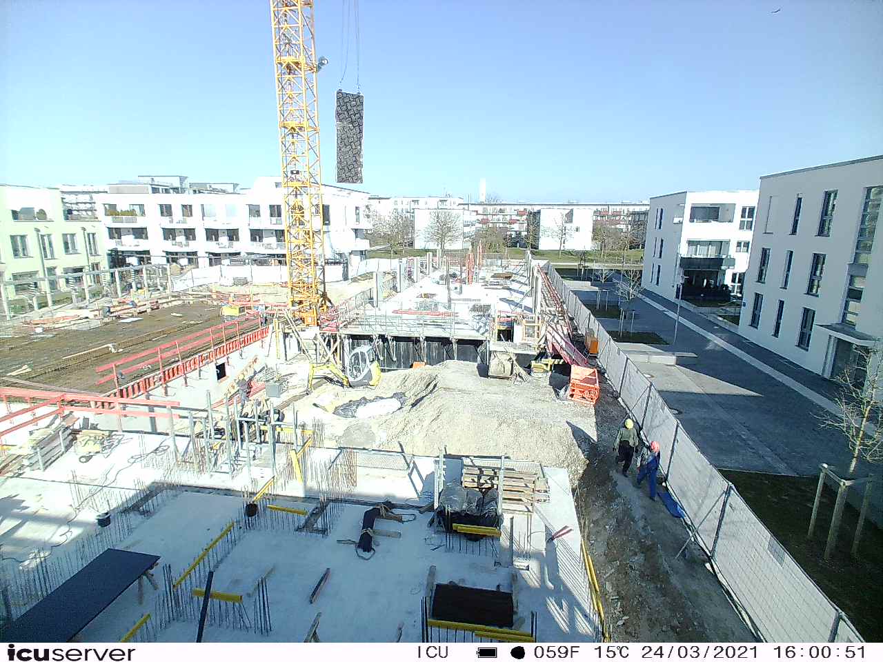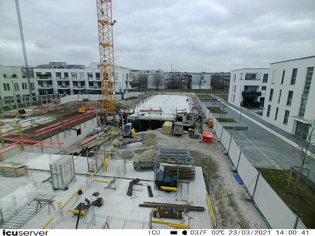 Die Kamera steht am westlichen Ende der Baustelle. Sie blickt nach Osten. Bilder: 26. Februar - 13. August 2021.