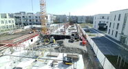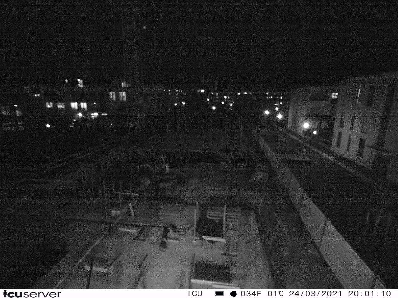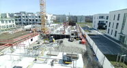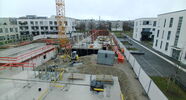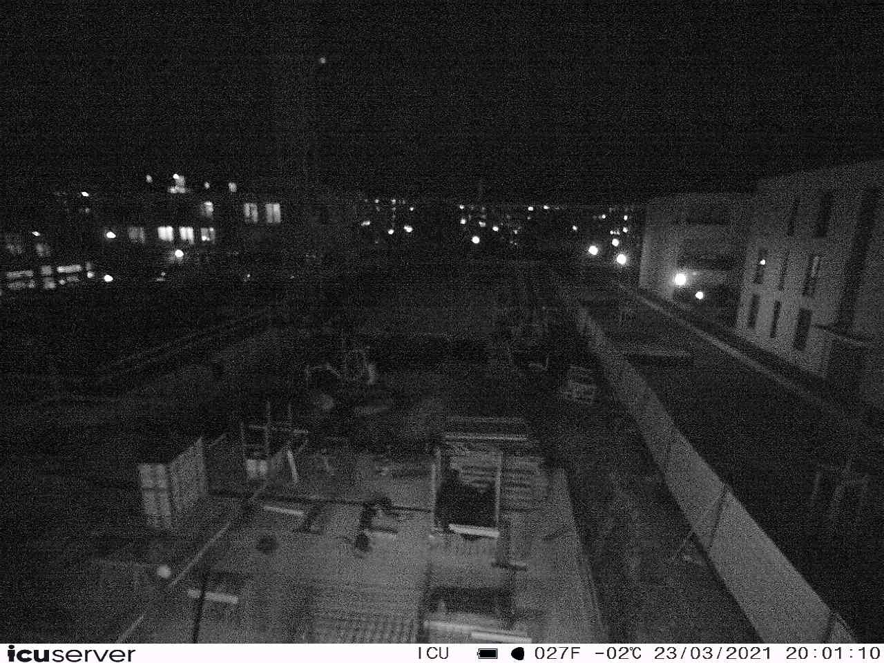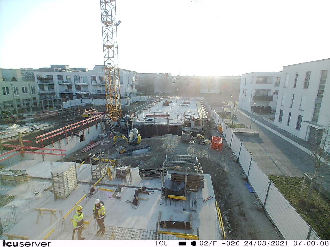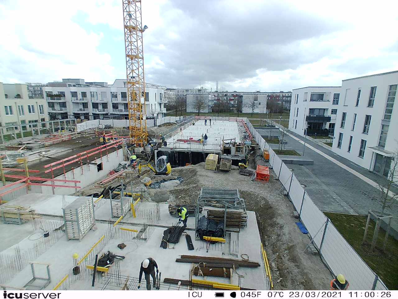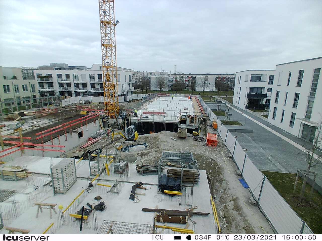 Die Kamera steht am westlichen Ende der Baustelle. Sie blickt nach Osten. Bilder: 26. Februar - 13. August 2021.